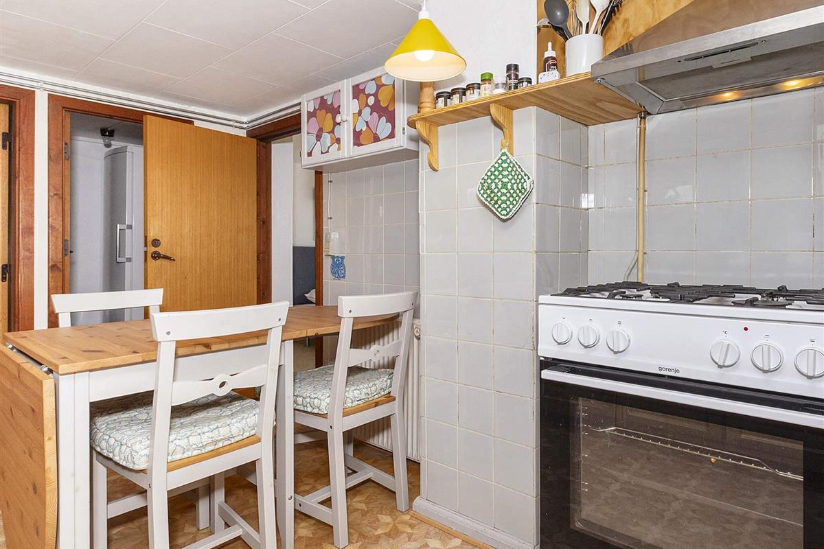 Küche: Gas-Herd, Kühl-Gefrier-Kombi, Mikrow., Kaffeem.