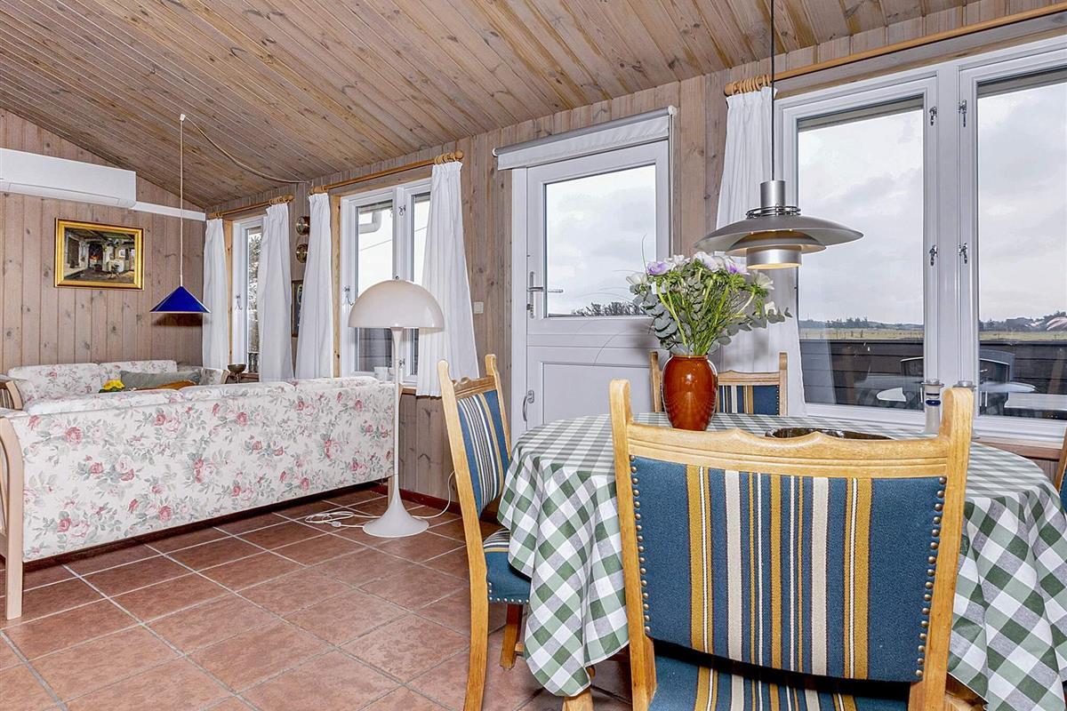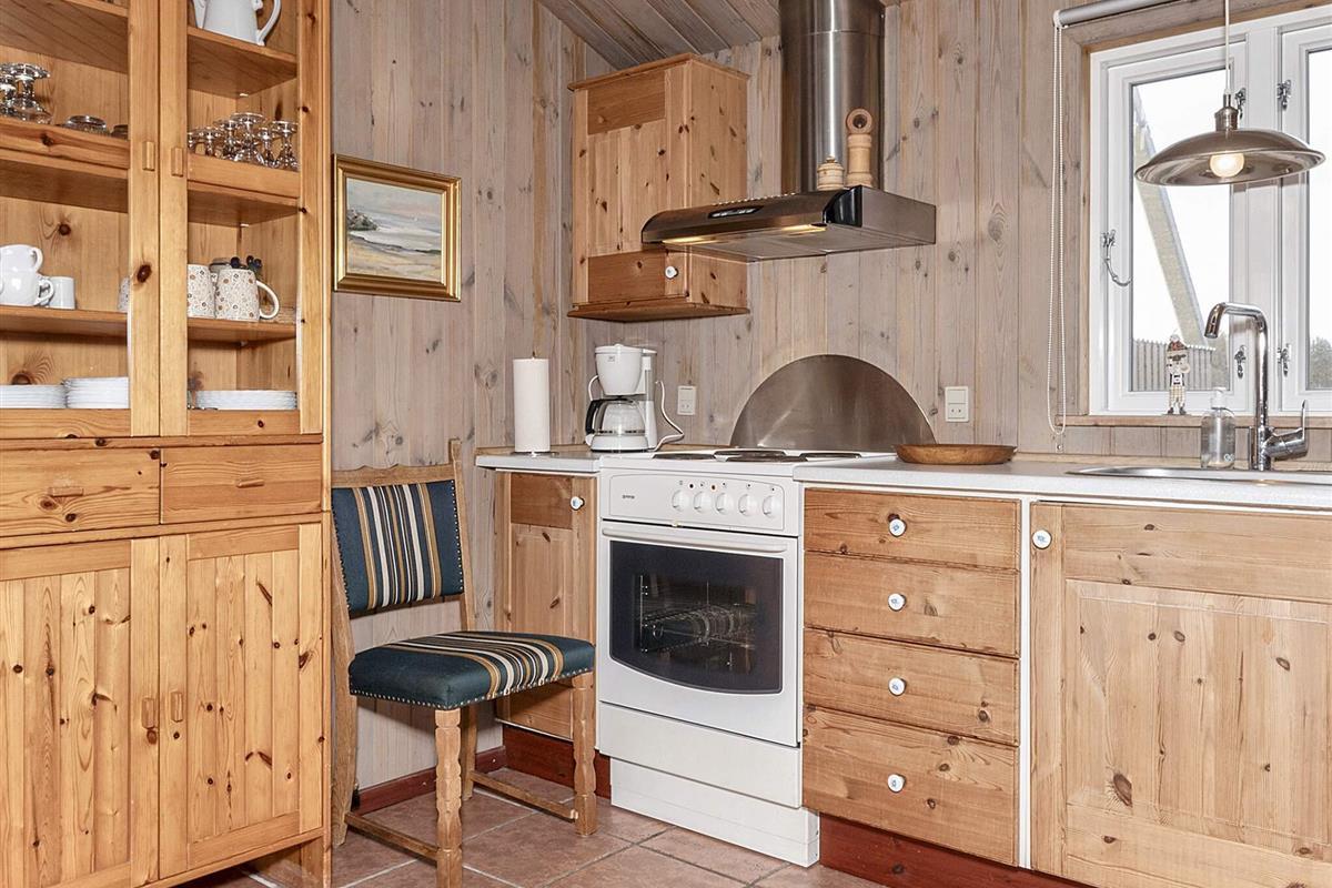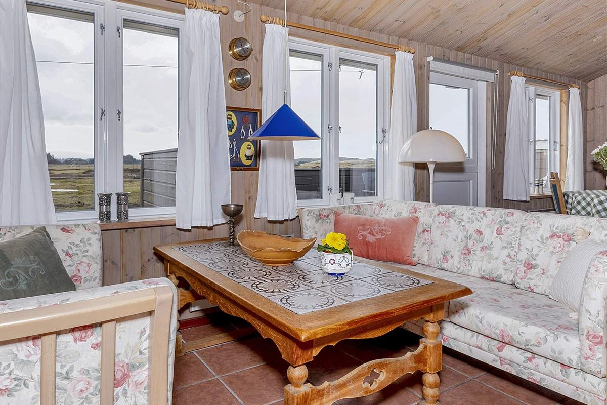 Im Haus gibt es ein Zimmer mit Doppelbett sowie ein weiteres Zimmer mit Etagenbett und einem Einzelbett. Küche mit u.a. Geschirrspüler sowie Wohnzimmer mit TV und WLAN. Waschmaschine im Badezimmer. Die klimafreundliche Wärmepumpe im Wohnzimmer sorgt für angenehme Wärme im Ferienhaus.