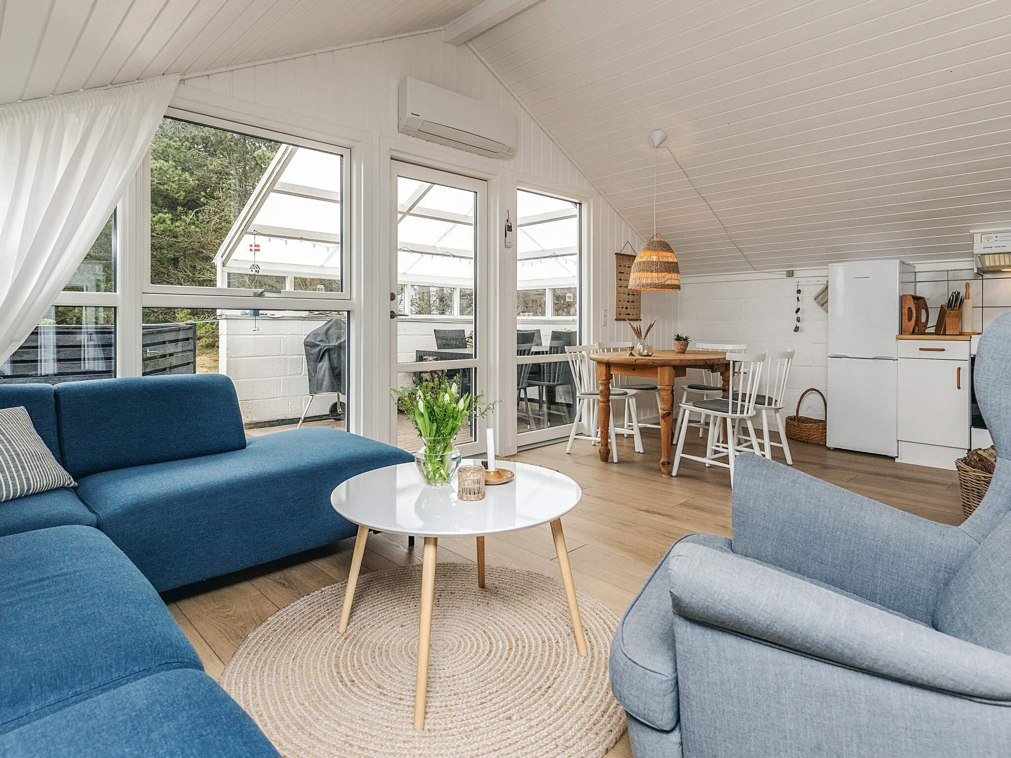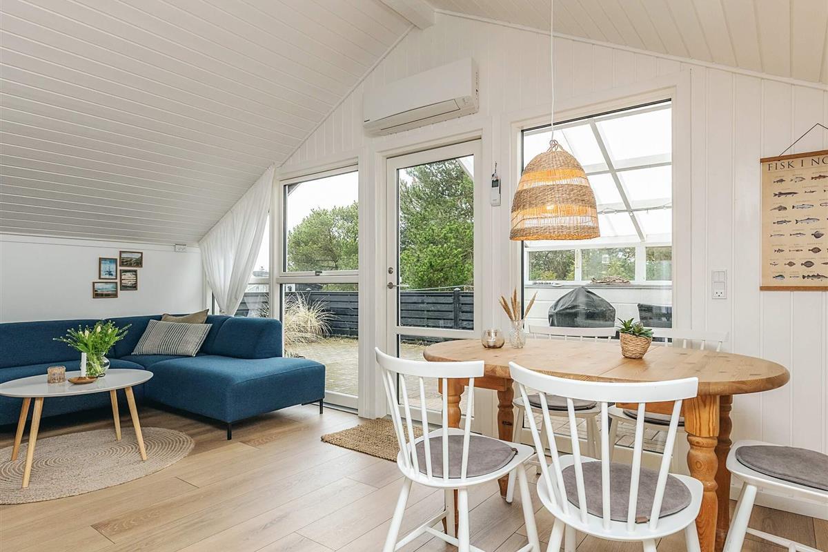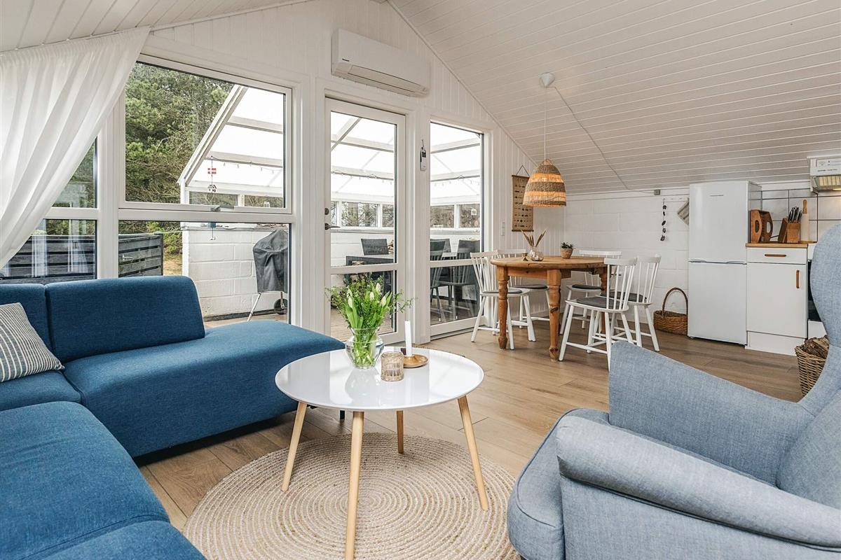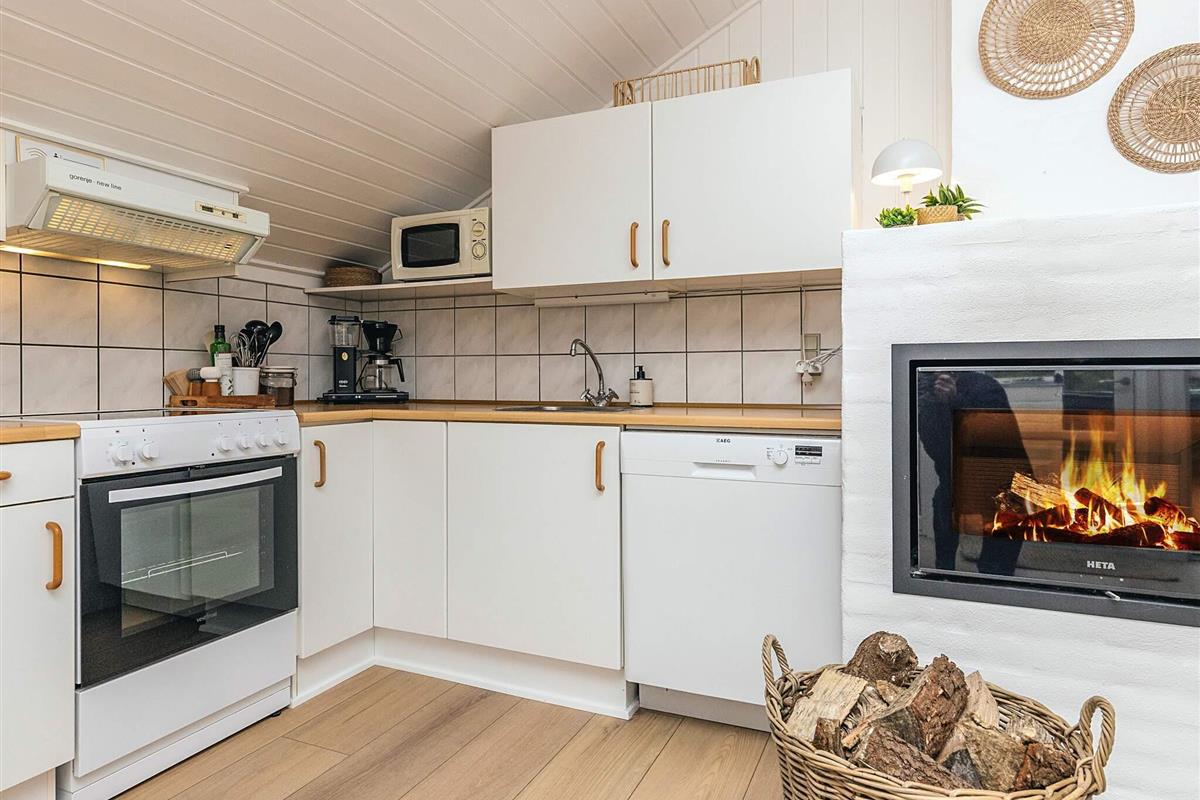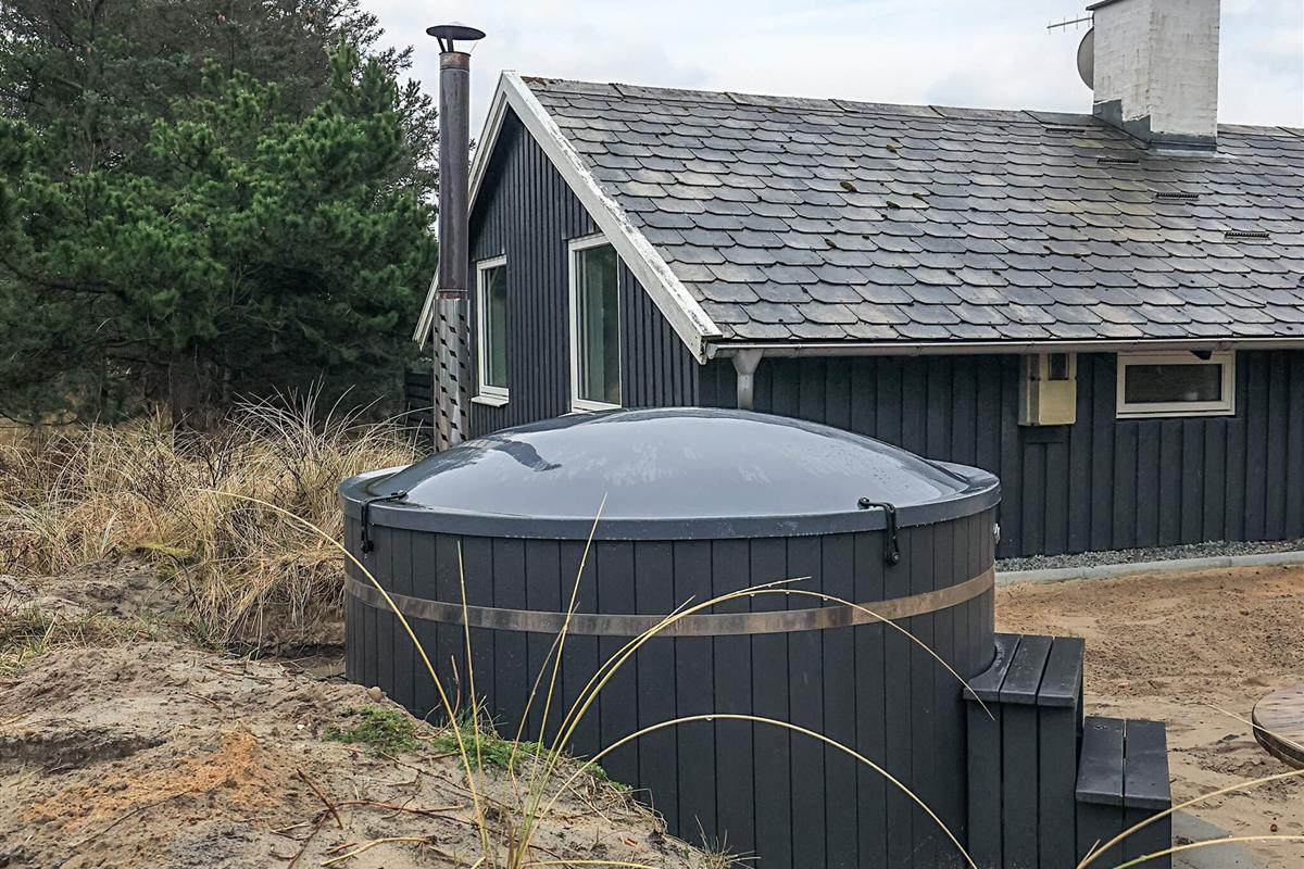 Ferienhaus mit Wildbad in Vorupør, nur ca. 1500 m von der Nordsee entfernt. Es verfügt über einen Holzofen, einen Fernseher mit Chromecast und WLAN. Zwei Schlafzimmer, eines mit Doppelbett und eines mit zwei Einzelbetten, sind vorhanden. Im Wohnzimmer befindet sich eine Nische. Die Küche ist unter anderem mit Mikrowelle, Kühl-/Gefrierschrank und Geschirrspüler ausgestattet. Badezimmer mit Badewanne, WC und Waschbecken.