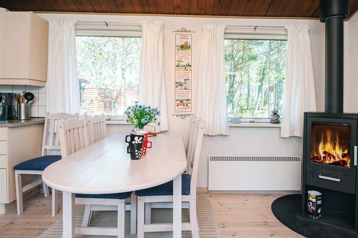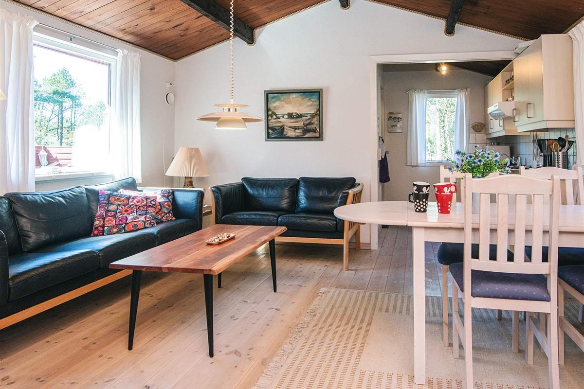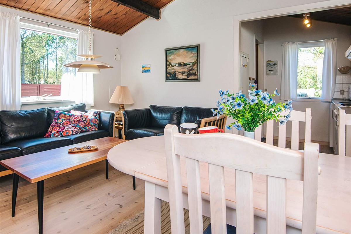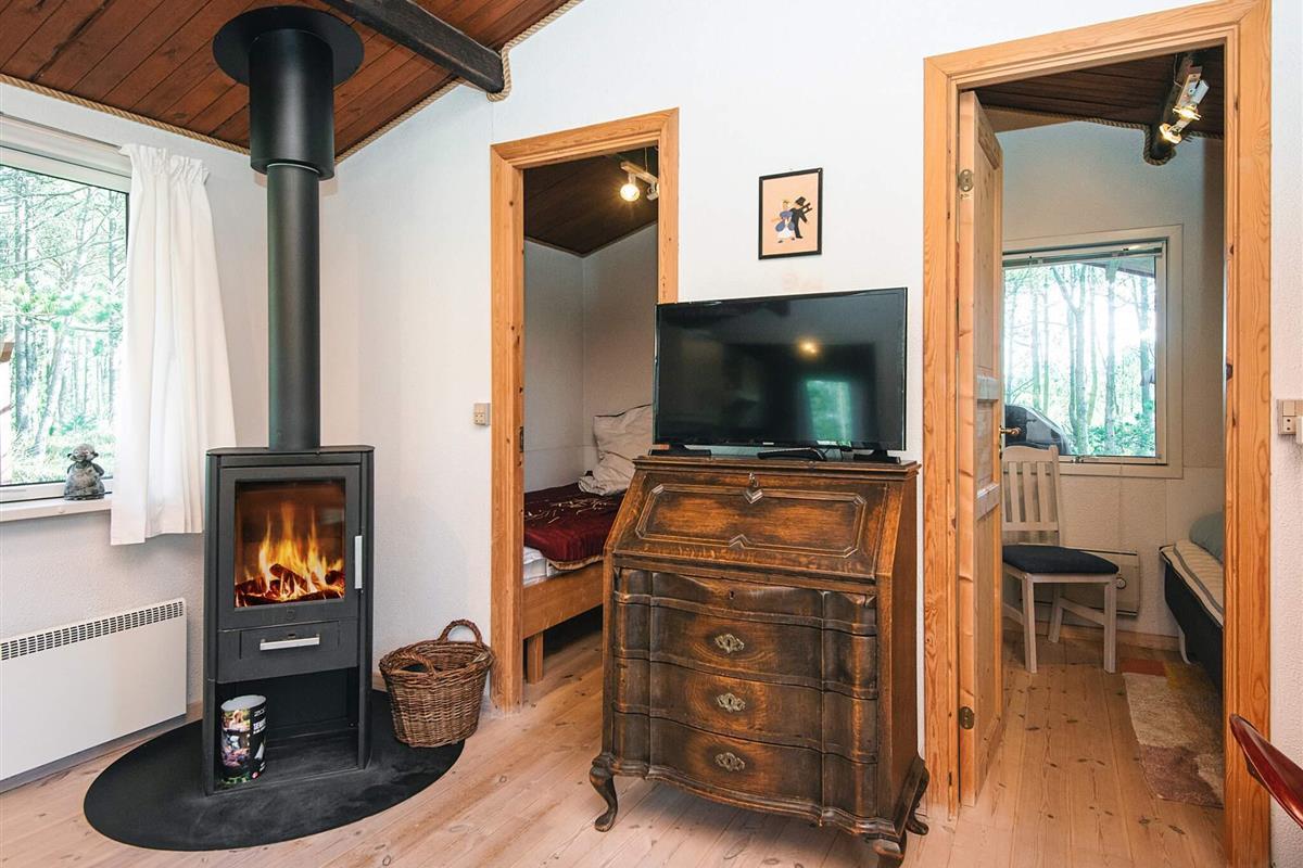 Das Ferienhaus verfügt über ein Wohnzimmer mit Essbereich, TV mit Chromecast und WLAN. Außerdem gibt es einen Holzofen für kühlere Abende. Offene Küche mit Geschirrspüler, Kühlschrank mit Gefrierfach. Zudem drei Schlafzimmer; eines mit Doppelbett, die anderen beiden mit je einem Einzelbett. Badezimmer mit Dusche. Waschmaschine im Nebengebäude.