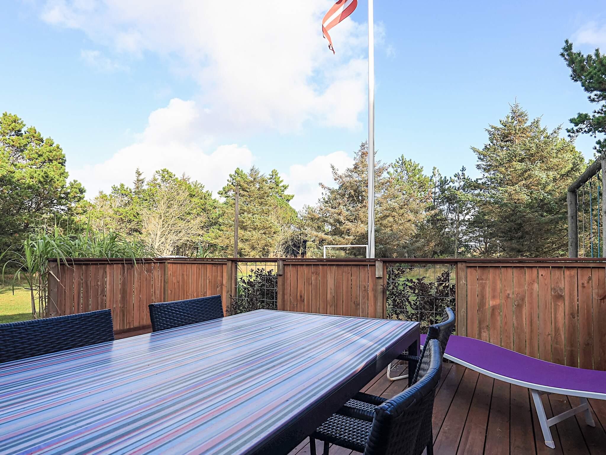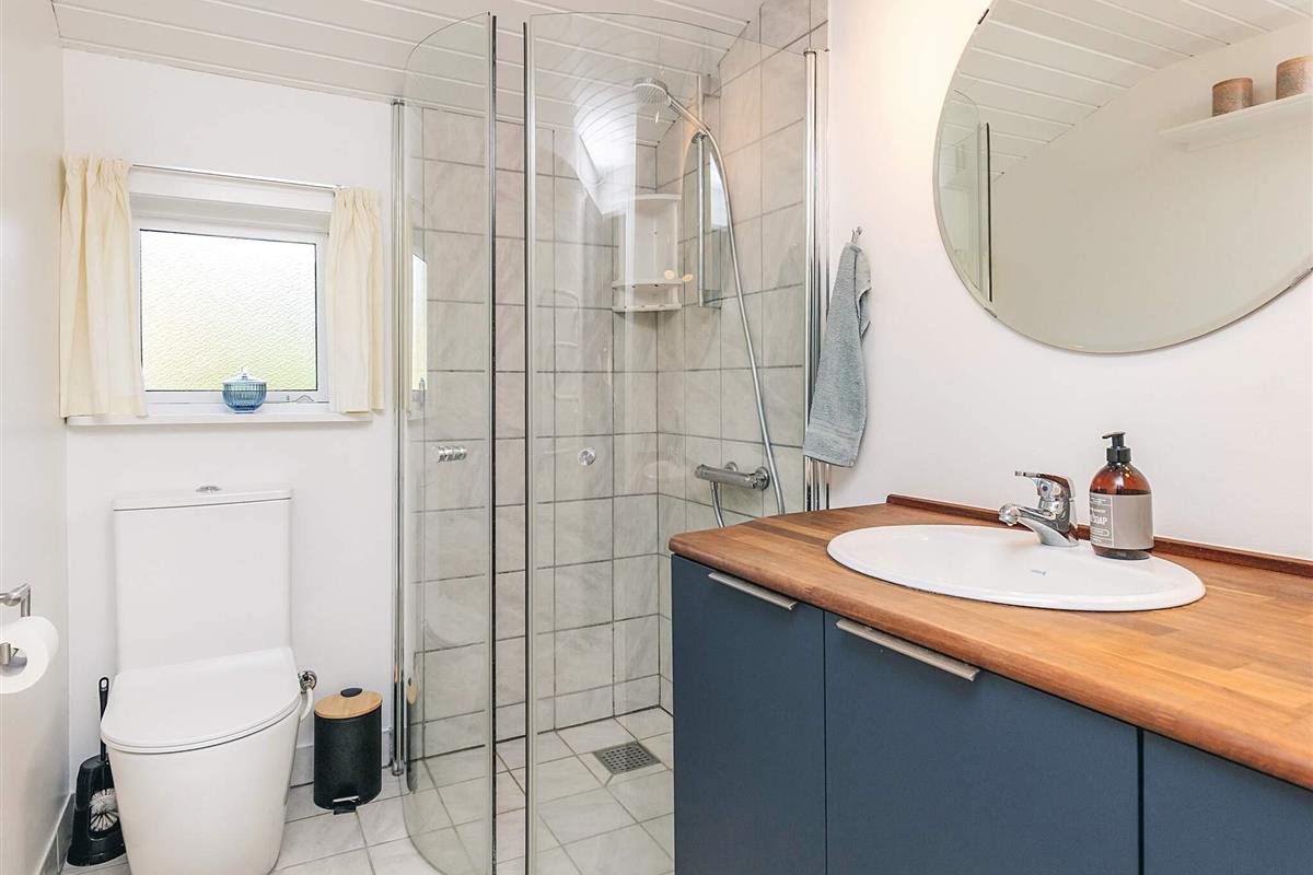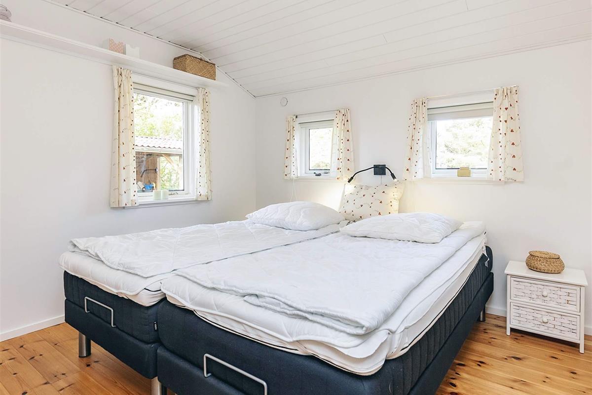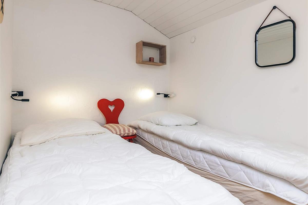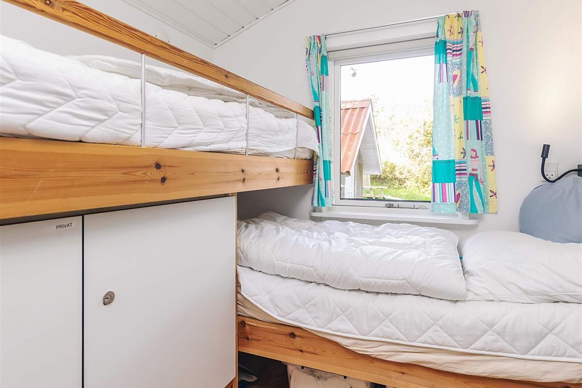 Drei Schlafzimmer mit jeweils Doppelbett bzw. 2 Einzelbetten und 2 Kojen in einem Etagenbett. Küche mit Geschirrspüler. Im Wohnzimmer gibt es Smart-TV und einen Holzofen. Auf der Terrasse, die umzäunt ist, findet man Gartenmöbel und einen Holzkohlegrill vor. Badezimmer mit WC und Dusche sowie angenehmer Fußbodenheizung.
