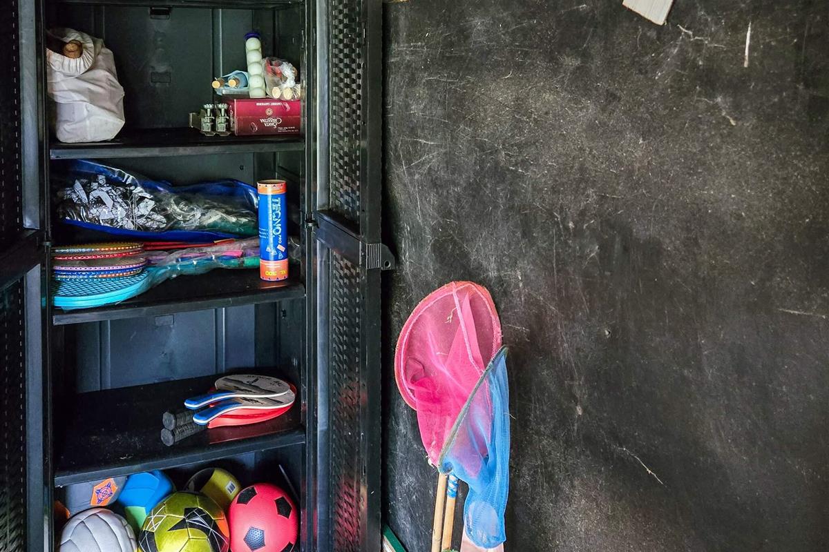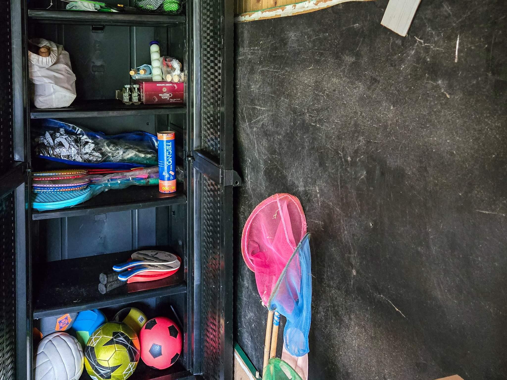 1 Außenbereich: Gartenmöbel, Liegestühle, Lukket terasse, Fußballtor