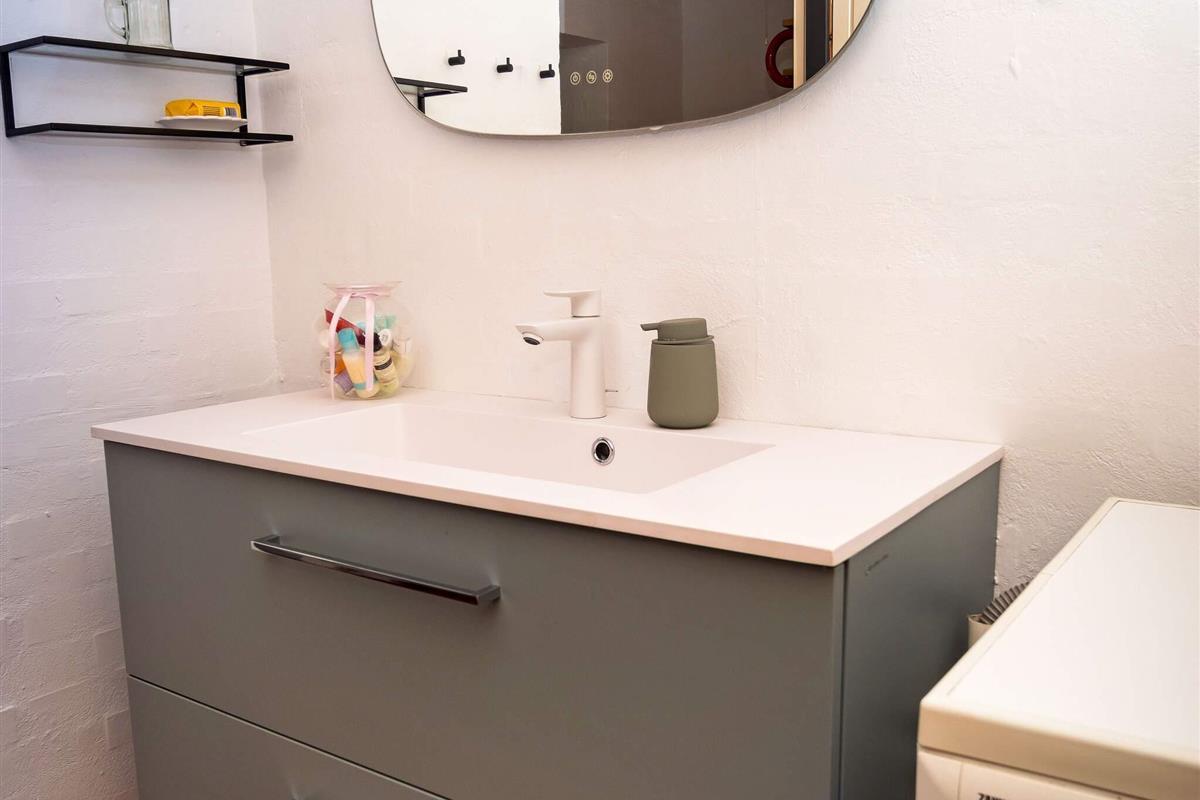 Bad: WC, Waschb., Dusche, Fußbodenheiz.