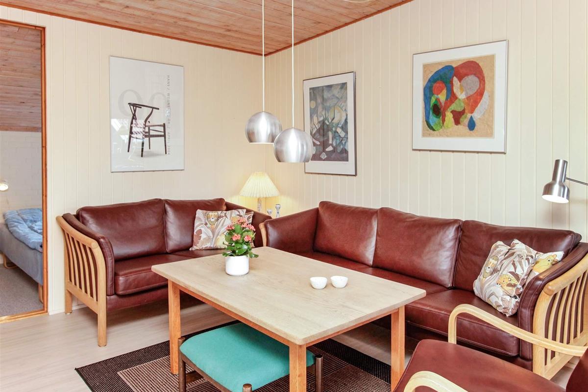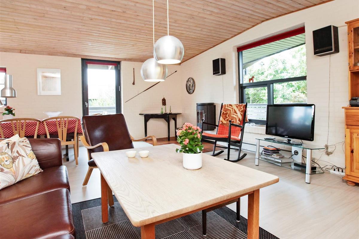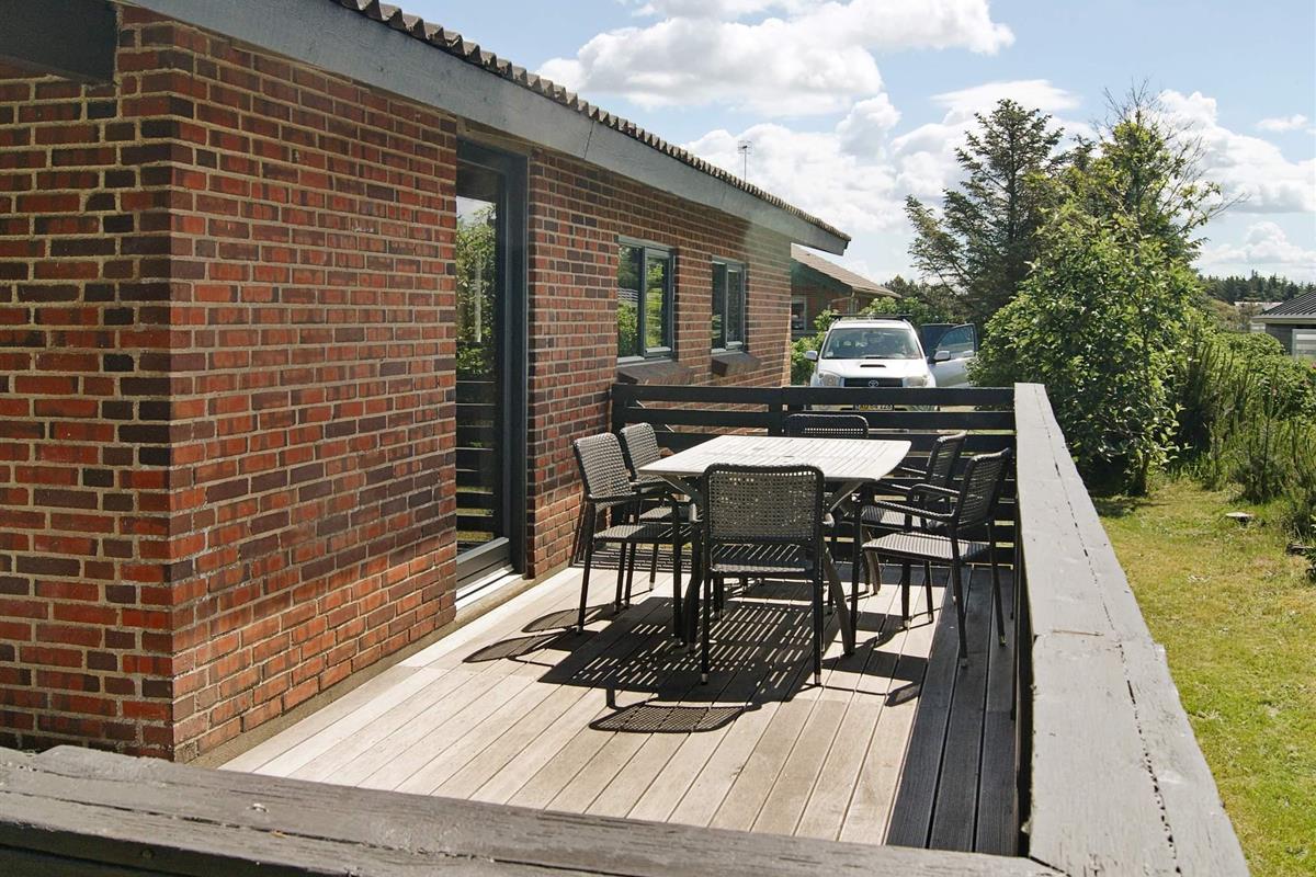 Ferienhaus ca. 800 m vom Meer entfernt und ca. 300 m von der Stadt Vorupør mit Restaurants und Läden entfernt gelegen. Nach einem aktiven Tag können Sie sich im Whirlpool entspannen und in der Sauna aufwärmen. Das Haus steht auf einem Naturgrundstück und verfügt über umzäunte, offene und überdachte Terrassen. Im Haus befinden sich drei gute Schlafzimmer, ein Wohnraum mit Essbereich und Holzofen und integrierter Küche mit Kühlschrank, Spülmaschine und Mikrowelle.