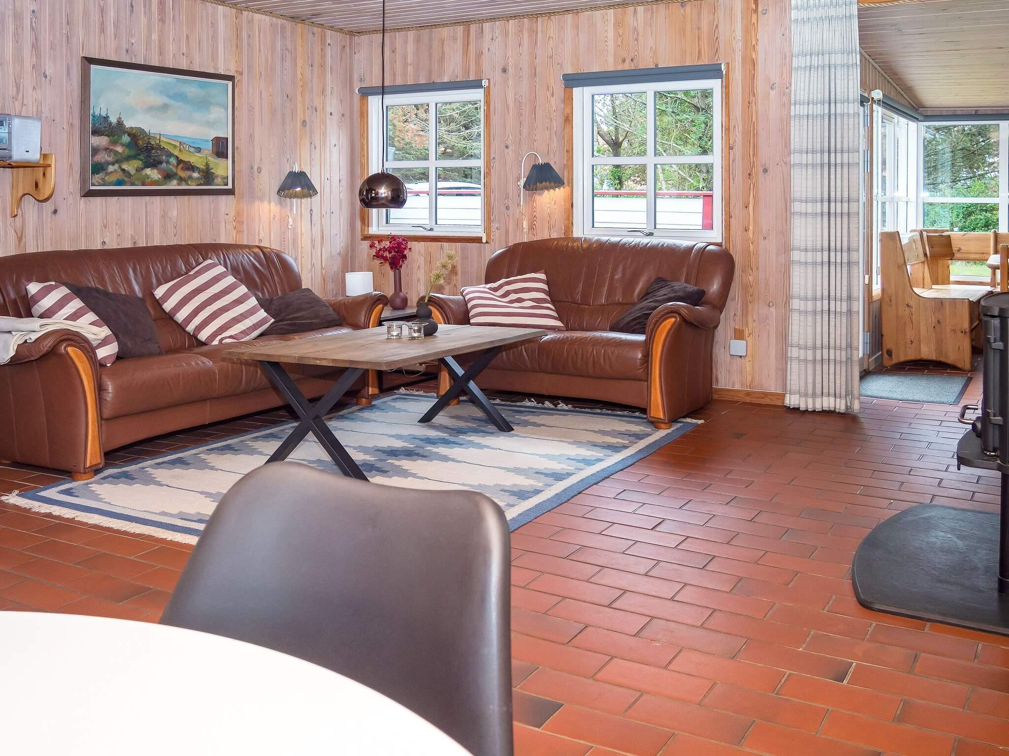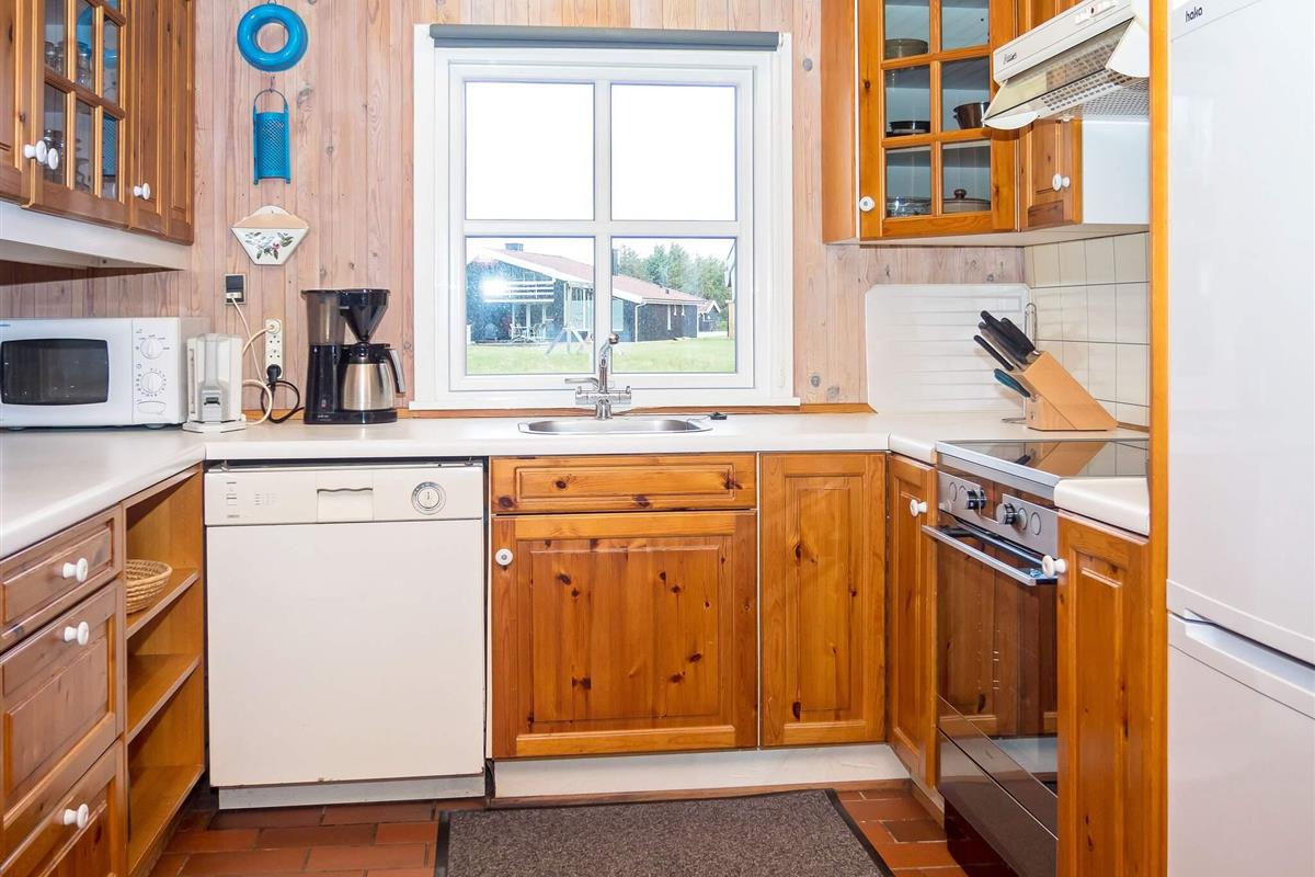 Das Ferienhaus ist innen komfortabel eingerichtet und verfügt über drei Schlafzimmer, alle mit je einem Doppelbett. Badezimmer mit Waschmaschine und Zugang zur Sauna. Gut ausgestattete Küche, u.a. mit Geschirrspüler, Mikrowelle und separatem Gefrierschrank zusätzlich zum Kühlschrank. Zur technischen Ausstattung im Wohnbereich gehören ein Flachbild-TV mit einigen deutschen Sendern zur Auswahl sowie eine schnelle Internetverbindung zum Streamen. Ein Holzofen steht für kühlere Abende bereit. Zudem gibt es eine schöne, verglaste Veranda mit Sitz- und Essplatz, als Alternative an kühleren Tagen zur offenen Terrassenfläche davor mit Sitzgelenheiten und Grill für Sommertage.
