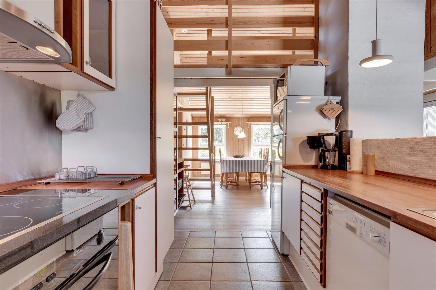De keuken is uitgerust met koelkast Er is 4 elektrische kookplaten, bakoven, magnetron en vaatwasser.