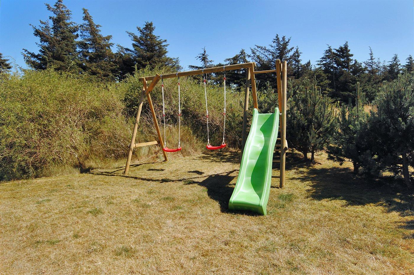 De vakantiewoning is gelegen op een 1000 m² groot natuural grond. Afstand tot de zee 800 m. Dichtstbijzijnde winkel 600 m. Bij de vakantiewoning hoort 60 m² terras. Daarnaast is er een 20 m² groot overdekt terras. Waarvan in totaal 40 m² beschut terras. Schommel. Zandbak. Glijbaan.Garage ter beschikking.