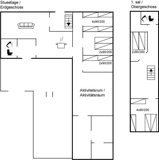Er zijn in totaal 5 slaapkamers. De slaapplaatsen zijn als volgt verdeeld: 6 slaapplaatsen in tweepersoonsbedden. 8 slaapplaatsen in eenpersoonsbedden. Verder is kinderbed ter beschikking.