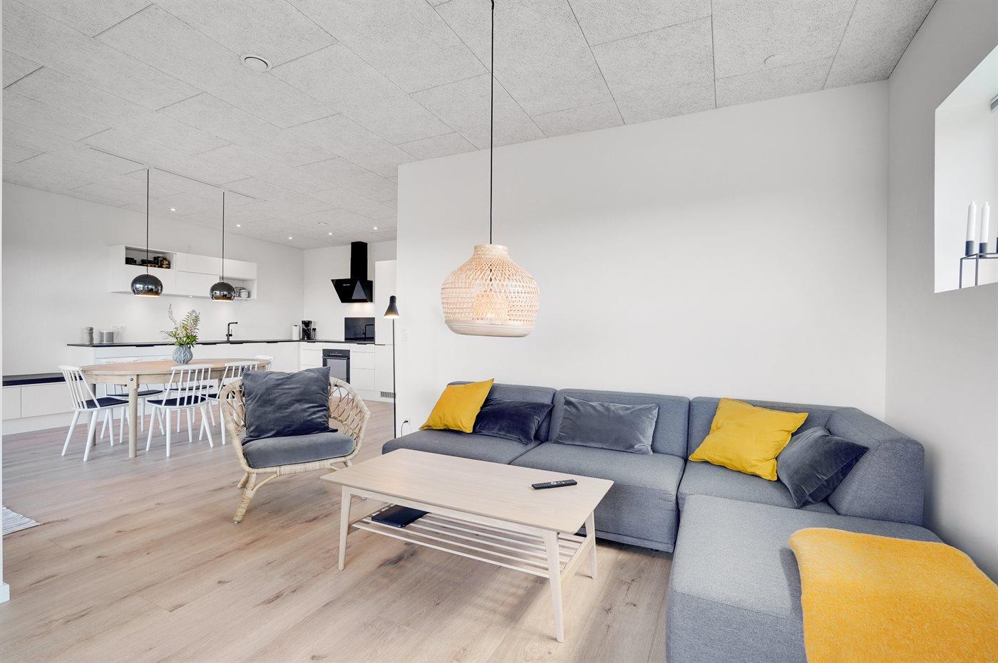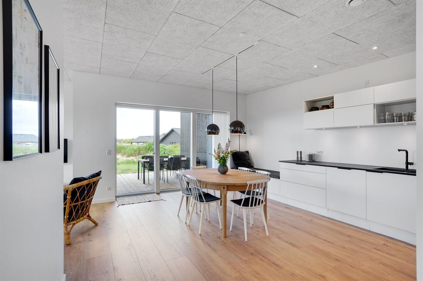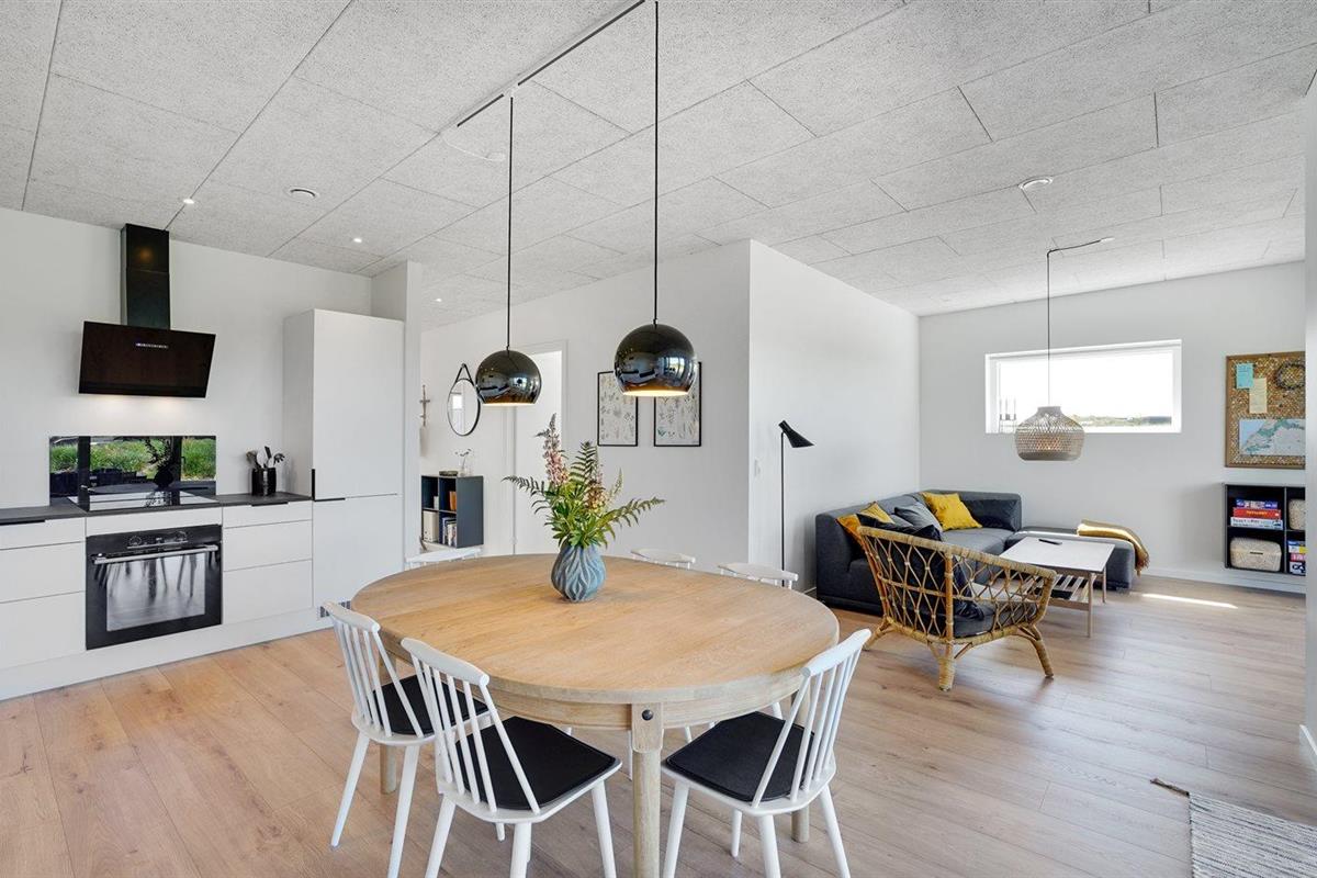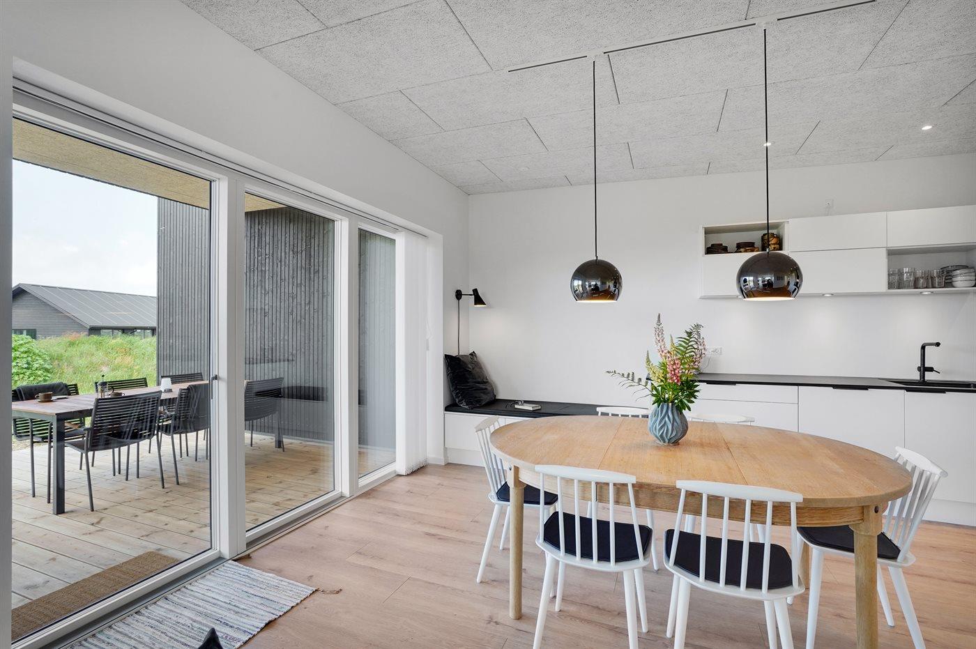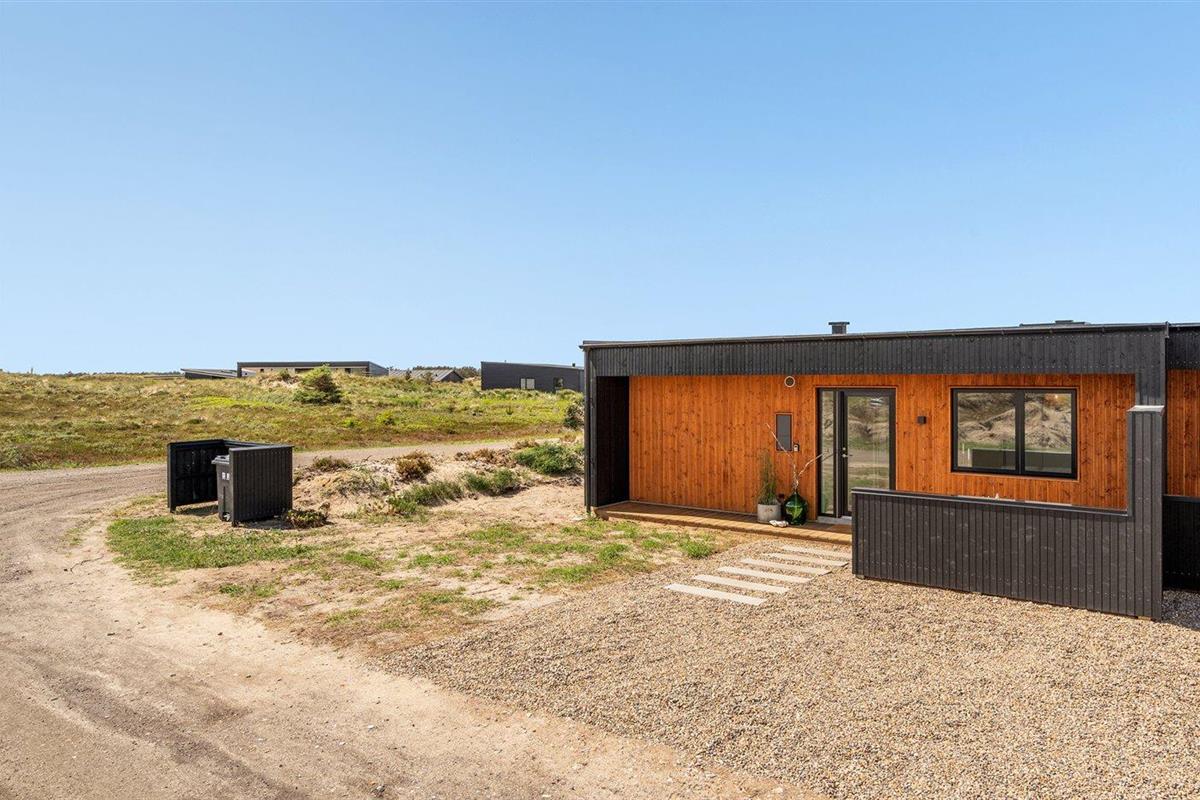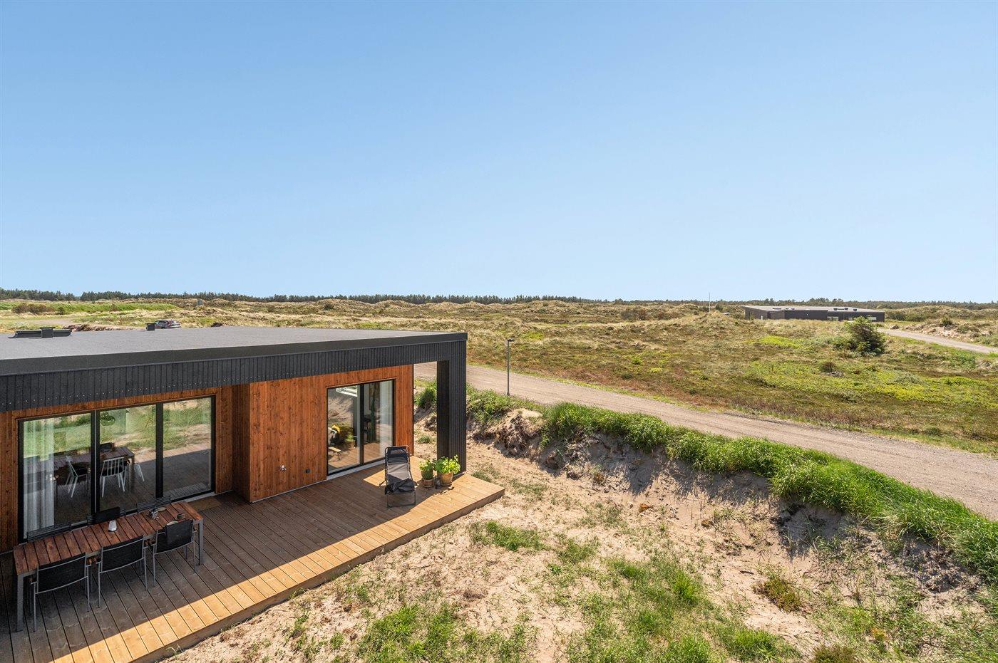 Modern vakantiehuis in Vorupør met vloerverwarming, overdekt terras en duurzame warmtepomp.