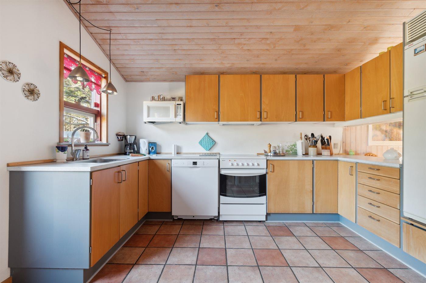 De keuken is uitgerust met koelkast Er zijn 4 keramische kookplaten, heteluchtoven, magnetron en vaatwasser.
