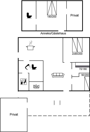 Er zijn in totaal 4 slaapkamers. De slaapplaatsen zijn als volgt verdeeld: 2 slaapplaatsen in tweepersoonsbed. 3 slaapplaatsen in eenpersoonsbedden. 2 slaapplaatsen in stapelbed. 2 van deze slaapplaatsen bevinden zich in de bijgebouw. Verder is kinderbed ter beschikking.