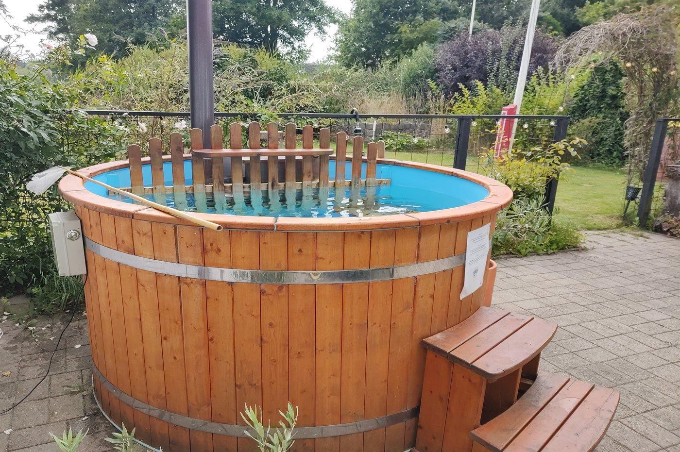 Het buiten hot tub biedt ontspanning aan 5 personen.