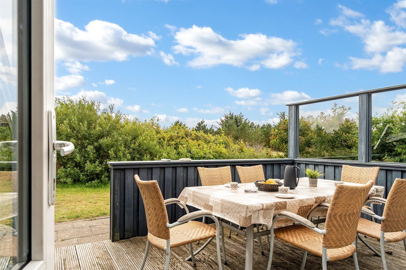 De vakantiewoning is gelegen op een 1500 m² groot Duingrond. Afstand tot de zee 700 m. Dichtstbijzijnde winkel 500 m. Er is een golfbaan op een afstand van 5000 m. Bij de vakantiewoning hoort terras. Daarnaast is er een overdekt terras. Parkeerplaats bij het huis.