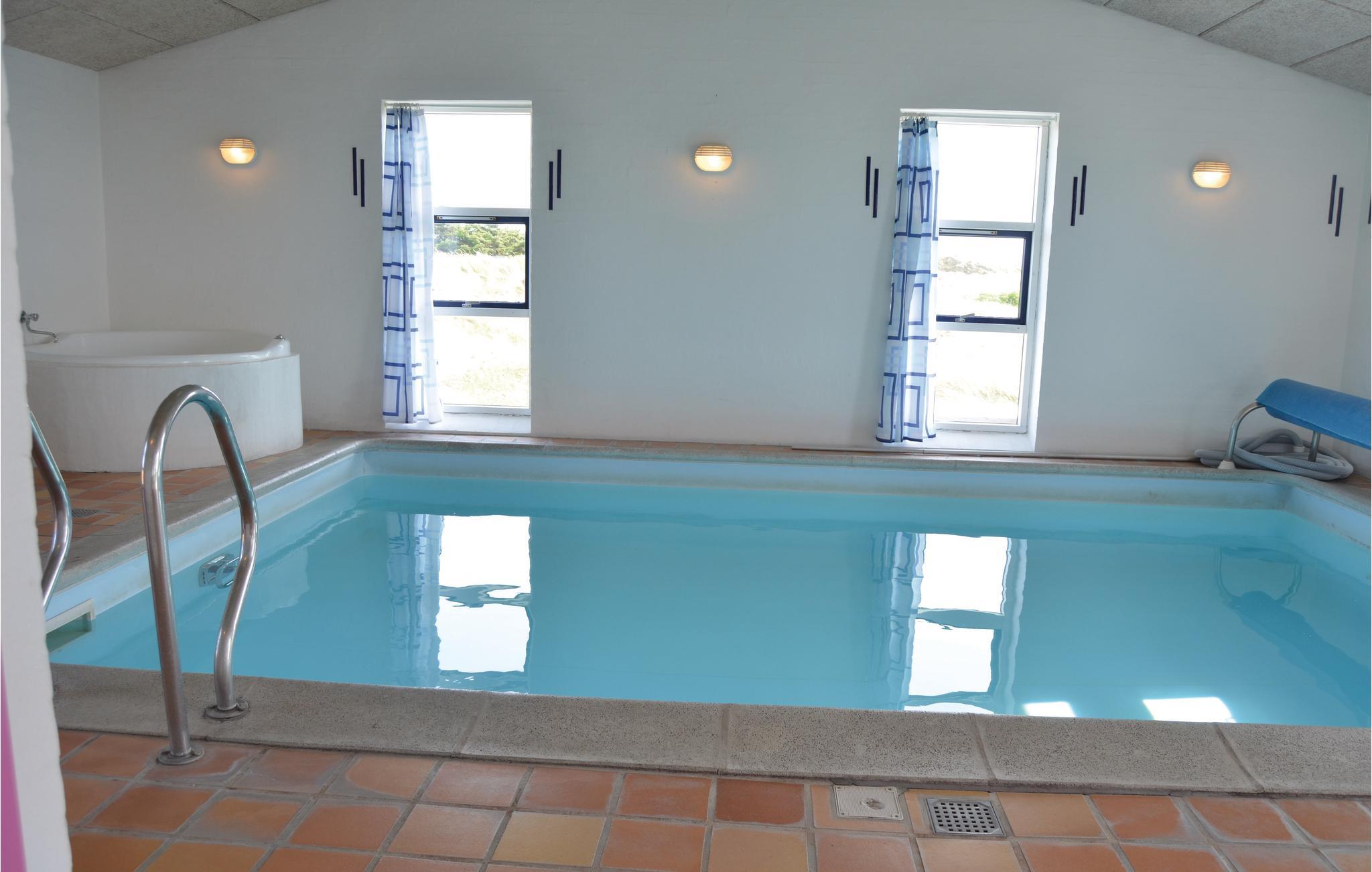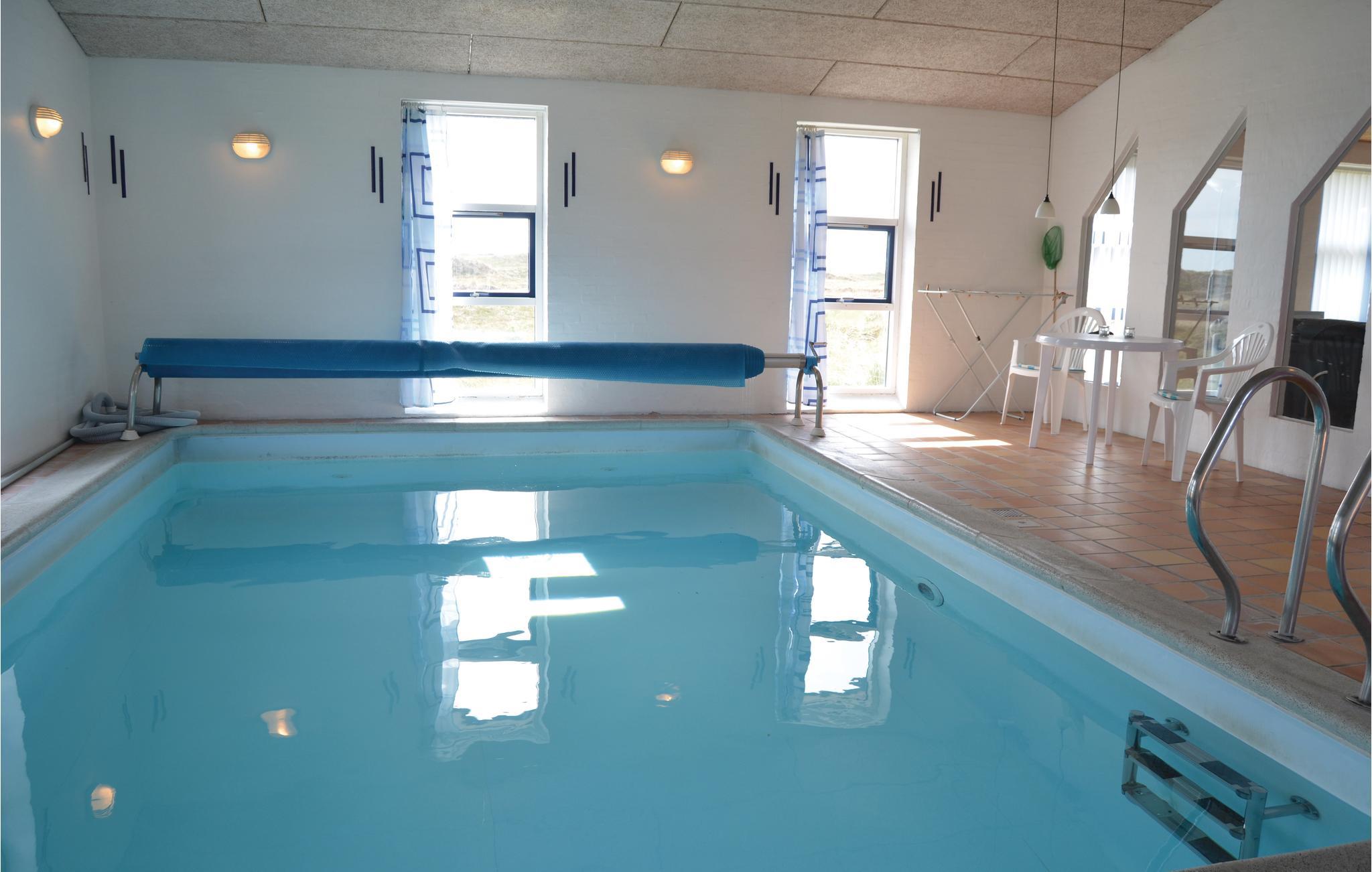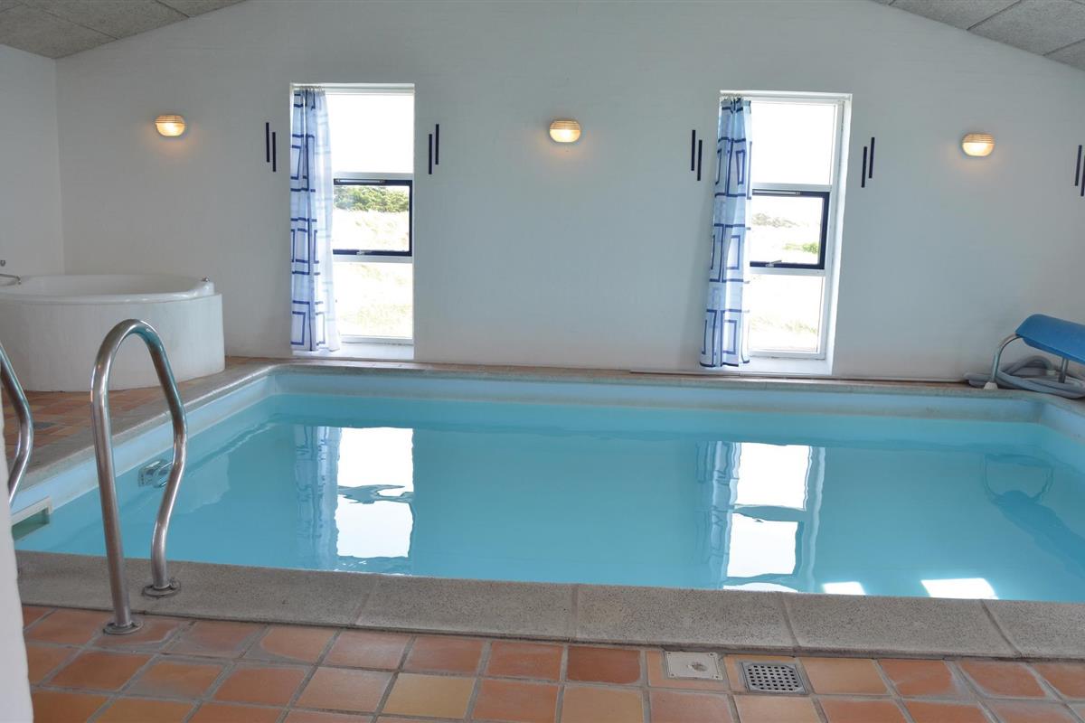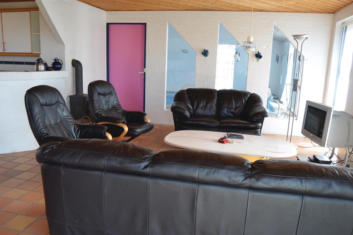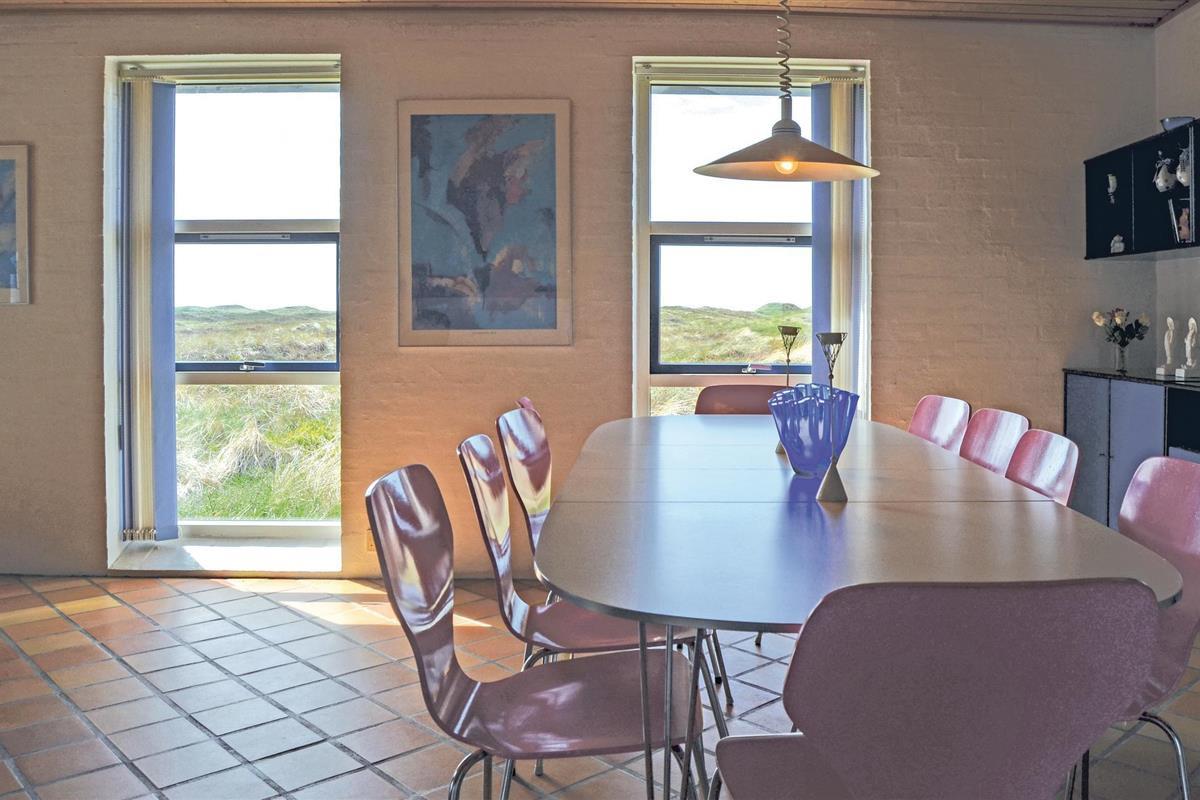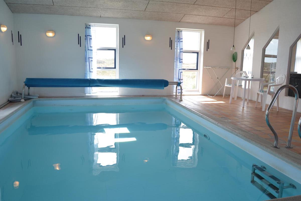 Slechts 300 van het strand, in de eerste duinenrij, ligt dit mooie vakantiehuis op een duinperceel van 4000 m² met uitzicht op zee. Het vakantiehuis is gebouwd van rode bakstenen en is 186 m² groot. De witte binnenmuren zijn gepleisterd en de plafonds zijn van dennenhout. De vloer is bedekt met bakstenen tegels en heeft vloerverwarming, er zijn tapijten in de 5 slaapkamers. De goed uitgeruste keuken heeft onder andere een vaatwasser en magnetron. Vanuit de ruime en sfeervol ingerichte woonkamer heeft u toegang tot het grote terras op het oosten, evenals de zwembadruimte met 20 m² zwembad, sauna en whirlpool voor 2 personen. Verder zijn er 2 badkamers met wasmachine en droger in één - in beide badkamers is uiteraard vloerverwarming. Het huis is door zijn royale afmetingen en uitgebreide uitrusting geschikt voor een gezamenlijke vakantie van meerdere gezinnen.