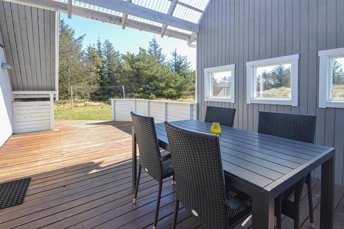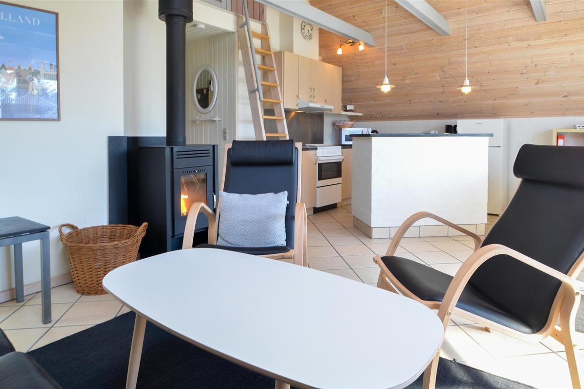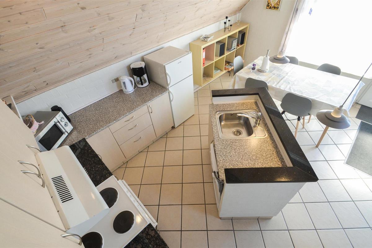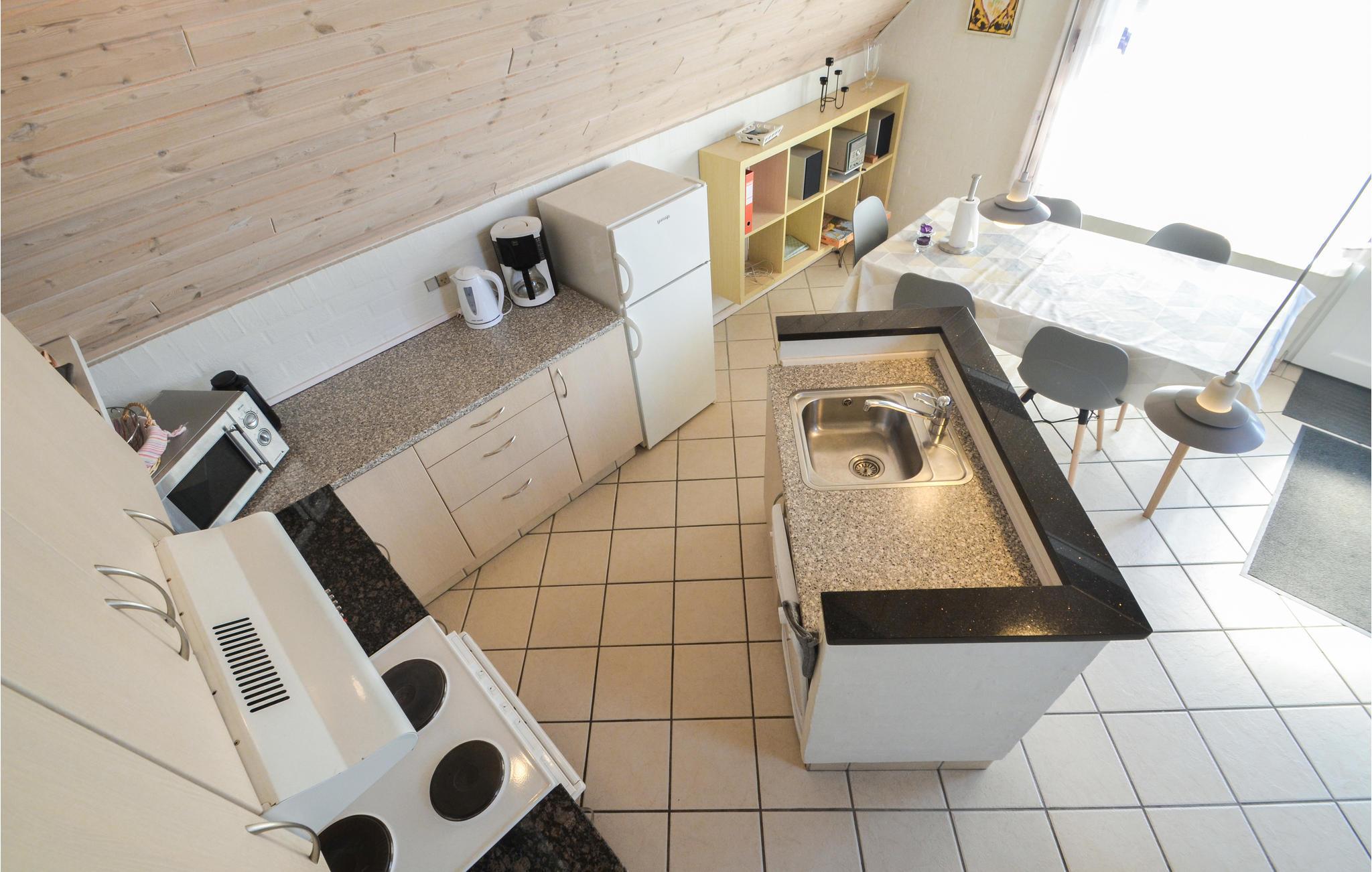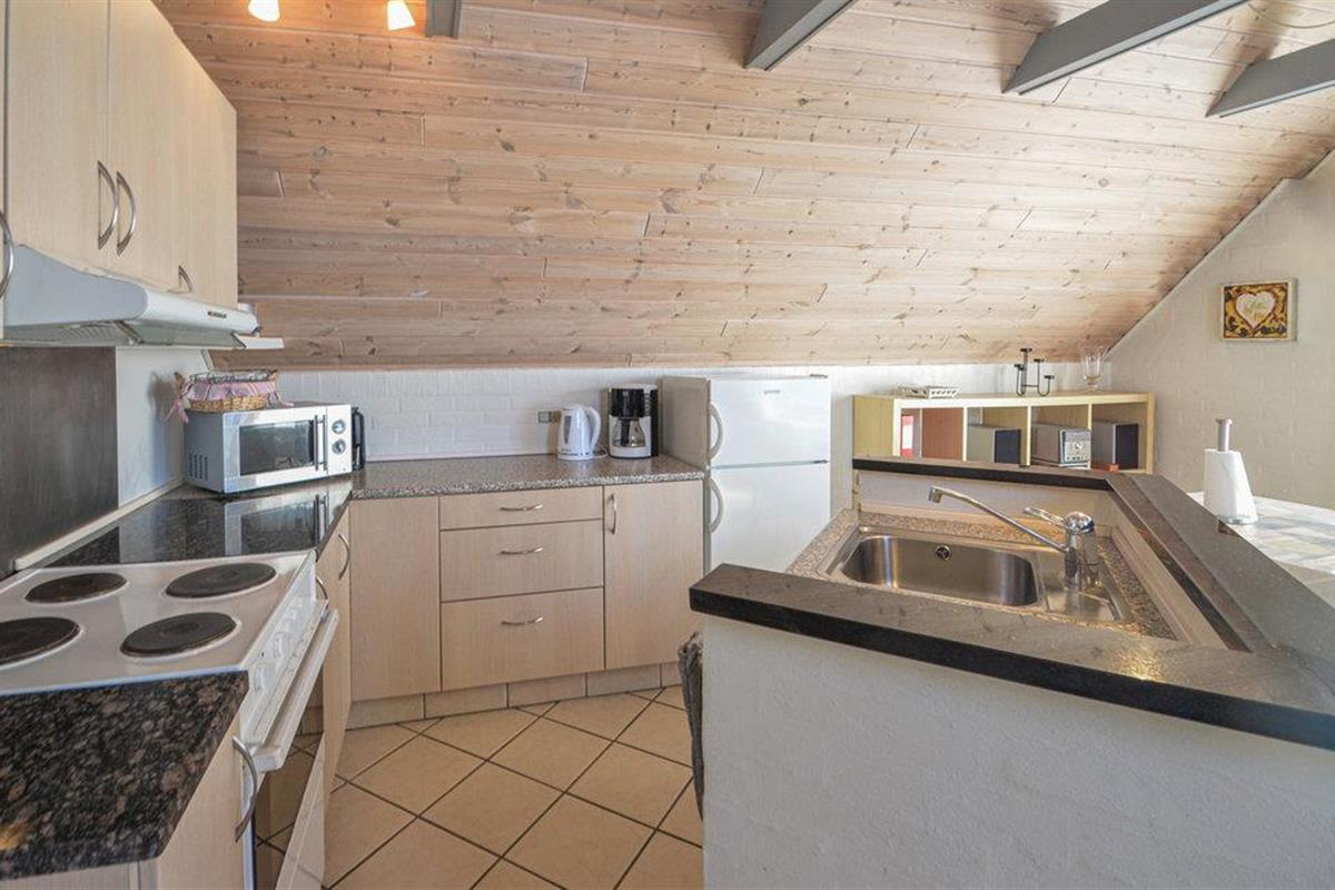 De open keuken heeft een vaatwasser, koffiezetapparaat en magnetron. Hier kunt u uw vakantiemaaltijden bereiden of gebruik maken van de barbecue op het overdekte terras. Op warme zomeravonden kunt u hier ook genieten van uw ochtendkoffie of een glas wijn. Vanaf het terras kunt u genieten van een geweldig uitzicht op het prachtige landschap.