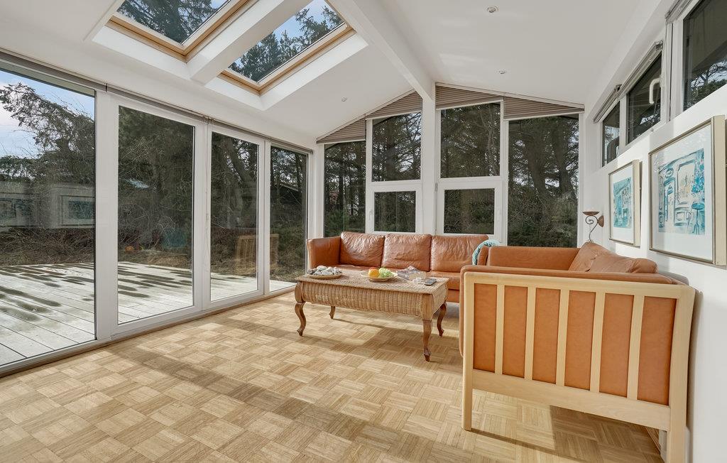 De huiselijke inrichting en veel ruimte voor gezamenlijke activiteiten zorgen voor een gezellige feel-good sfeer in de lichte kamers van dit huis, dat u omringd door bomen verwelkomt. Geniet samen van maaltijden met uitzicht op de buitenlucht en ontspan met uw geliefden op de bank in de beste panoramische positie, terwijl het uitzicht over het weidse landschap dwaalt. Maak het uzelf 's avonds gemakkelijk, kijk een film of praat tot laat in de avond bij de gezellige knetterende open haard.