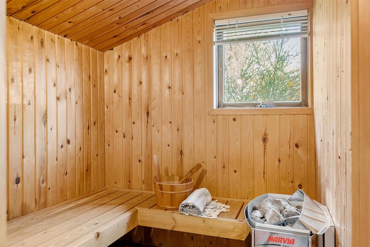 Modern vakantiehuis in Vorupør met sauna, whirlpool en houtkachel voor een ontspannen familievakantie.