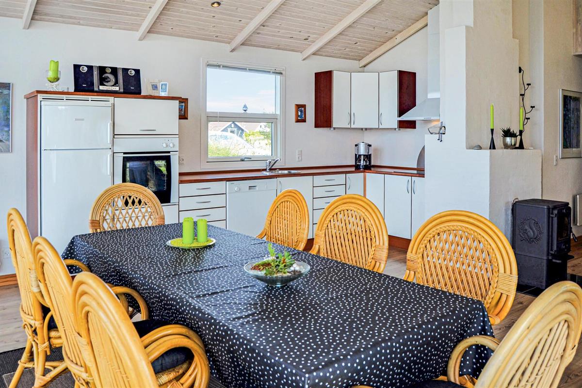 Dit goed onderhouden houten vakantiehuis bevat een ruime serre van waaruit u toegang heeft tot het mooie terras, zodat u zich bij elk weer buiten waant. Het vakantiehuis is ingericht met lichte, moderne meubels. Bezoek de mooie stad Thisted, waar vaak concerten worden gegeven, en daar vindt u ook een kleine bioscoop voor regenachtige dagen. Maak lange wandelingen langs de kust en zie de schepen voorbij varen. Naast gratis toegang tot het Erlebnsibad kan ook het Sportcenter Thy Hallen gratis gebruikt worden door de gasten van het huis.