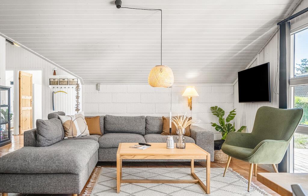 Dit comfortabele vakantiehuis ligt op een gedeeltelijk beplant natuurgrondstuk in Vorupør, midden in het Thy National Park. Het is de ideale plek voor een ontspannen en gevarieerde familievakantie, ver weg van de stress van alledag. Het huis maakt indruk met zijn lichte en smaakvolle sfeer en biedt genoeg ruimte voor je gezin. Hier kun je nieuwe recepten uitproberen in de goed uitgeruste keuken, gezellige filmavonden organiseren of bordspelletjes spelen.