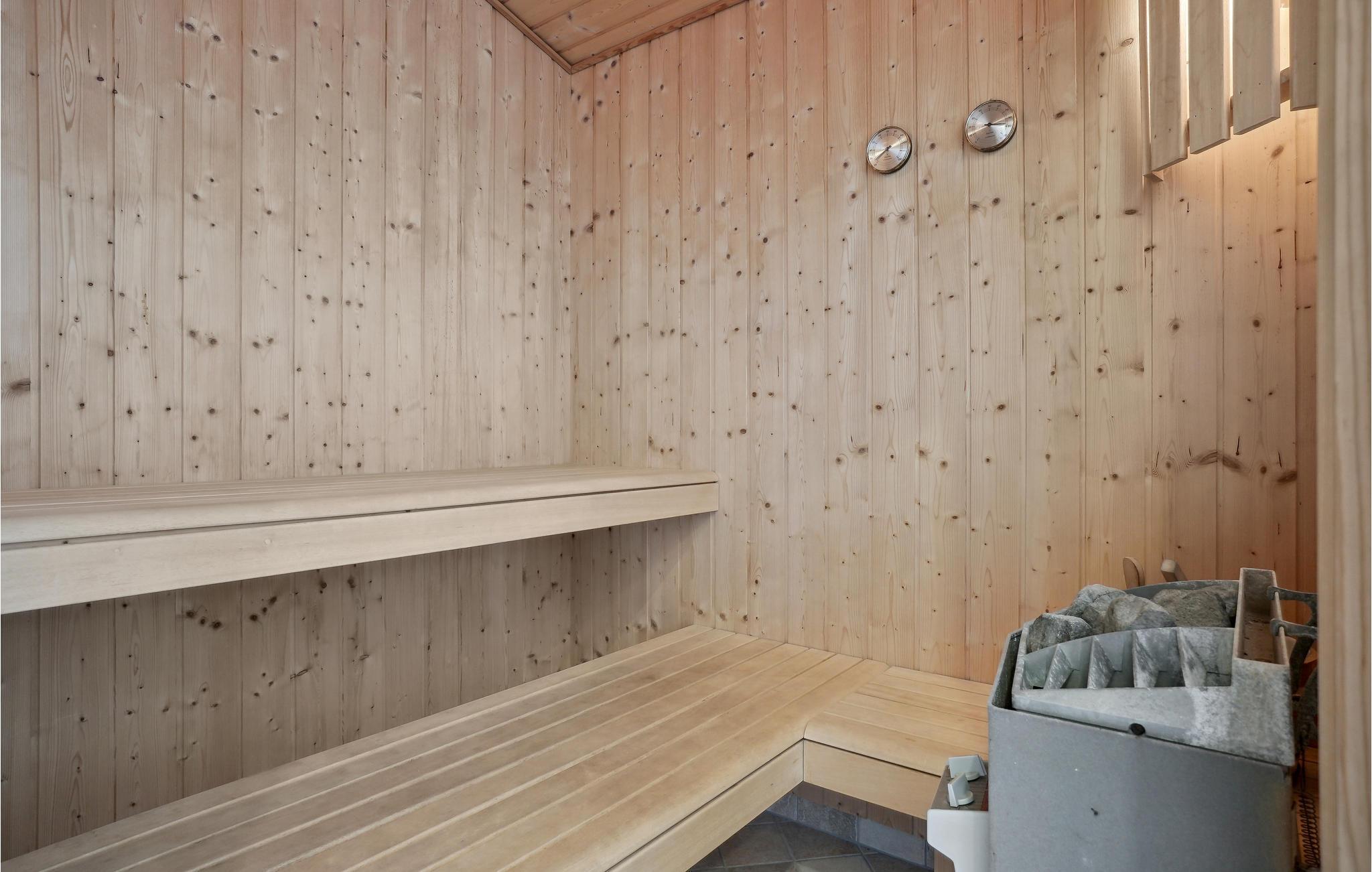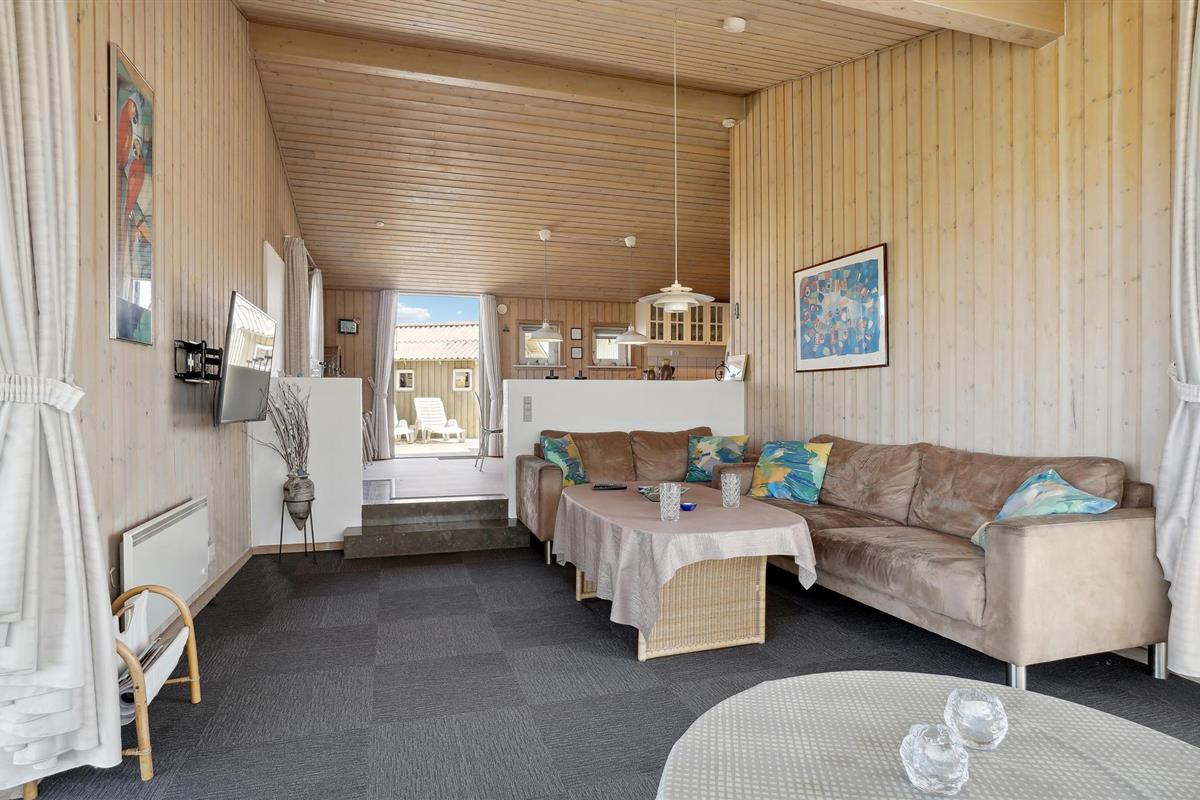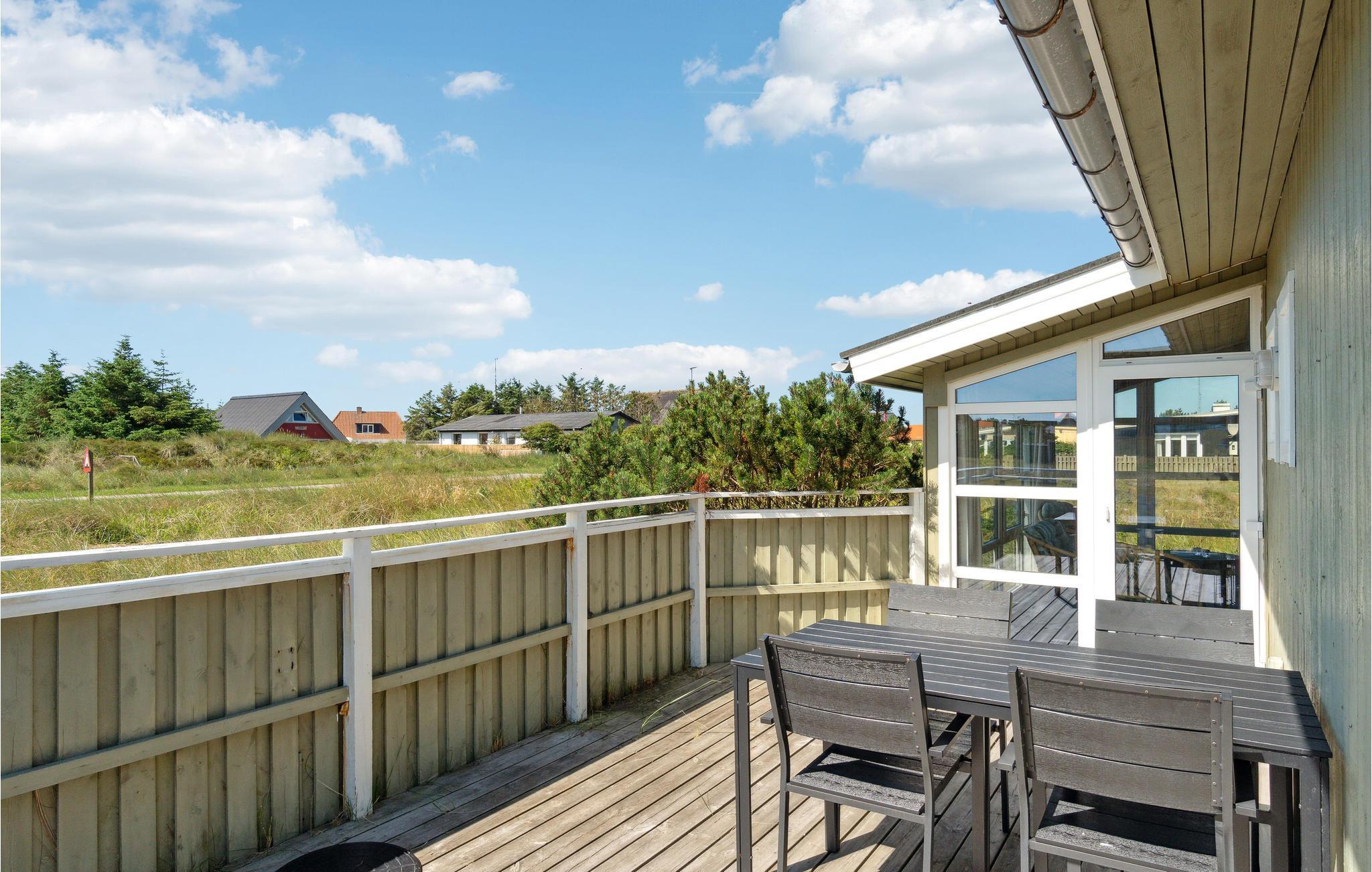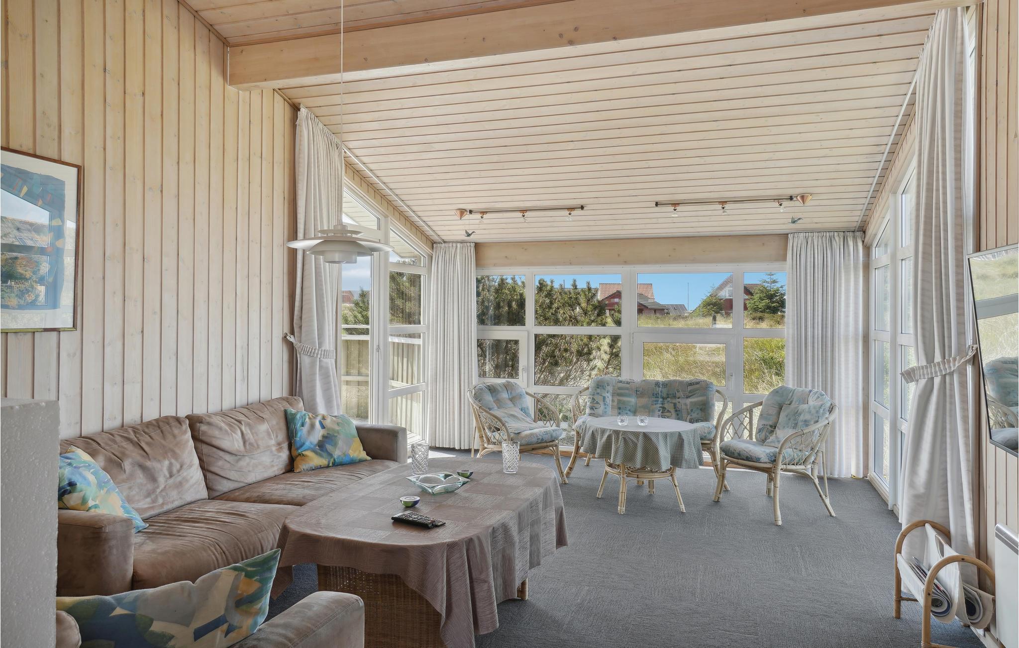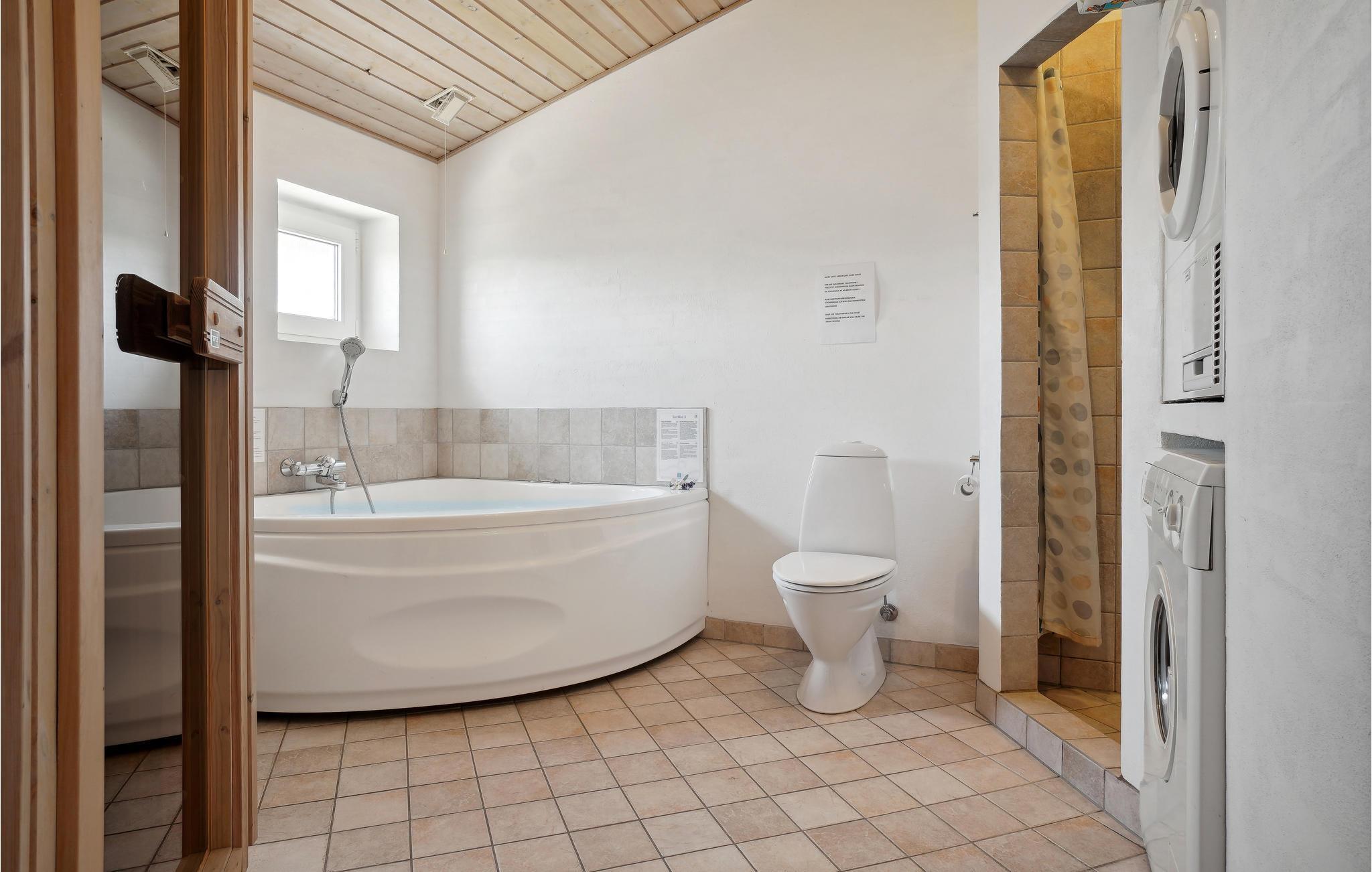 Aan wat waarschijnlijk een van de mooiste badstranden van de Noordzee is, ligt dit volledig gerenoveerde vakantiehuis op een heuvelachtig natuurgrondstuk. Het huis heeft een mooie woonkamer met hedendaagse, moderne meubels die u uitnodigen om te ontspannen. Op een koele avond kunt u het zich echt gezellig maken voor de houtkachel. Hiermee verbonden is de lichte en goed uitgeruste keuken. Na een ontspannend massagebad in de whirlpool kunt u genieten van een warme sauna. Er zijn twee terrassen bij het huis, zodat u altijd een perfect plekje bij het huis kunt vinden.
