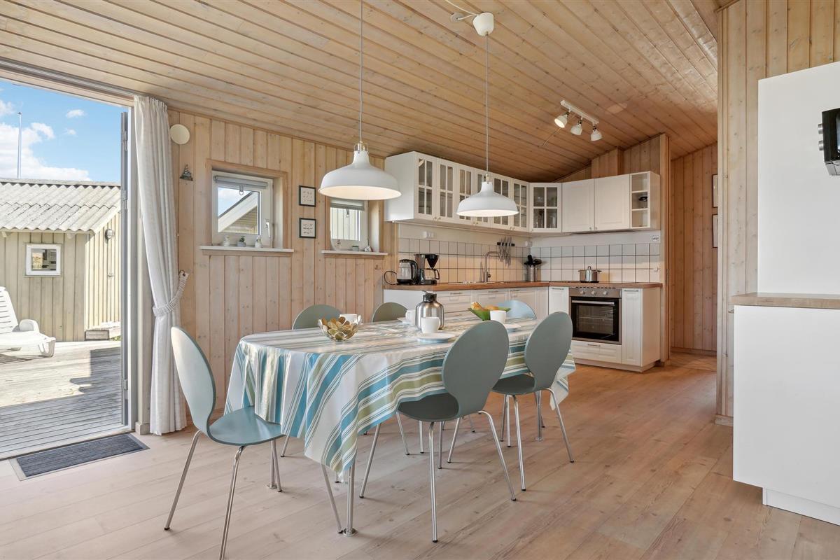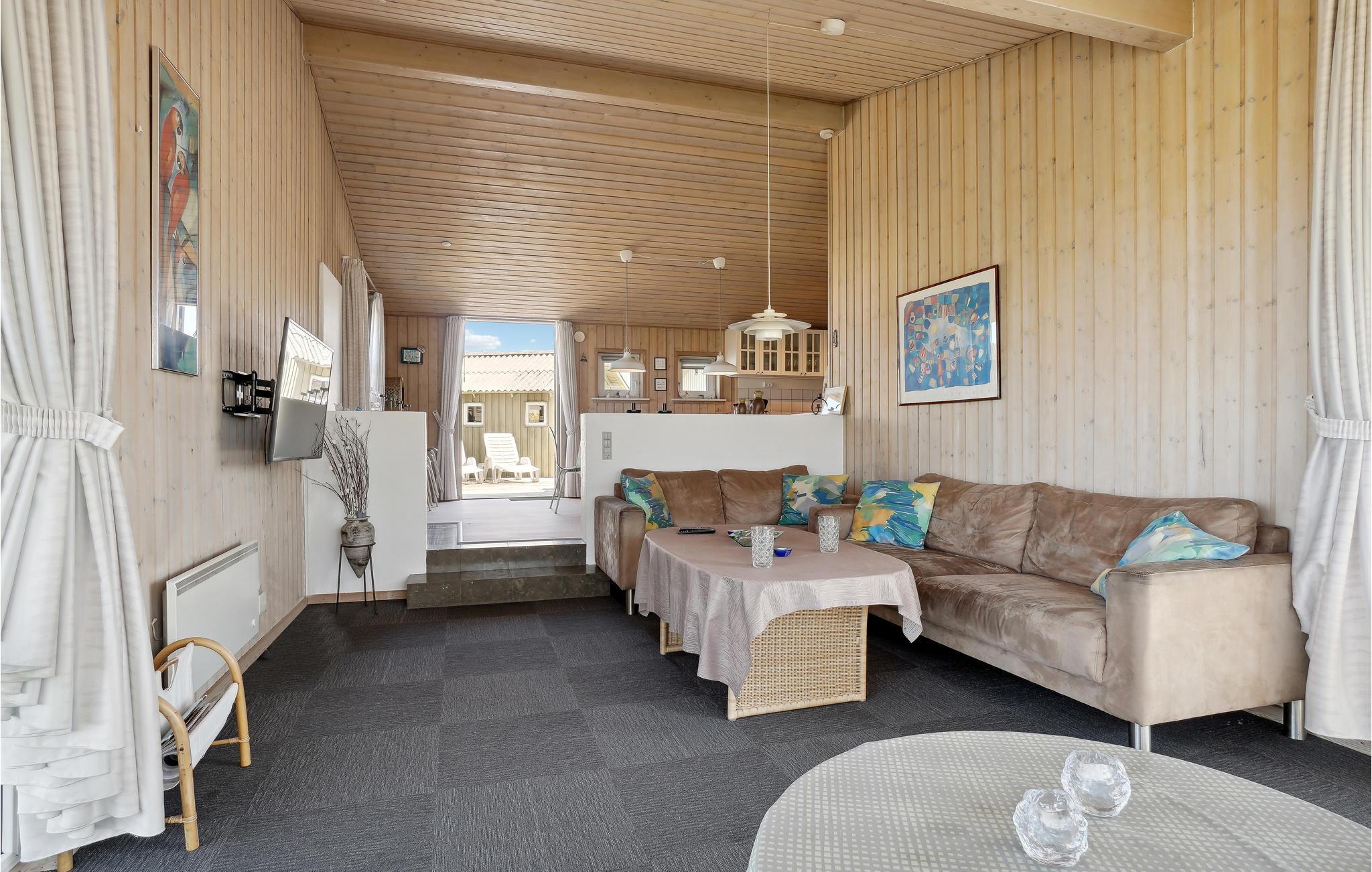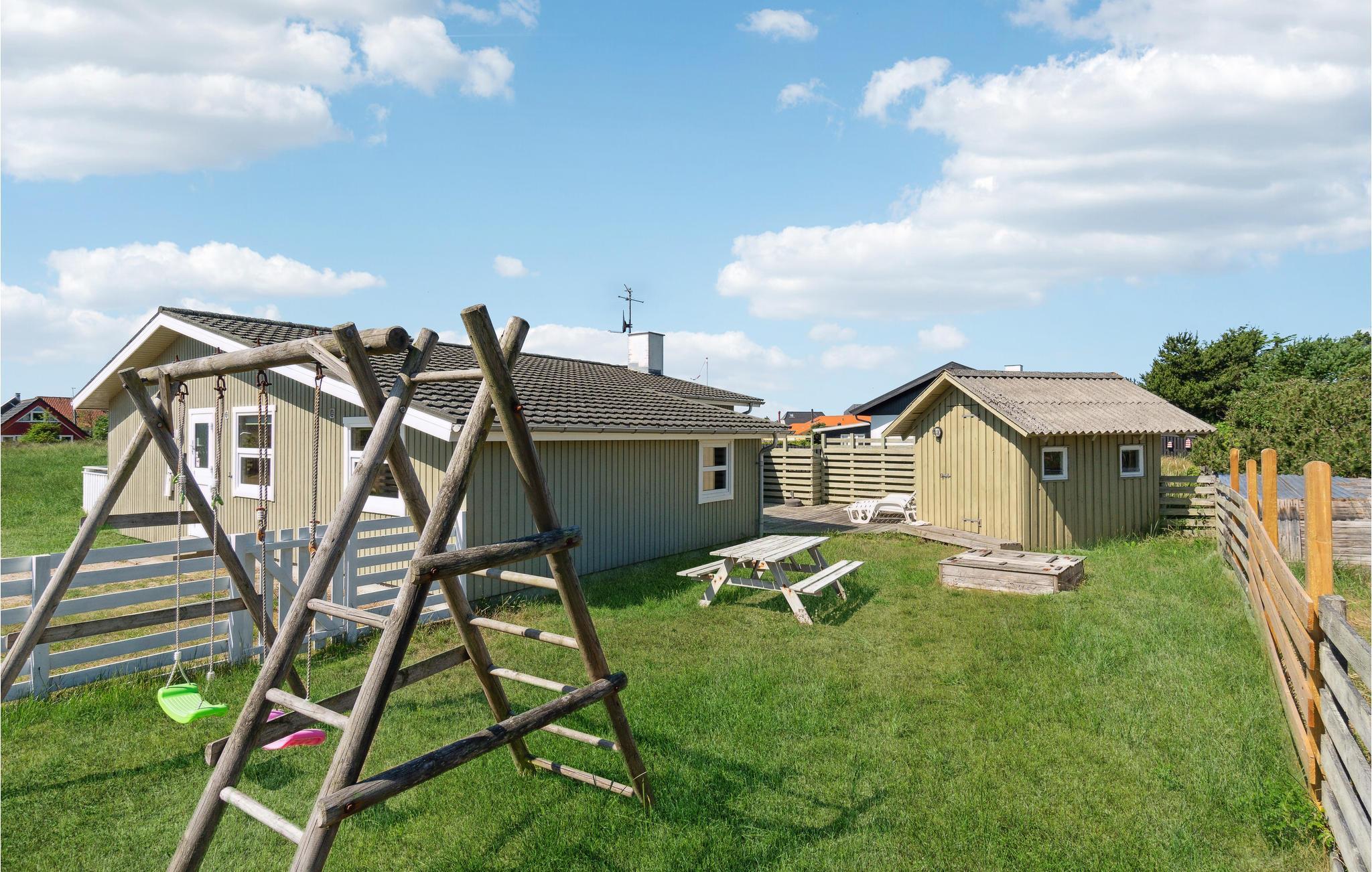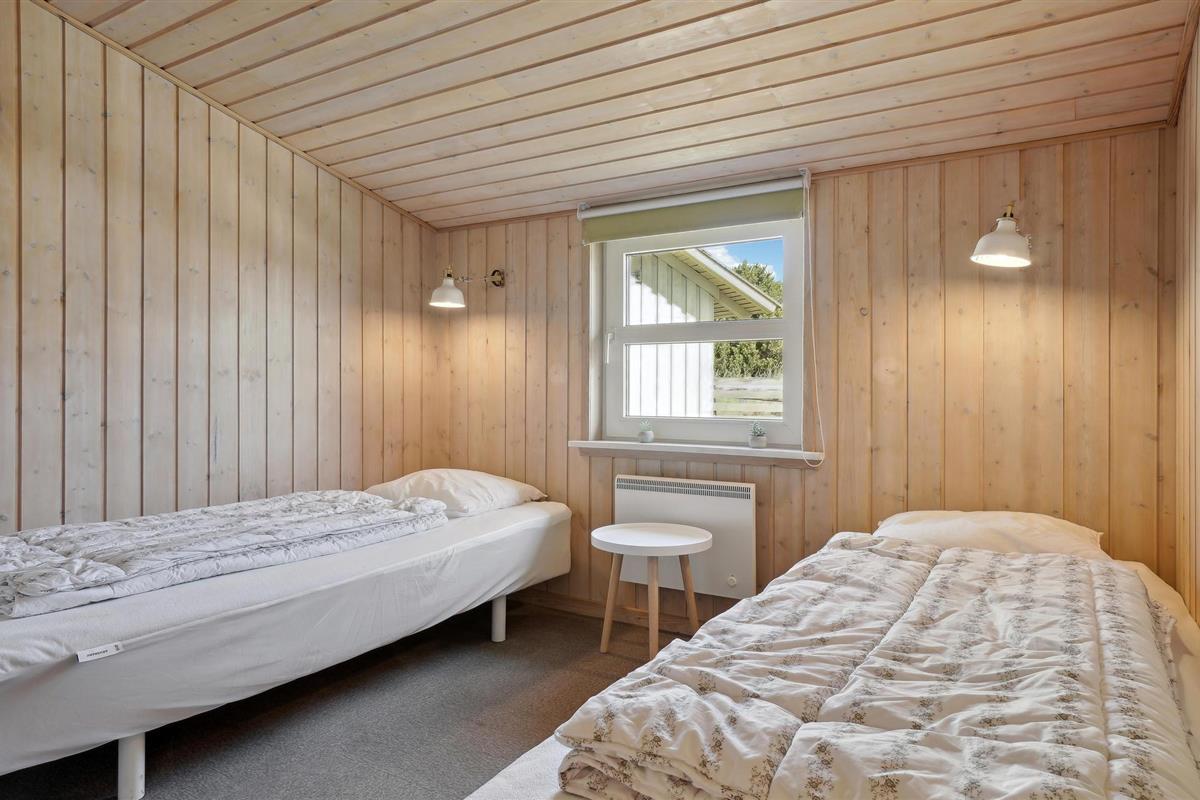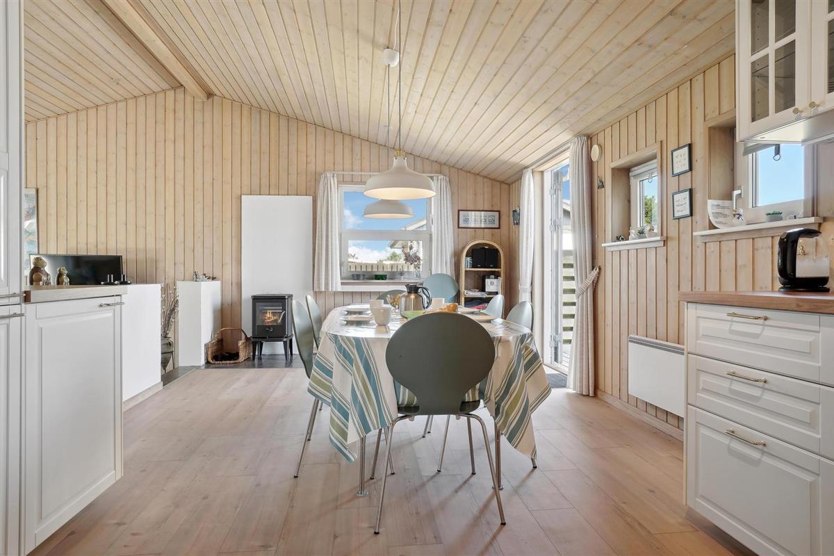 Aan wat waarschijnlijk een van de mooiste badstranden van de Noordzee is, ligt dit volledig gerenoveerde vakantiehuis op een heuvelachtig natuurgrondstuk. Het huis heeft een mooie woonkamer met hedendaagse, moderne meubels die u uitnodigen om te ontspannen. Op een koele avond kunt u het zich echt gezellig maken voor de houtkachel. Hiermee verbonden is de lichte en goed uitgeruste keuken. Na een ontspannend massagebad in de whirlpool kunt u genieten van een warme sauna. Er zijn twee terrassen bij het huis, zodat u altijd een perfect plekje bij het huis kunt vinden.