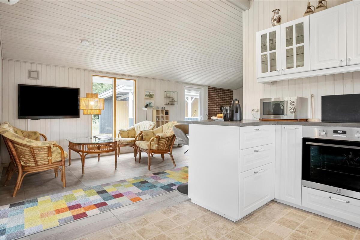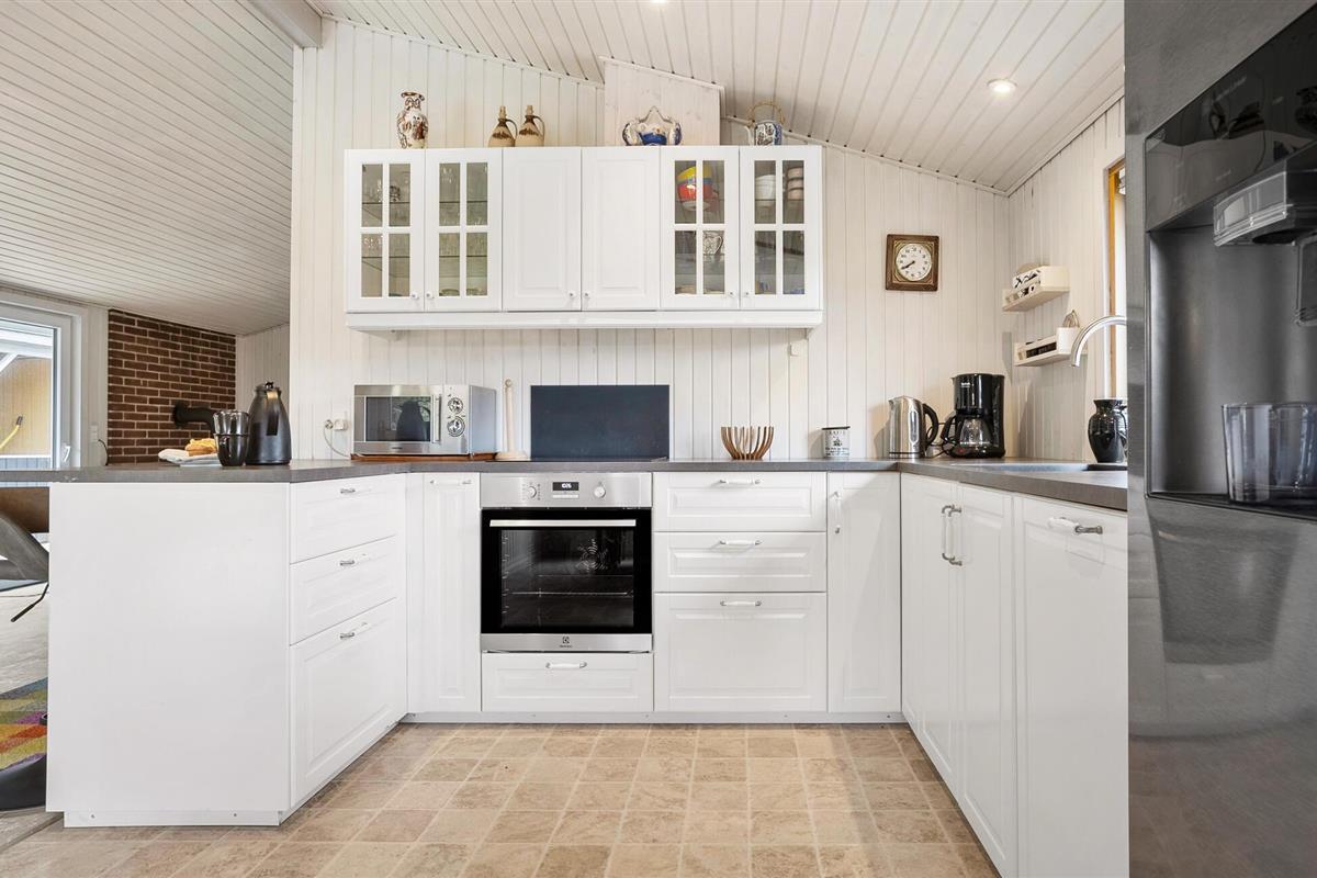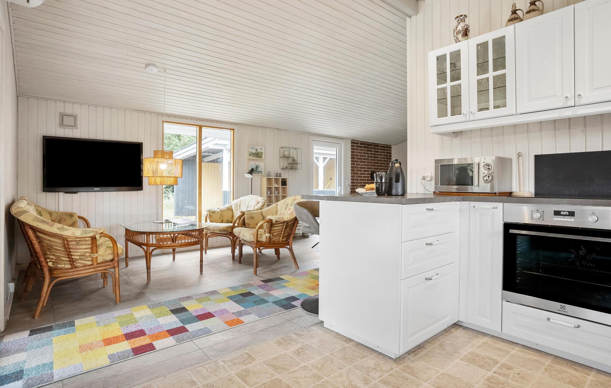 Dit gelijkvloerse vakantiehuis verwelkomt je met lichte en vriendelijke kamers, waar je altijd uitzicht hebt op de uitgestrekte tuin die je huis omringt. Bereid je favoriete gerechten in de open keuken, dineer in de uitnodigende eethoek en laat de houtkachel 's avonds voor extra gezelligheid zorgen terwijl je het jezelf gemakkelijk maakt met een film of een bordspel.