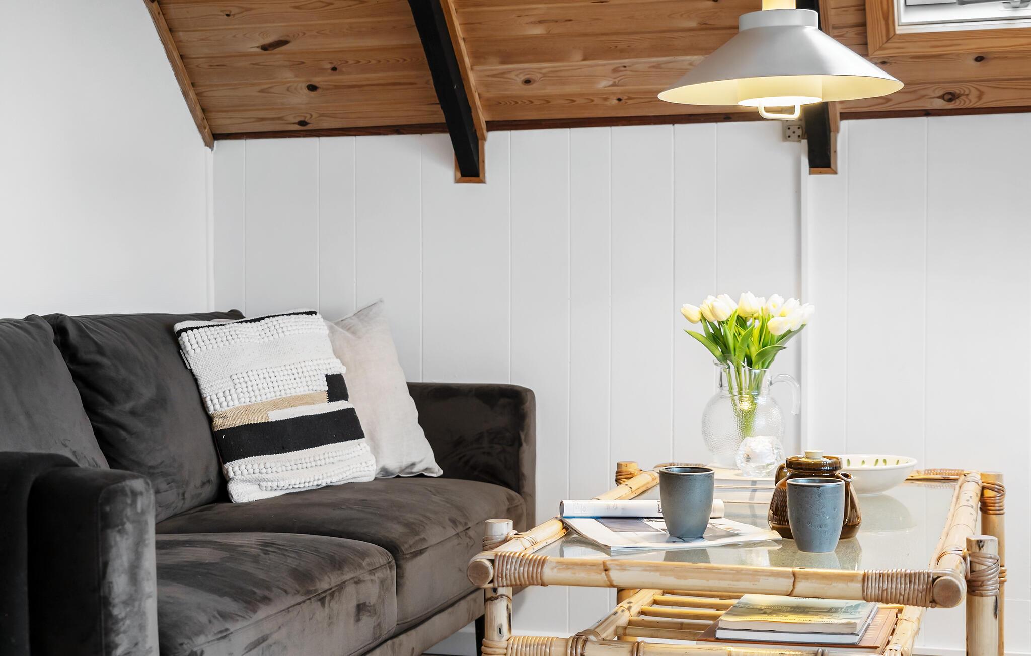 Neem buiten plaats op het tuinmeubilair en geniet van de rust van de open ruimte. Volg de ongerepte paden rond het huis of blijf hangen op het bankje aan de rand van het huis. De tegen de wind beschutte ruimte onder het opvallende A-dak nodigt je uit om buiten te ontbijten of van de avond te genieten.