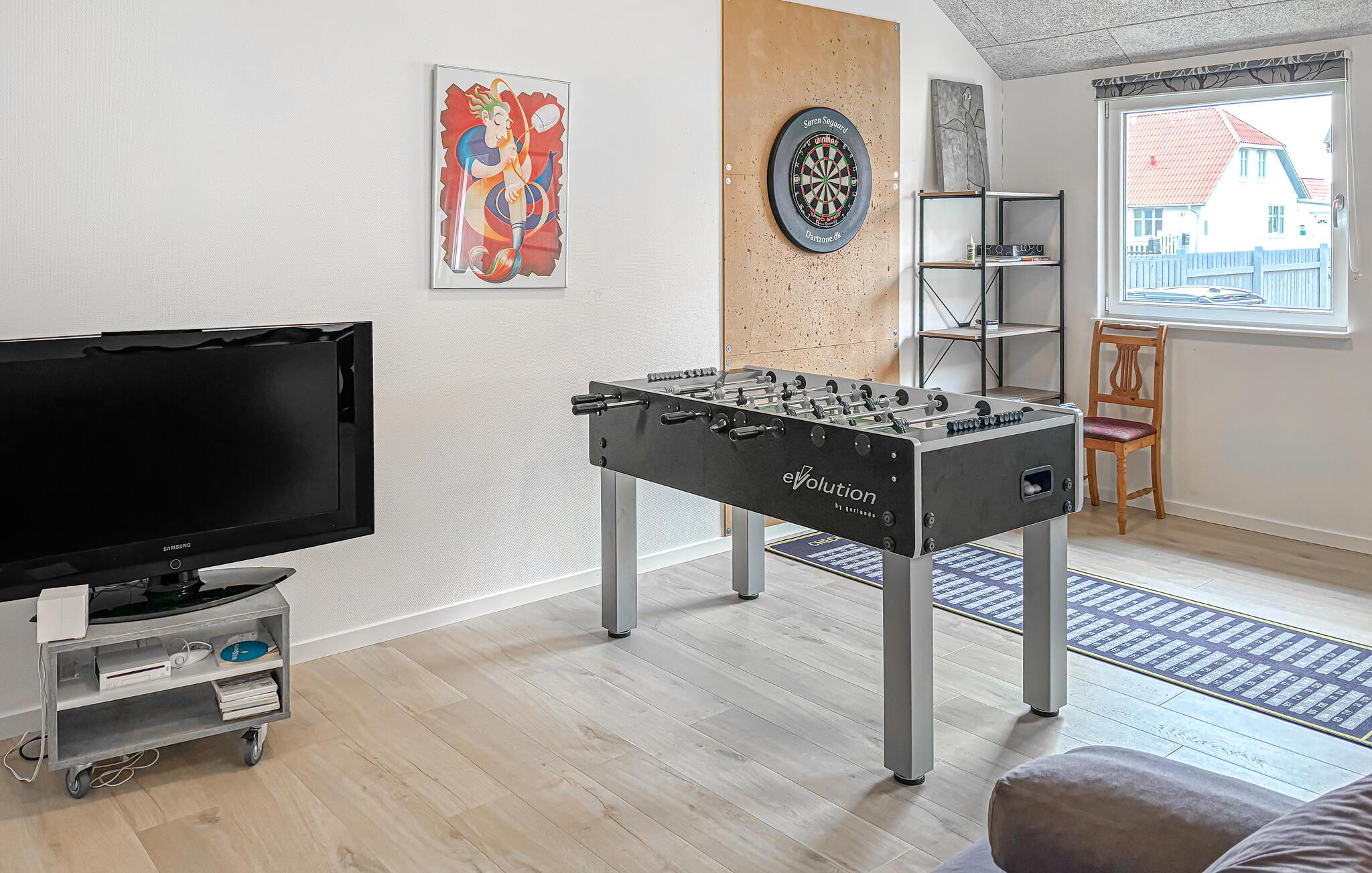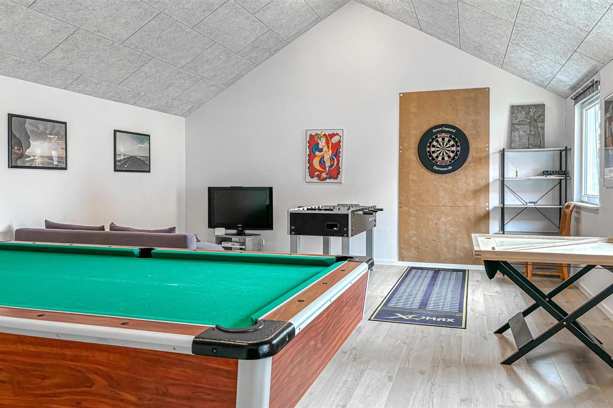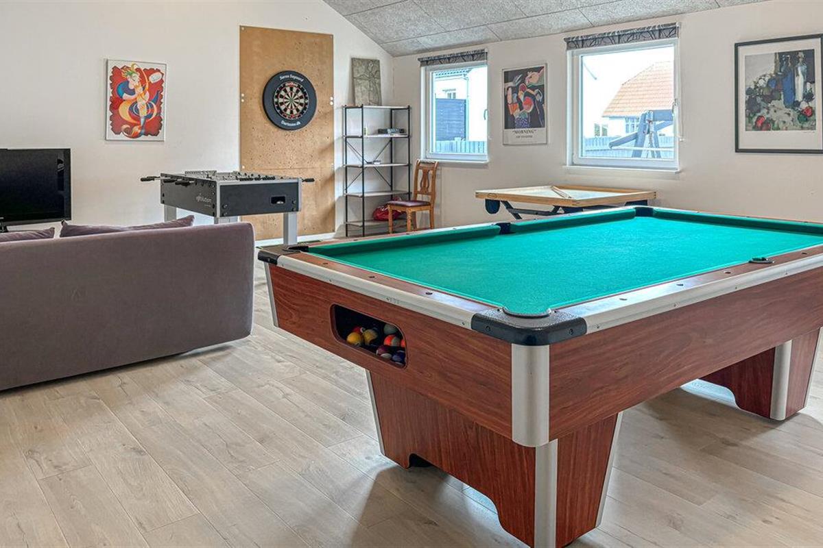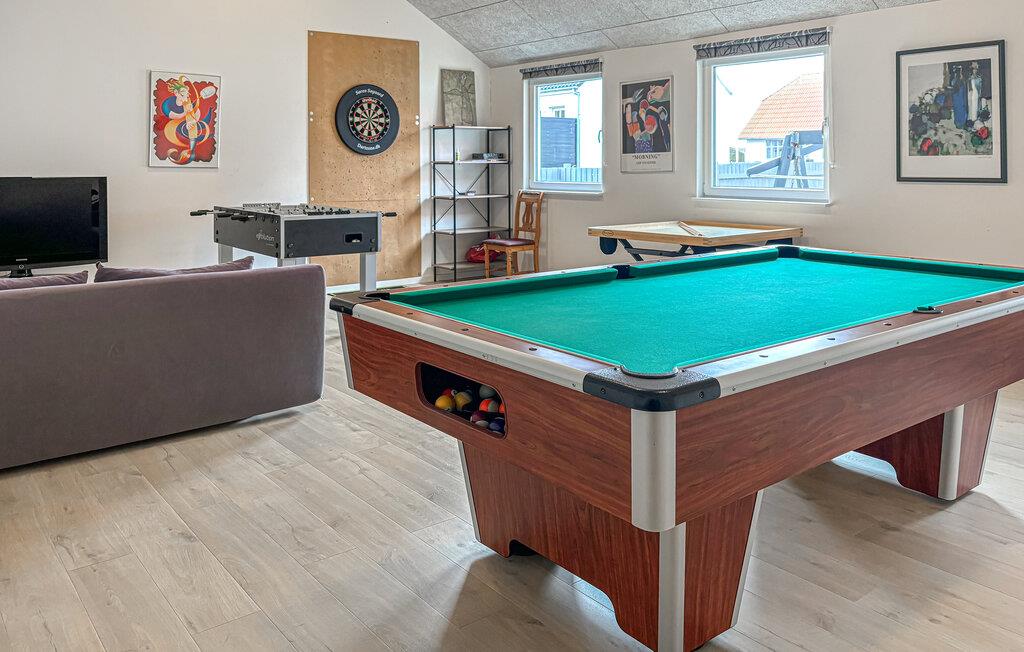Je ruime vakantiehuis met ruimte voor een grotere groep biedt je de ideale omgeving voor een ontspannen vakantie. Begin je dag met een ontbijt aan de lange eettafel terwijl je je plannen voor de komende dag bespreekt. Daarna nodigt de gezellige woonkamer met een heerlijke zithoek je uit om te ontspannen. De keuken biedt je alle mogelijkheden om heerlijke maaltijden te bereiden. Daag je medereizigers uit voor een potje pool of tafelvoetbal en bepaal de vakantiekampioen in deze leuke disciplines. Een bijzonder hoogtepunt is de whirlpool, die zorgt voor rustgevende ontspanning.