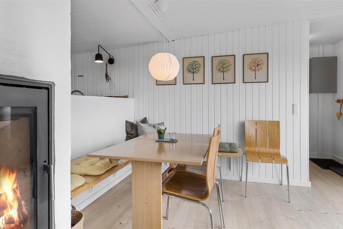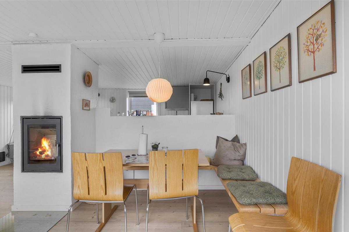 Zodra je aankomt bij Vorupør Strand, voel je de lichte, uitnodigende sfeer van je vakantiehuis. De smaakvolle inrichting harmonieert prachtig met de donkere houten gevel van het huis. In de open keuken kun je een heerlijk ontbijt bereiden, terwijl de eettafel de ideale plek is om tijdens het eten samen plannen te maken voor de dag. Het terras is ook een heerlijke plek om te eten of te genieten van een kopje thee en de rust van je vakantie. De gezellige woonkamer nodigt je uit om ontspannende uren door te brengen met een comfortabele bank en een houtkachel die gezellige warmte verspreidt.