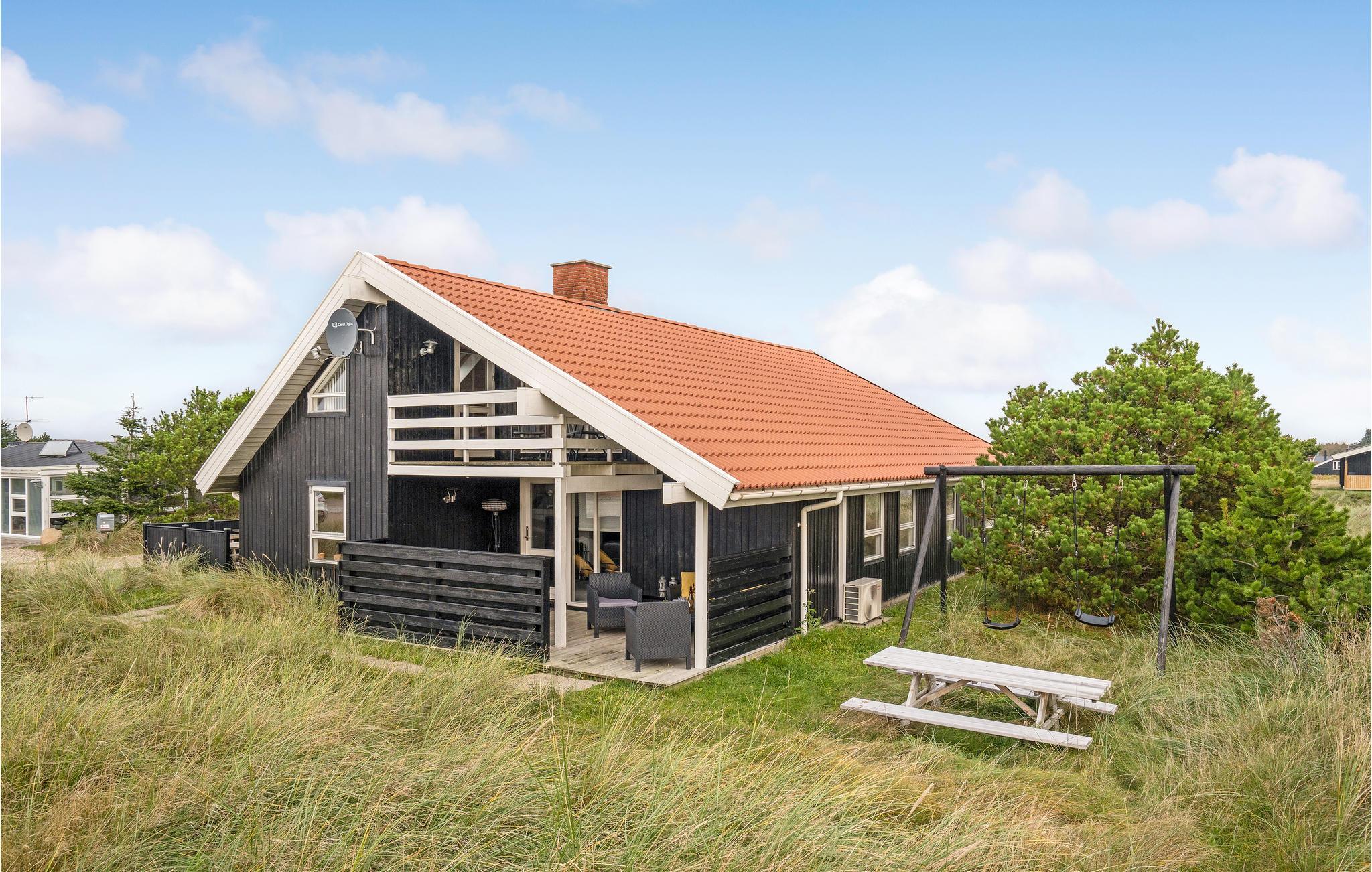 Klassiek Deens vakantiehuis met bubbelbad, uitzicht op de Noordzee en speelruimte voor kinderen.