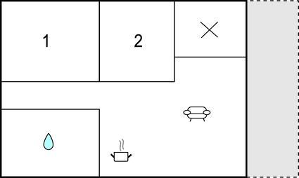 Slaapkamer (nr. 2) - 2 Slaapplaatsen. (2-persoonsbed(den)). 4 Slaapplaatsen. (Stapelbed).
