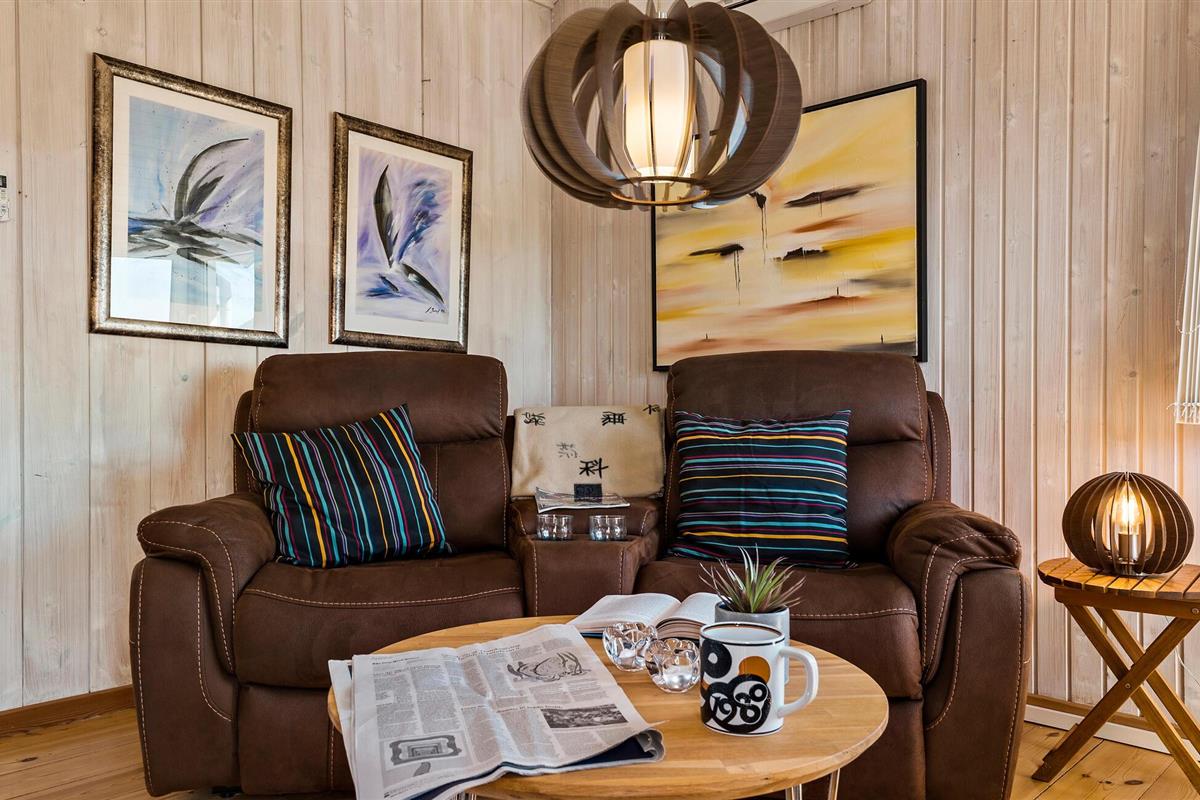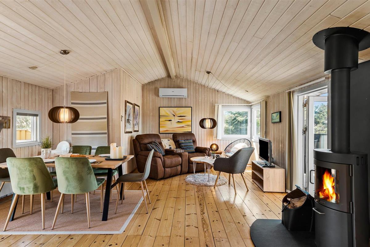 Als je aankomt in Vorupør, zal de lichte en vriendelijke sfeer van je vakantiehuis je meteen opvallen. De gezellige inrichting harmonieert perfect met de houten gevel buiten. Bereid een heerlijk ontbijt in de open keuken. Aan de eettafel kun je de plannen voor de komende dag bespreken tijdens een familiemaaltijd. Het terras biedt ook de mogelijkheid om samen te dineren of te genieten van de vrije vakantietijd met een kopje thee. De woonkamer is gezellig ingericht en nodigt je uit om te ontspannen. Maak het jezelf gemakkelijk in de knusse fauteuils en geniet van de zachte warmte van de open haard, die een gezellige sfeer creëert.