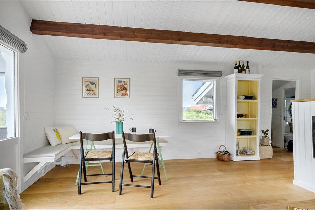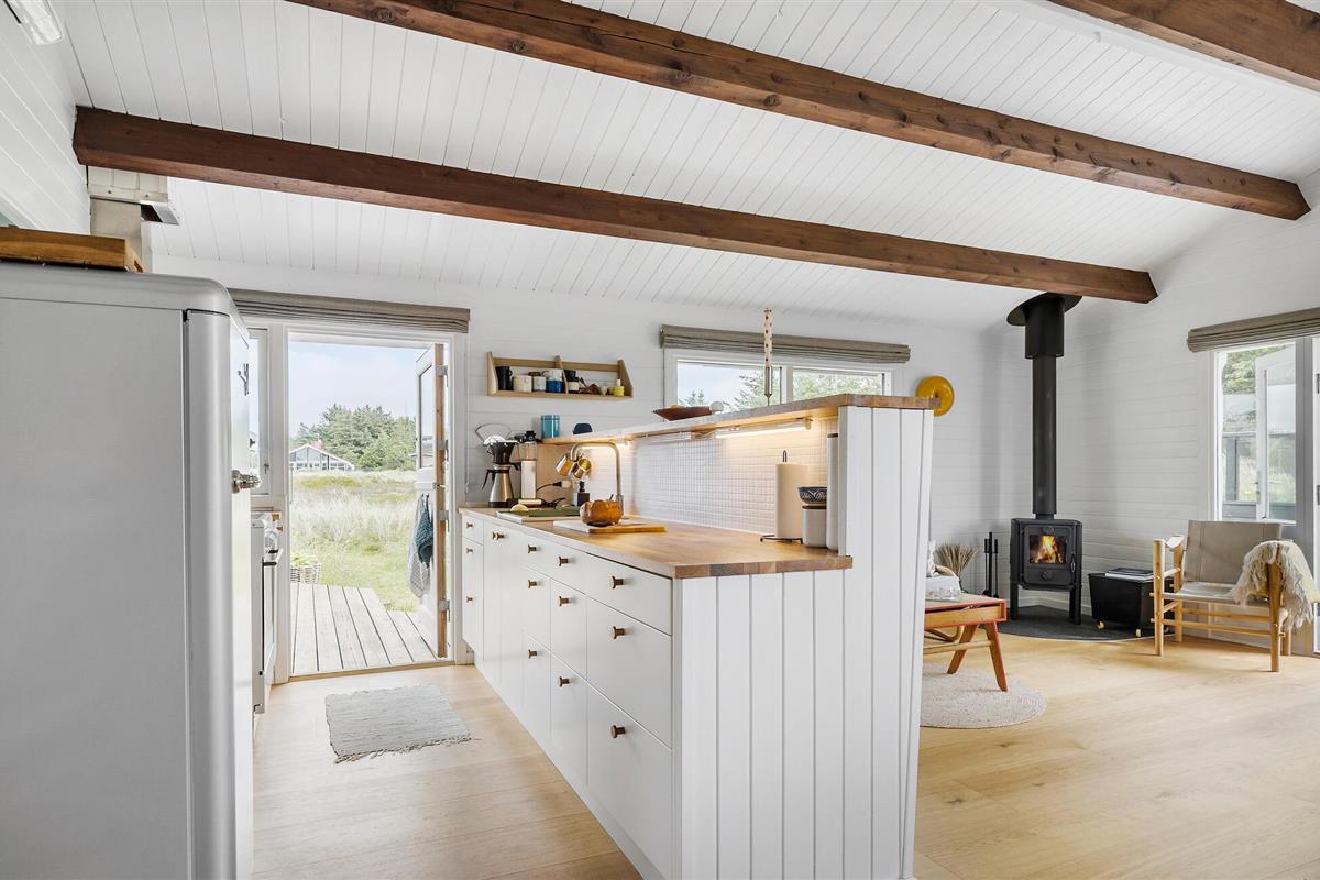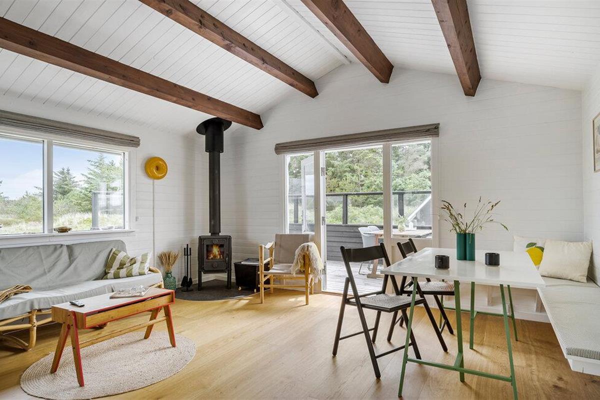 Dit charmante huis heeft een unieke locatie midden in het ongerepte duinlandschap van Thy National Park. De liefdevol ontworpen interieurs bieden een harmonieuze mix van Scandinavisch design en een gezellige sfeer. De lichte woonkamer met houtkachel nodigt uit tot ontspannen avonden. Kijk een film of speel bordspellen aan de eettafel.