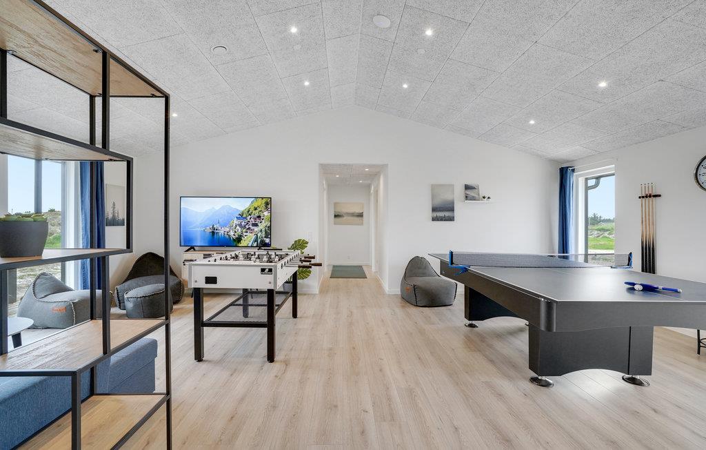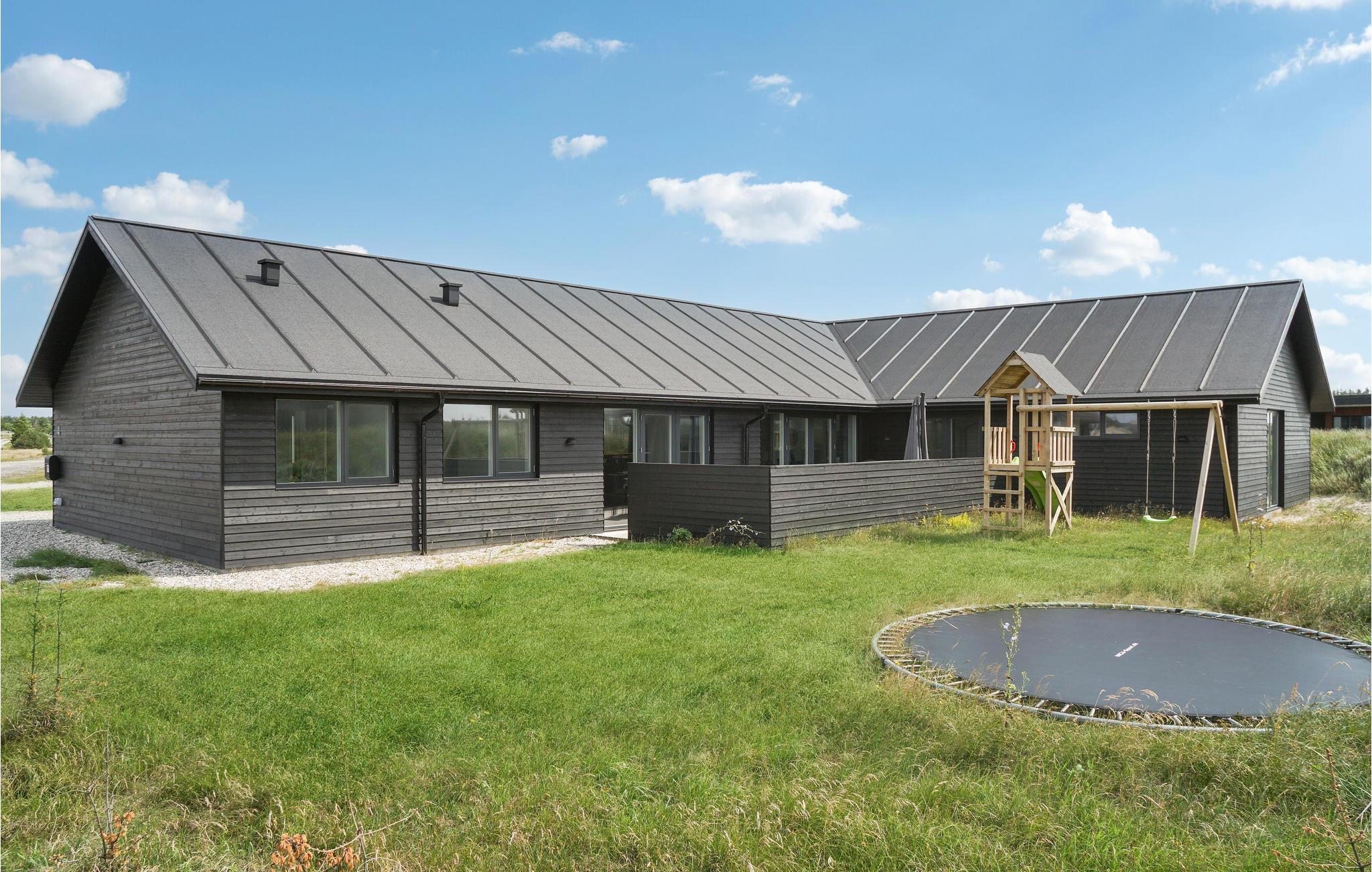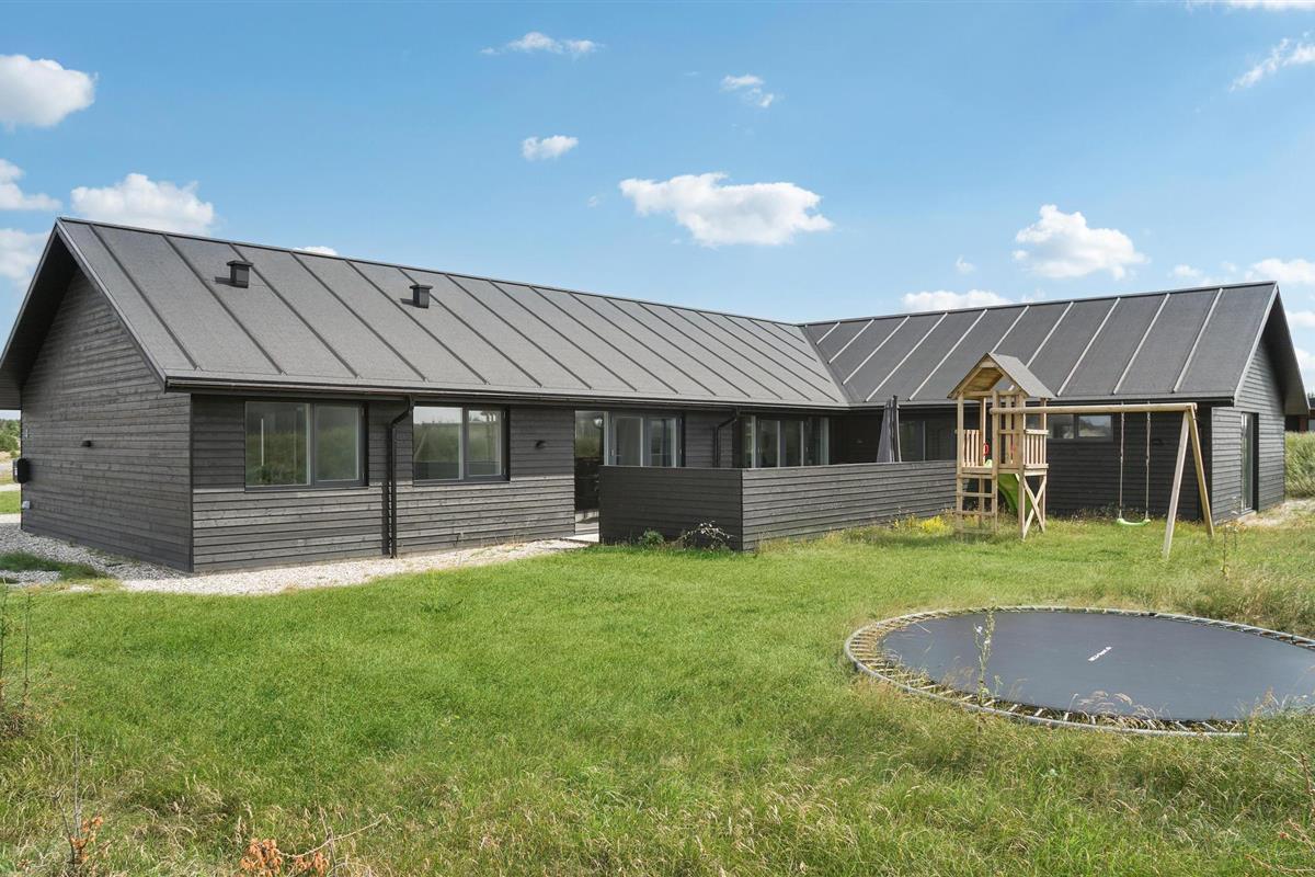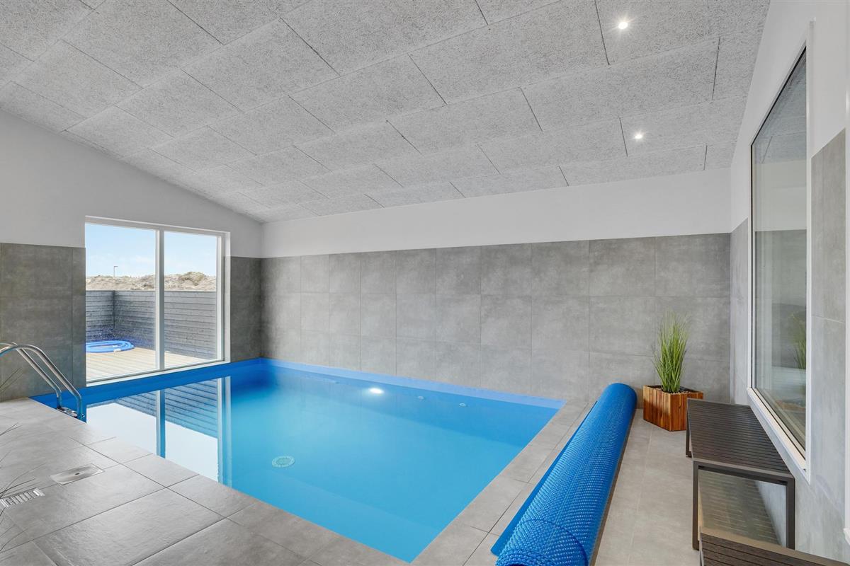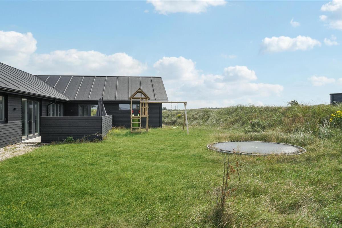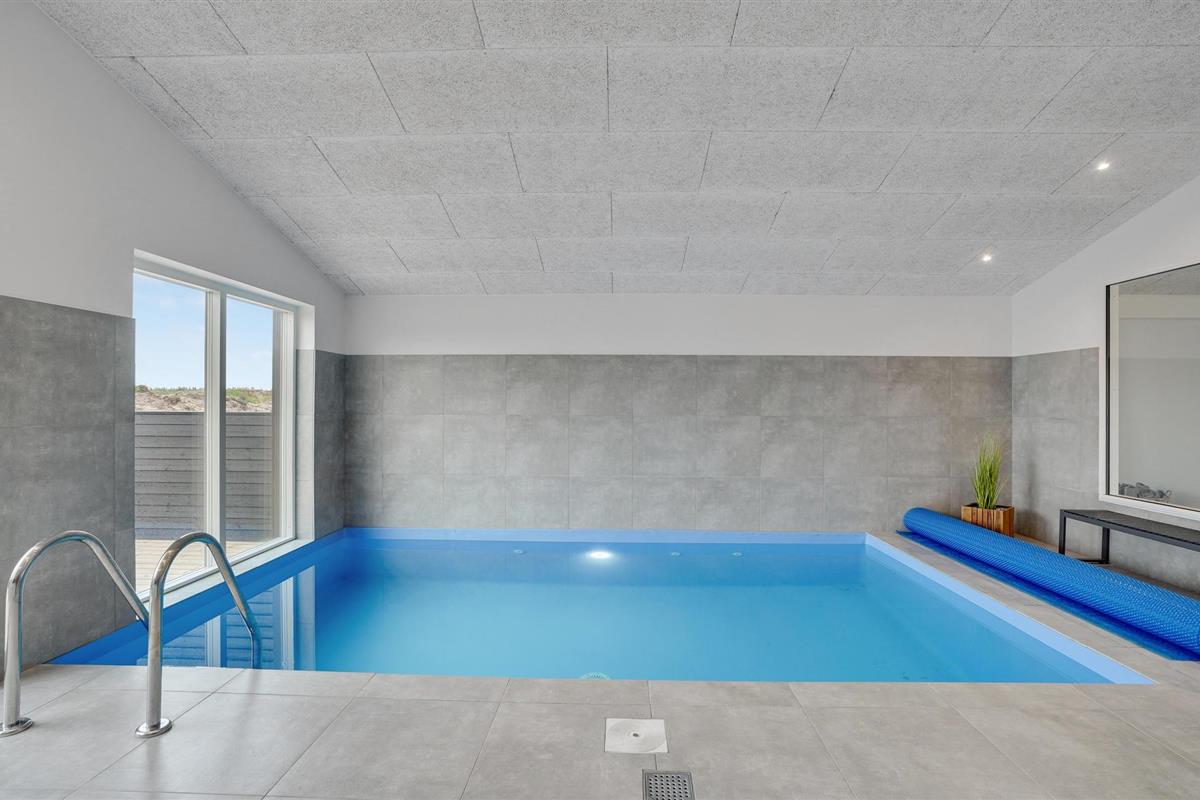 Geniet van een luxe vakantiehuis in Vorupør met privé zwembad, sauna, activiteitenruimte en natuur rondom.