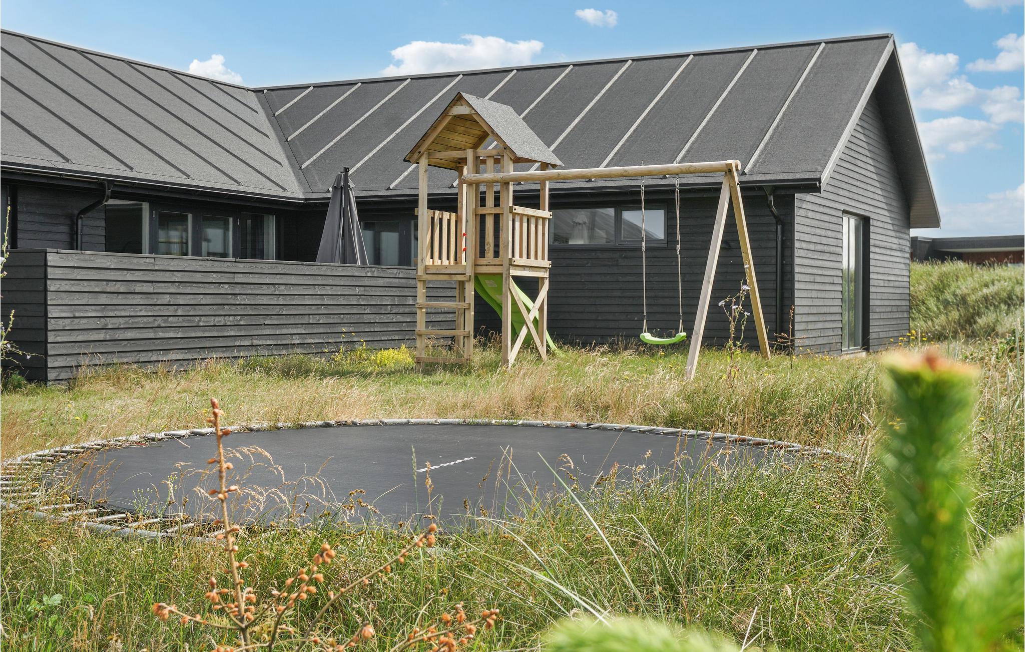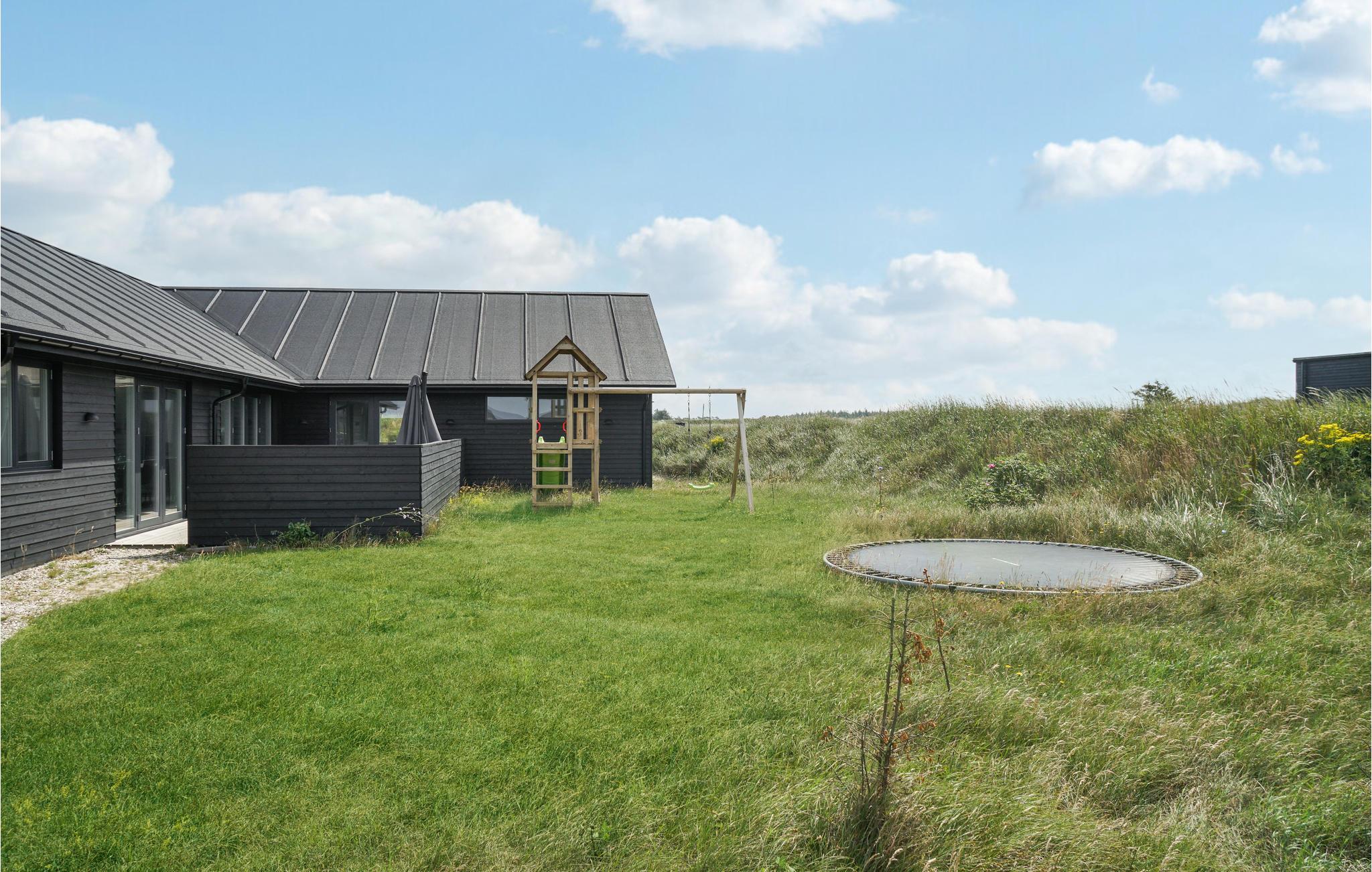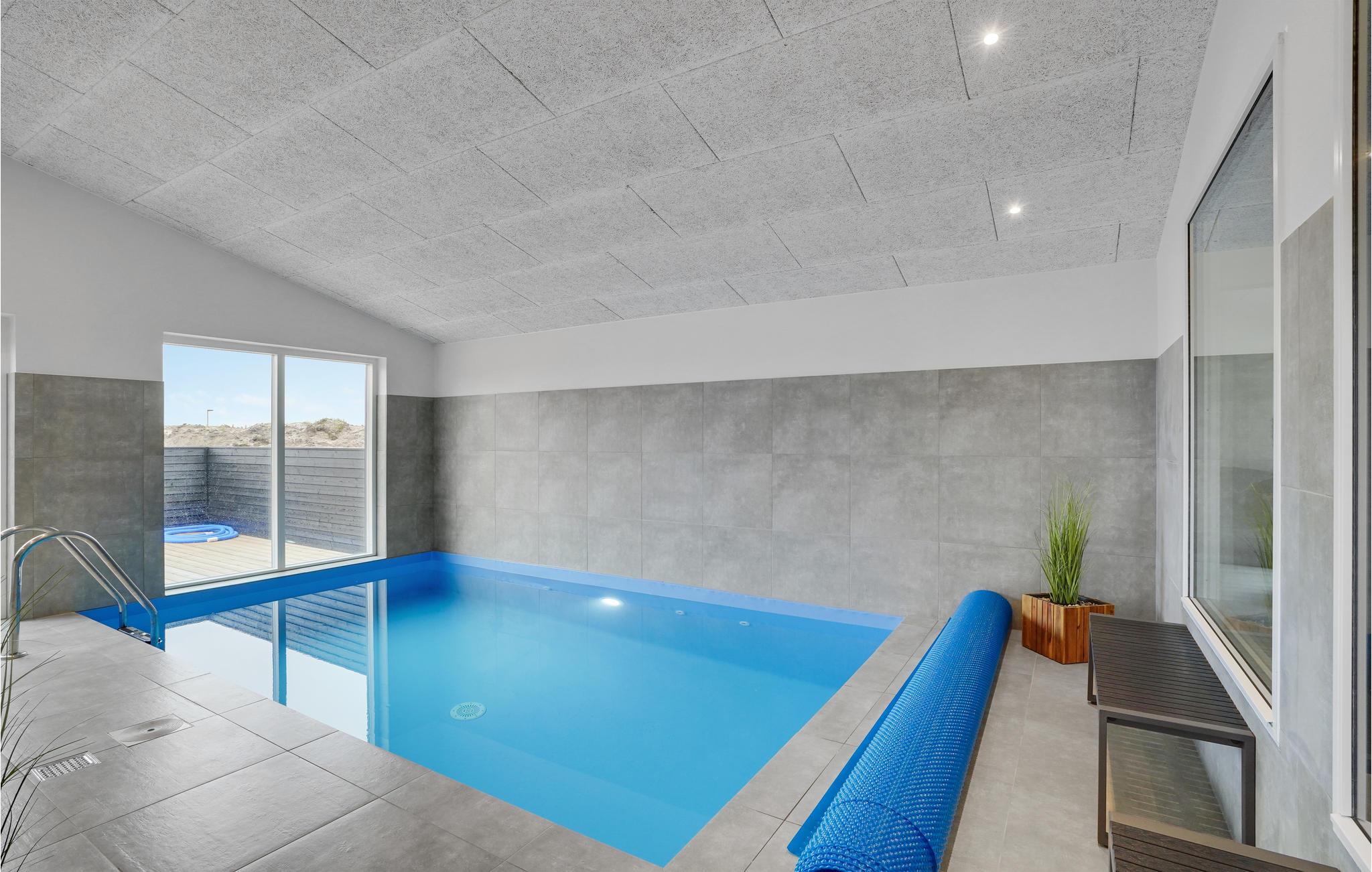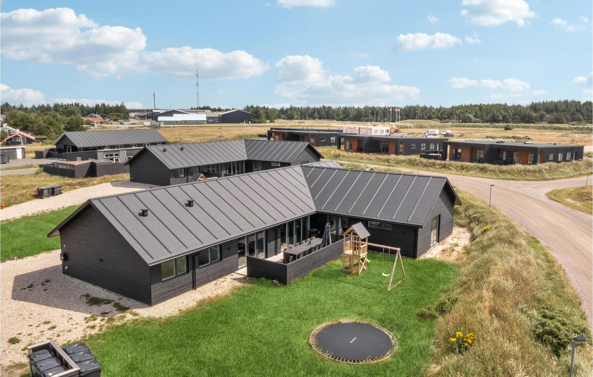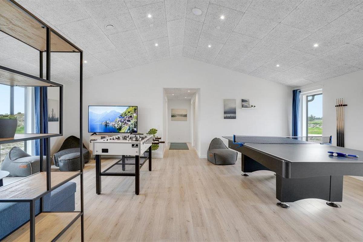 Geniet van een luxe vakantiehuis in Vorupør met privé zwembad, sauna, activiteitenruimte en natuur rondom.