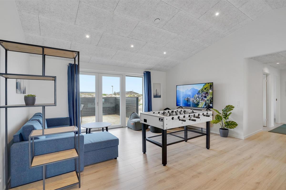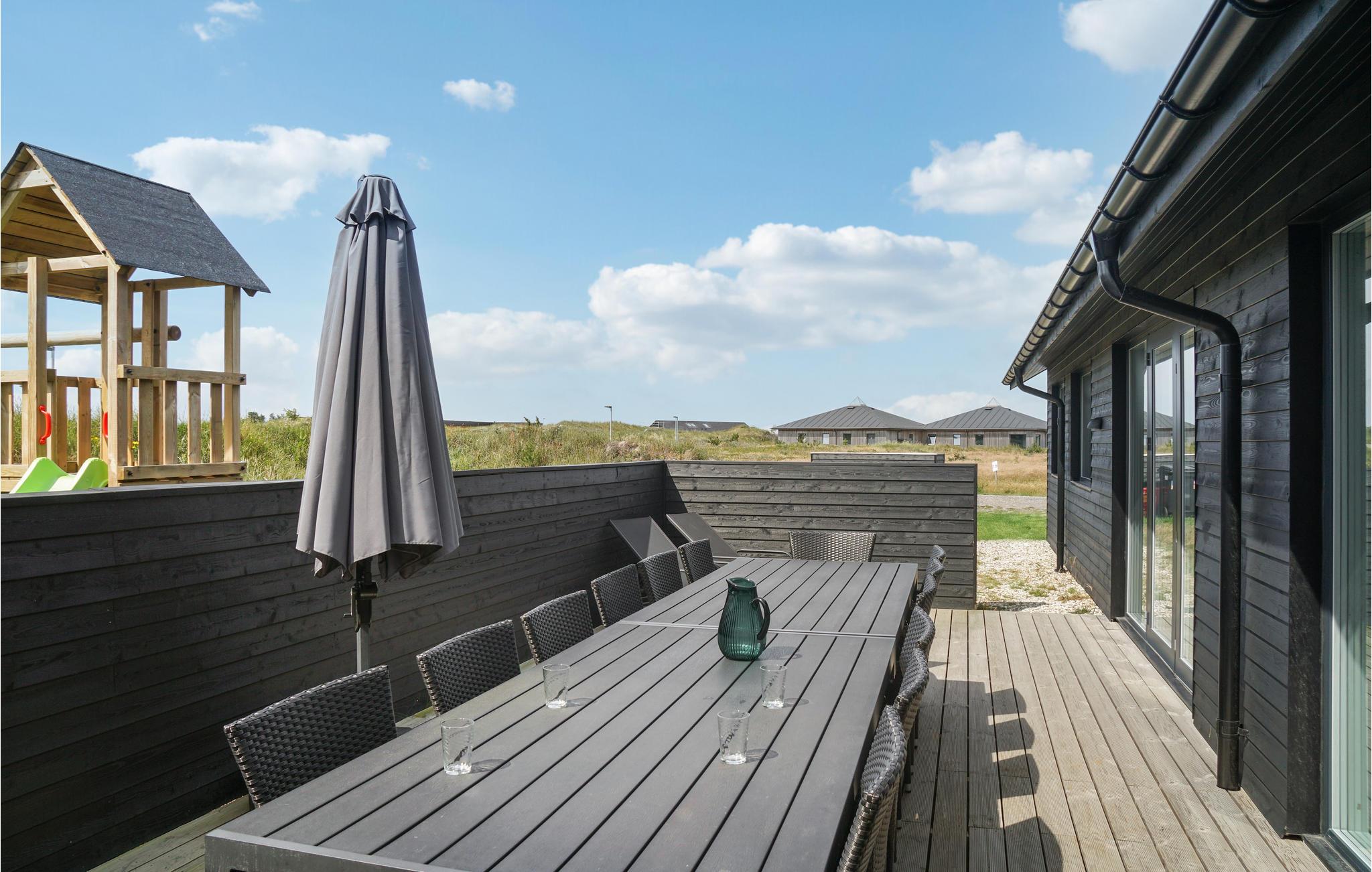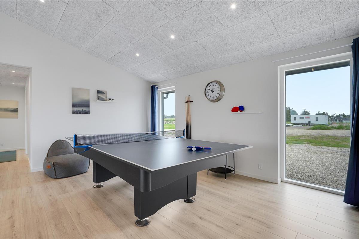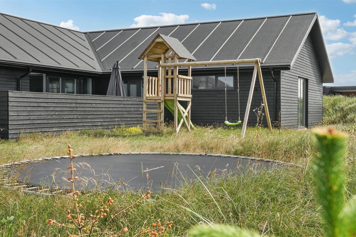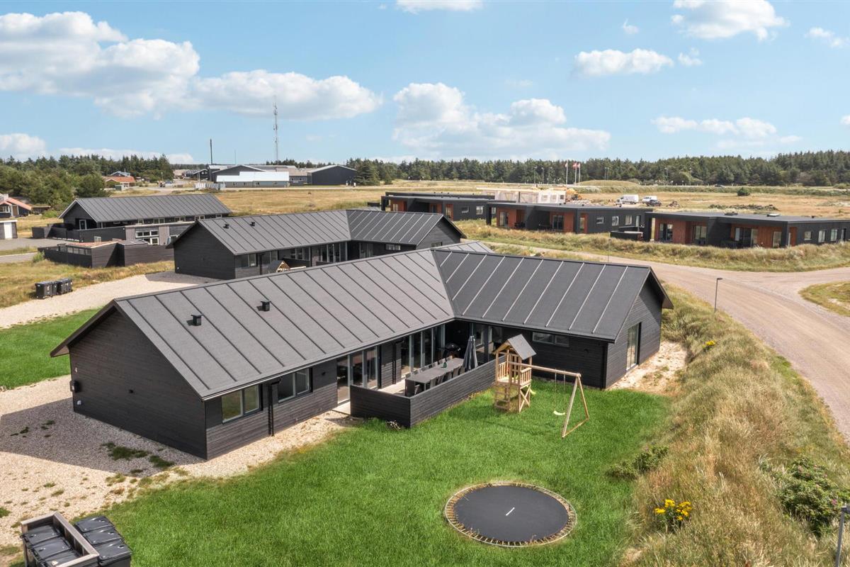 Geniet van een luxe vakantiehuis in Vorupør met privé zwembad, sauna, activiteitenruimte en natuur rondom.