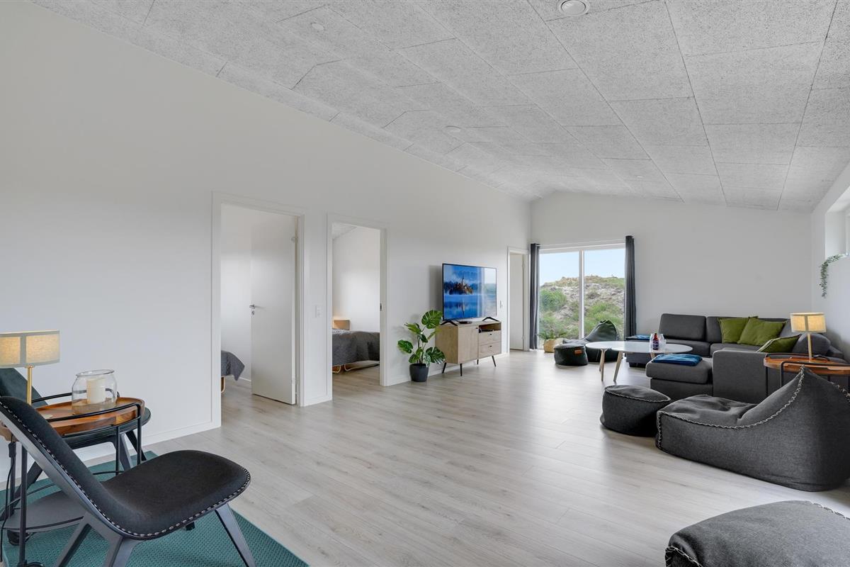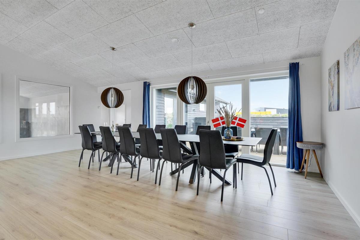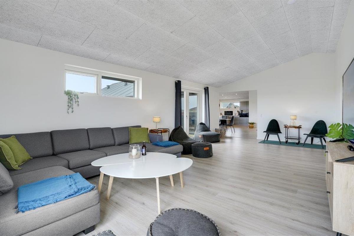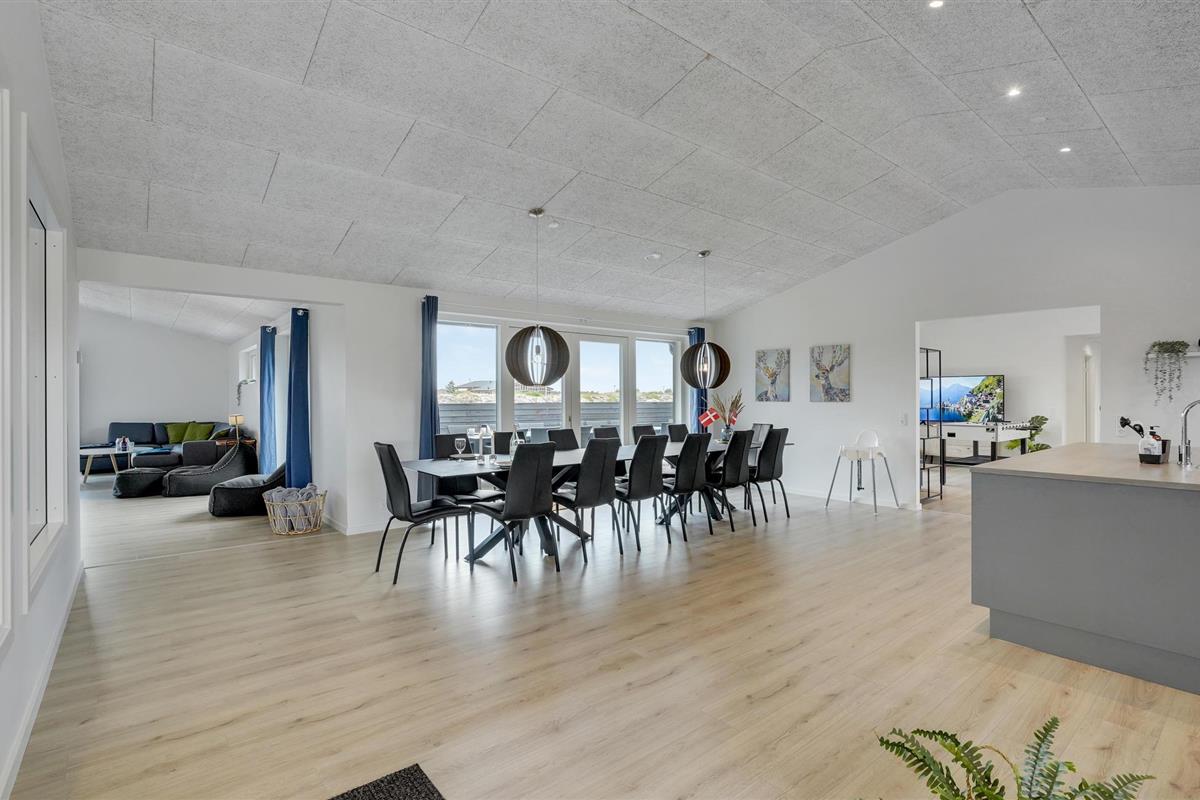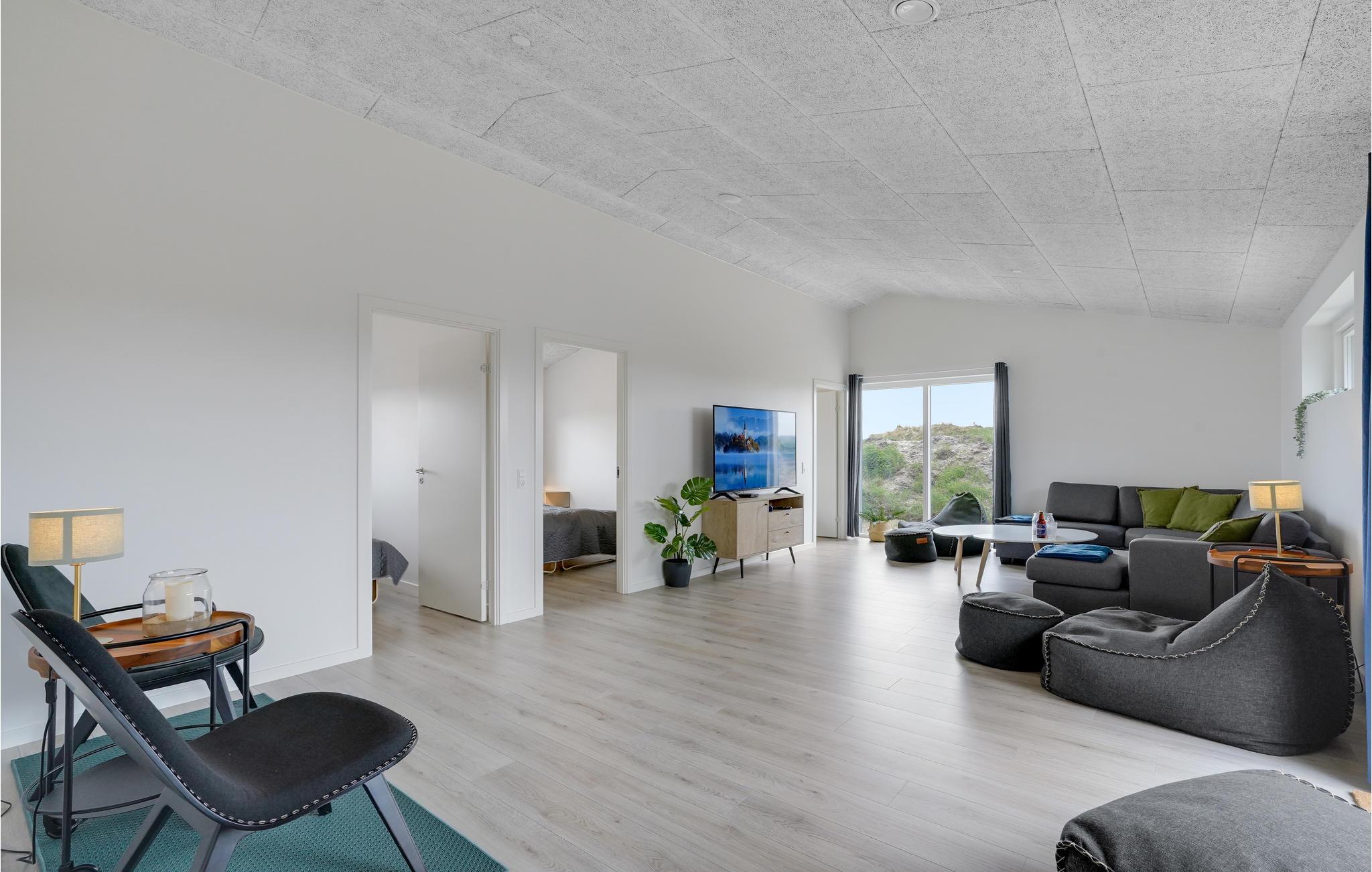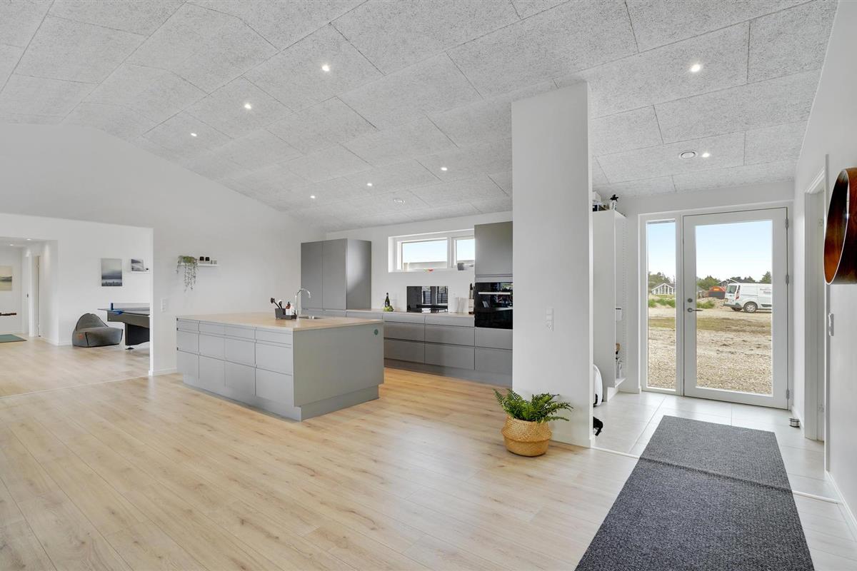 Geniet van een luxe vakantiehuis in Vorupør met privé zwembad, sauna, activiteitenruimte en natuur rondom.