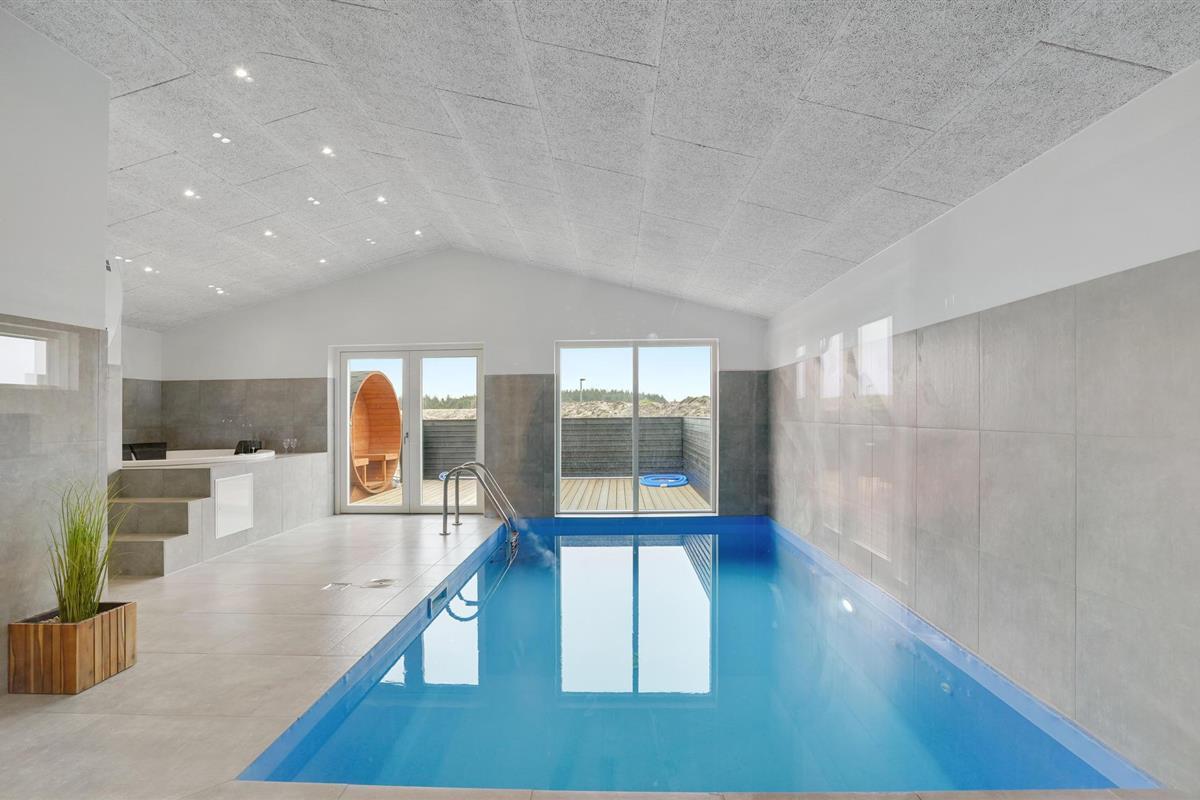 Comfortabel en ruim vakantiehuis met privé binnenzwembad, sauna en activiteitenruimte in Vorupør, Denemarken.