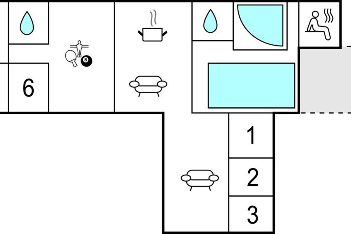 Welkom in dit vakantiehuis, dat met zijn goede voorzieningen niets te wensen overlaat. Het hart van het huis is de moderne keuken met lange eettafel, waar u gezellige avonden kunt doorbrengen met eten met familie of vrienden. De woonkamer met een grote zithoek nodigt uit tot ontspanning voor de tv. Dankzij de activiteitenruimte met onder andere biljart en tafeltennis hoeft u zich gegarandeerd niet te vervelen.