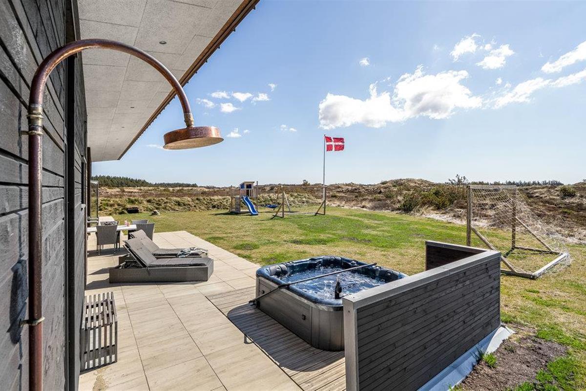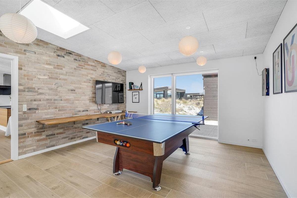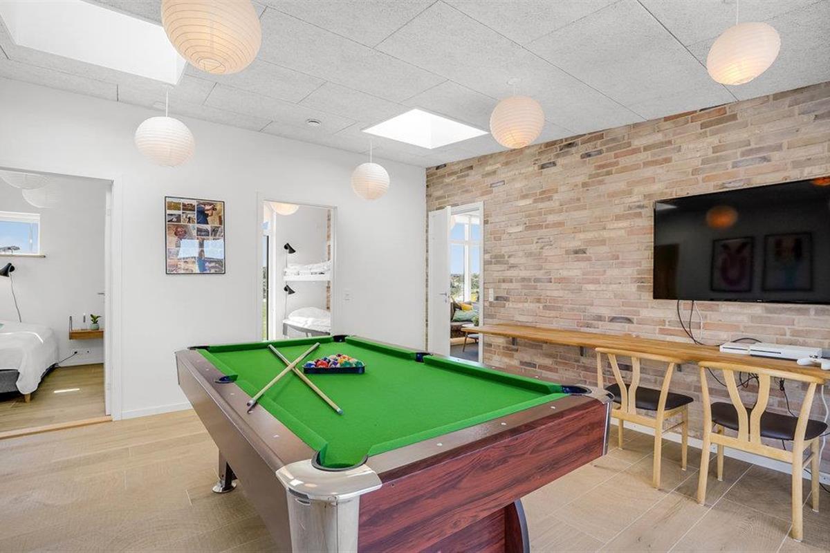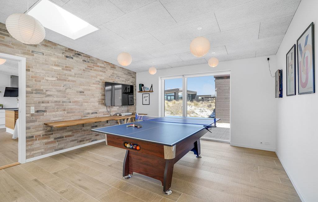 Kom met uw vrienden, het hele gezin of familievrienden naar Vorupør, waar u dit geweldige vakantiehuis vindt. Het zal u hier aan niets ontbreken. De complete inrichting zorgt voor het hoogste comfort. Dineer samen aan de grote tafel naast de keuken of vermaak u in de recreatieruimtes met tafeltennis en biljart. De kinderen kunnen buiten in de tuin spelen op de speeltoestellen, terwijl de volwassenen ontspannen en zonnebaden op het terras. Na bewogen dagen kunt u ontspannen in de eigen sauna of in de whirlpool buiten en de dag comfortabel afsluiten met een glas wijn of een lekker biertje.