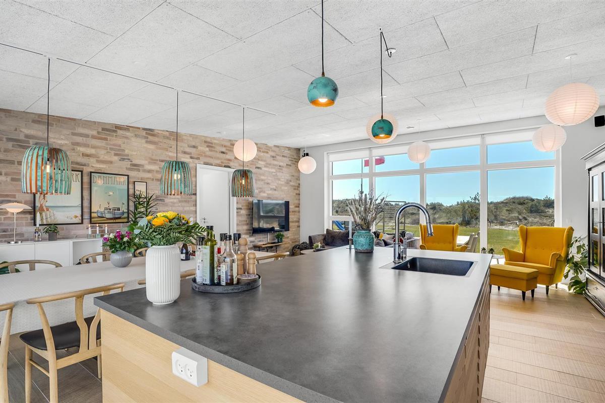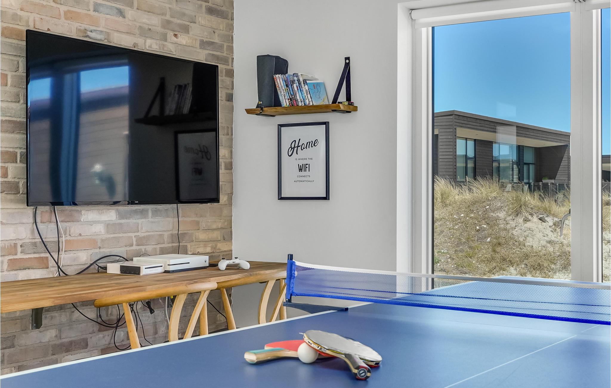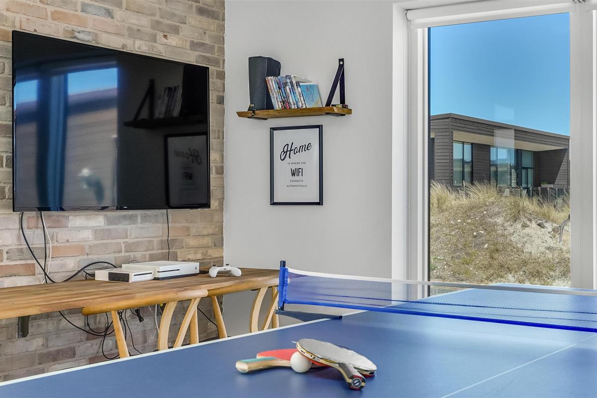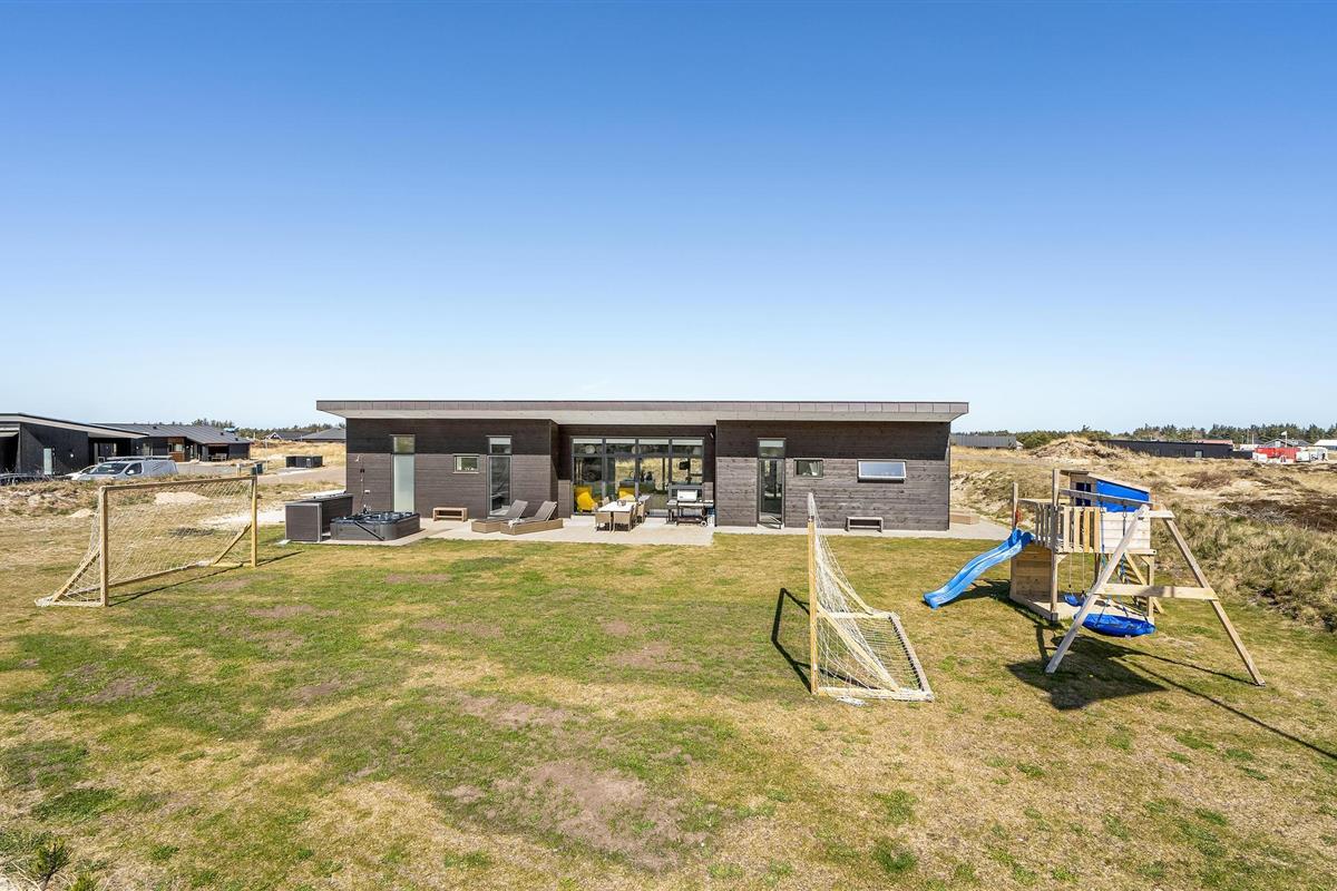 Kom met uw vrienden, het hele gezin of familievrienden naar Vorupør, waar u dit geweldige vakantiehuis vindt. Het zal u hier aan niets ontbreken. De complete inrichting zorgt voor het hoogste comfort. Dineer samen aan de grote tafel naast de keuken of vermaak u in de recreatieruimtes met tafeltennis en biljart. De kinderen kunnen buiten in de tuin spelen op de speeltoestellen, terwijl de volwassenen ontspannen en zonnebaden op het terras. Na bewogen dagen kunt u ontspannen in de eigen sauna of in de whirlpool buiten en de dag comfortabel afsluiten met een glas wijn of een lekker biertje.