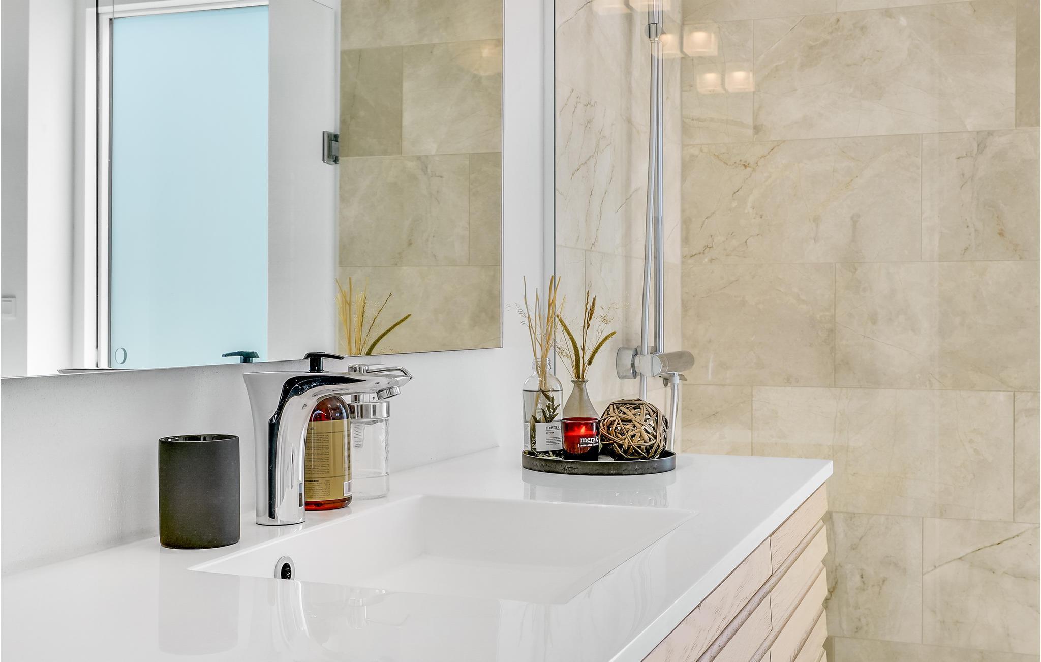 Badkamer (nr. 1) - Toilet: warm en koud water. Douche