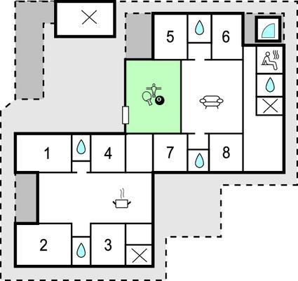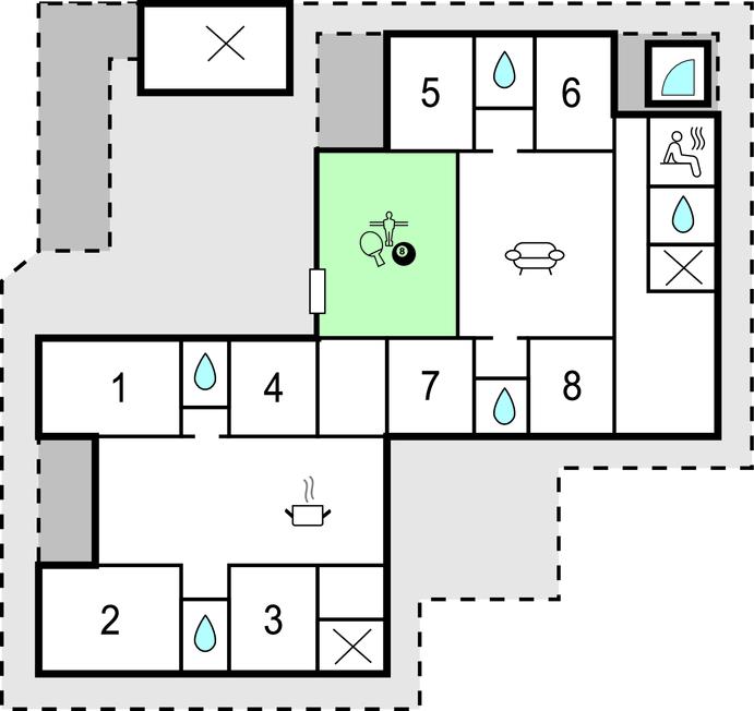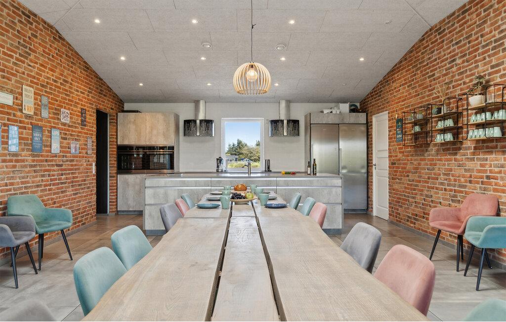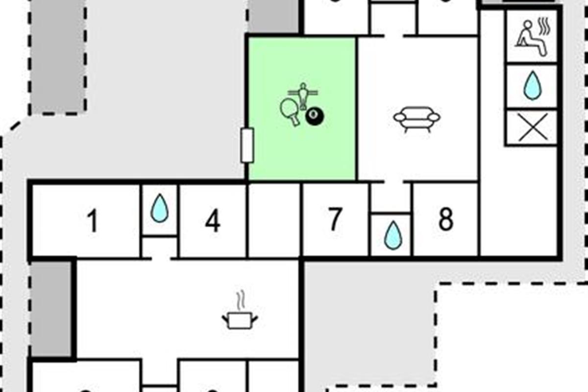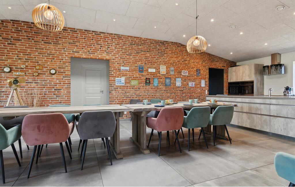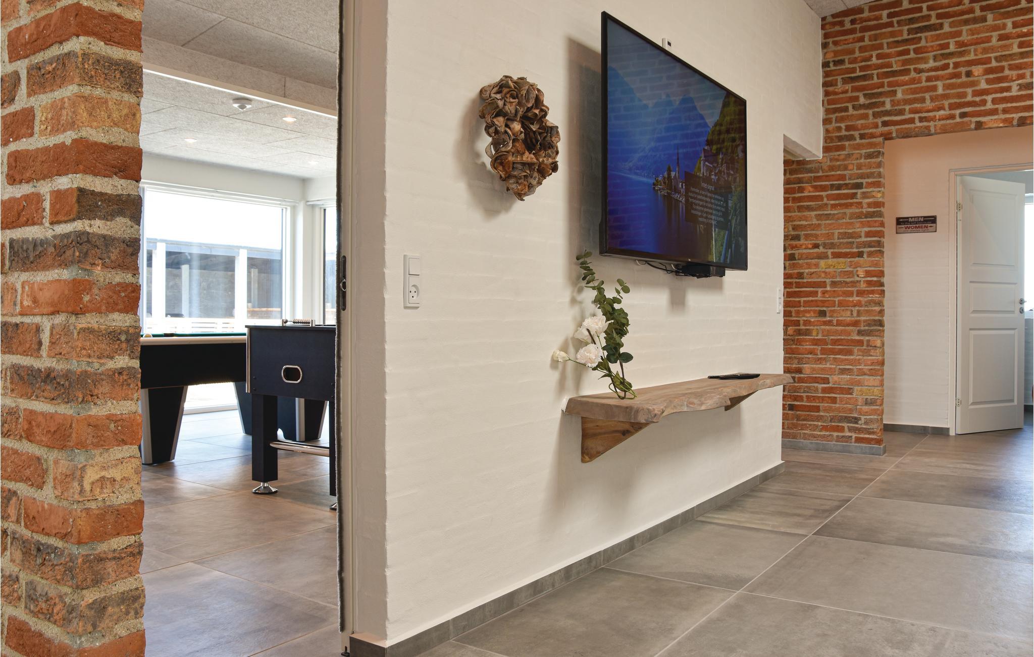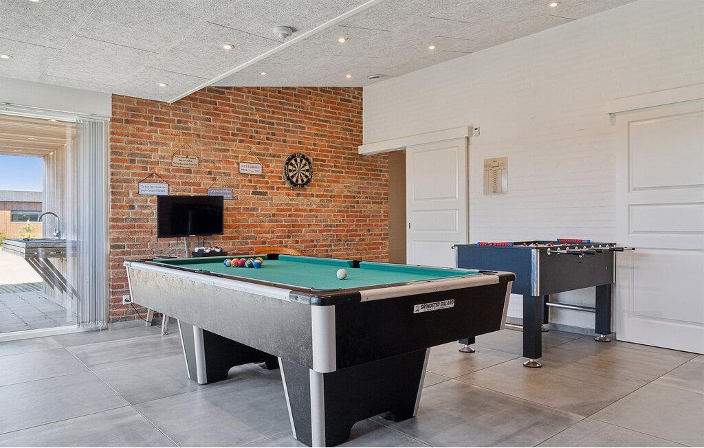 Dit luxe vakantiehuis met privézwembad en activiteitenruimte ligt op een rustige locatie bij Vorupør, op loopafstand van de bruisende Noordzee. Als u op zoek bent naar een domicilie dat een actieve vakantie voor veel mensen belooft, dan is dit de plek voor u. Dit huis biedt plaats aan 18 personen en de kamers zijn verdeeld in vier secties. Elk deel heeft een kleine hal, twee slaapkamers en een badkamer met douche.