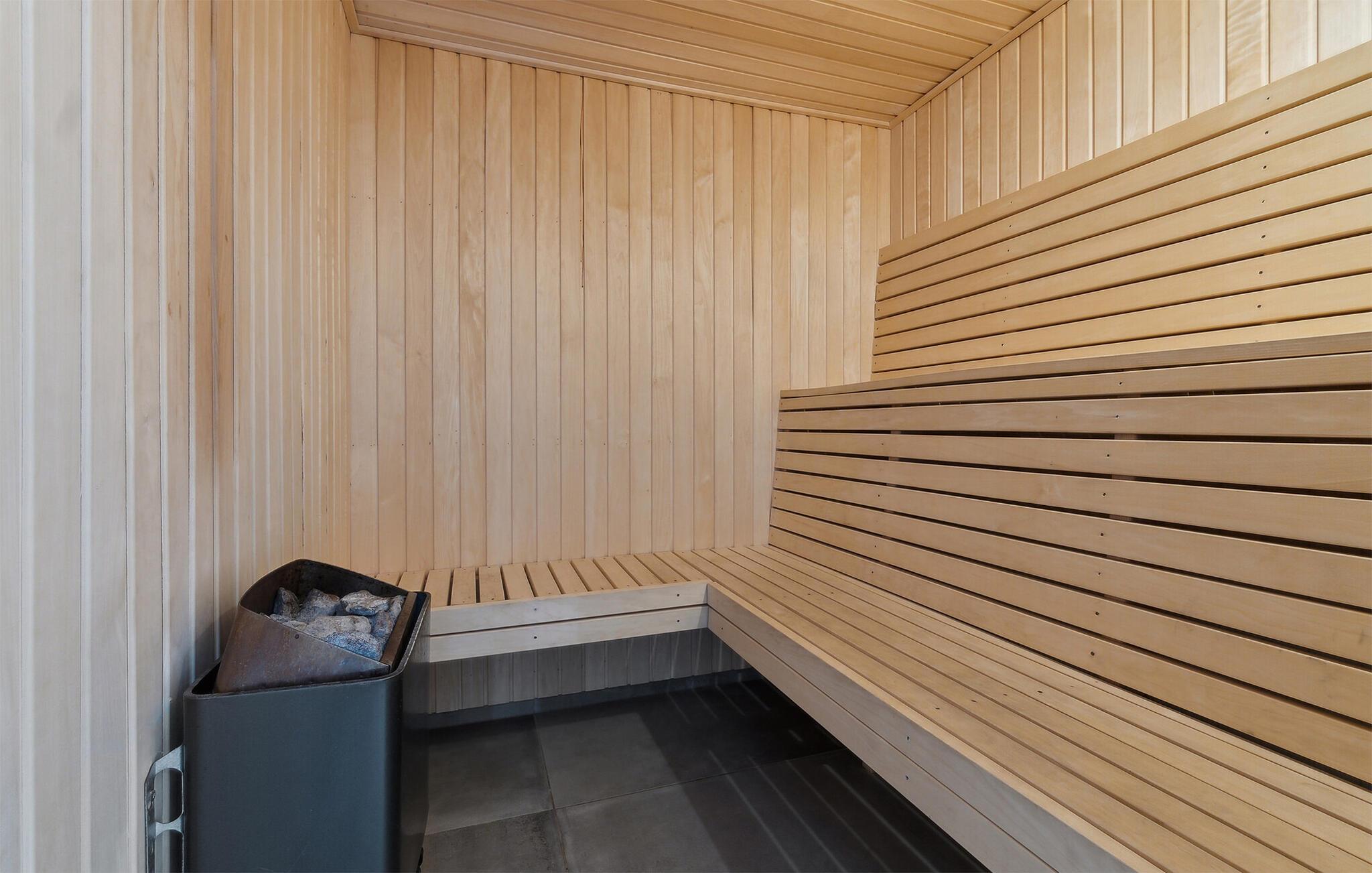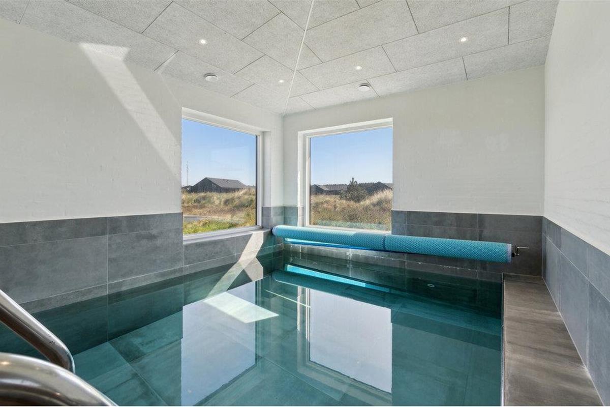 Luxe vakantiehuis bij Vorupør met privézwembad, sauna en activiteitenruimte, ideaal voor een actieve en ontspannen vakantie.