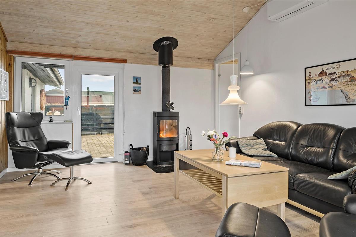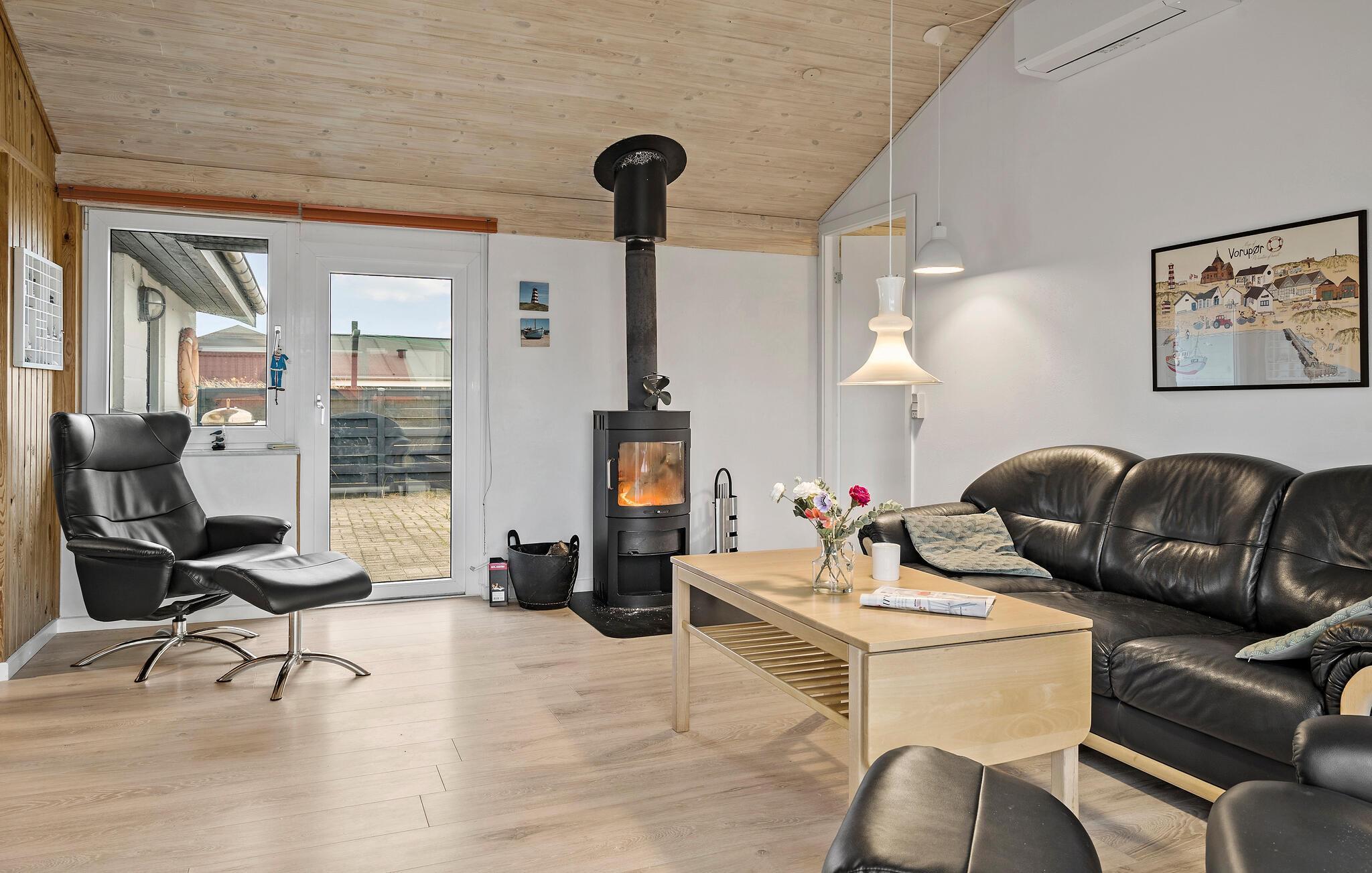 Dit klassieke vakantiehuis op Vorupør Strand nodigt je uit om ontspannen dagen door te brengen met zijn gezellige inrichting en knapperende houtkachel. De lichte kamers creëren een vriendelijke sfeer waarin je je meteen thuis zult voelen. Een hoogtepunt is het beschutte terras, dat perfect is ingebed in de duinen, waar u kunt genieten van de frisse zeelucht, ontspannen in de zon of de dag afsluiten met een barbecue. Een ideale plek om er even tussenuit te zijn en te genieten van de natuur.