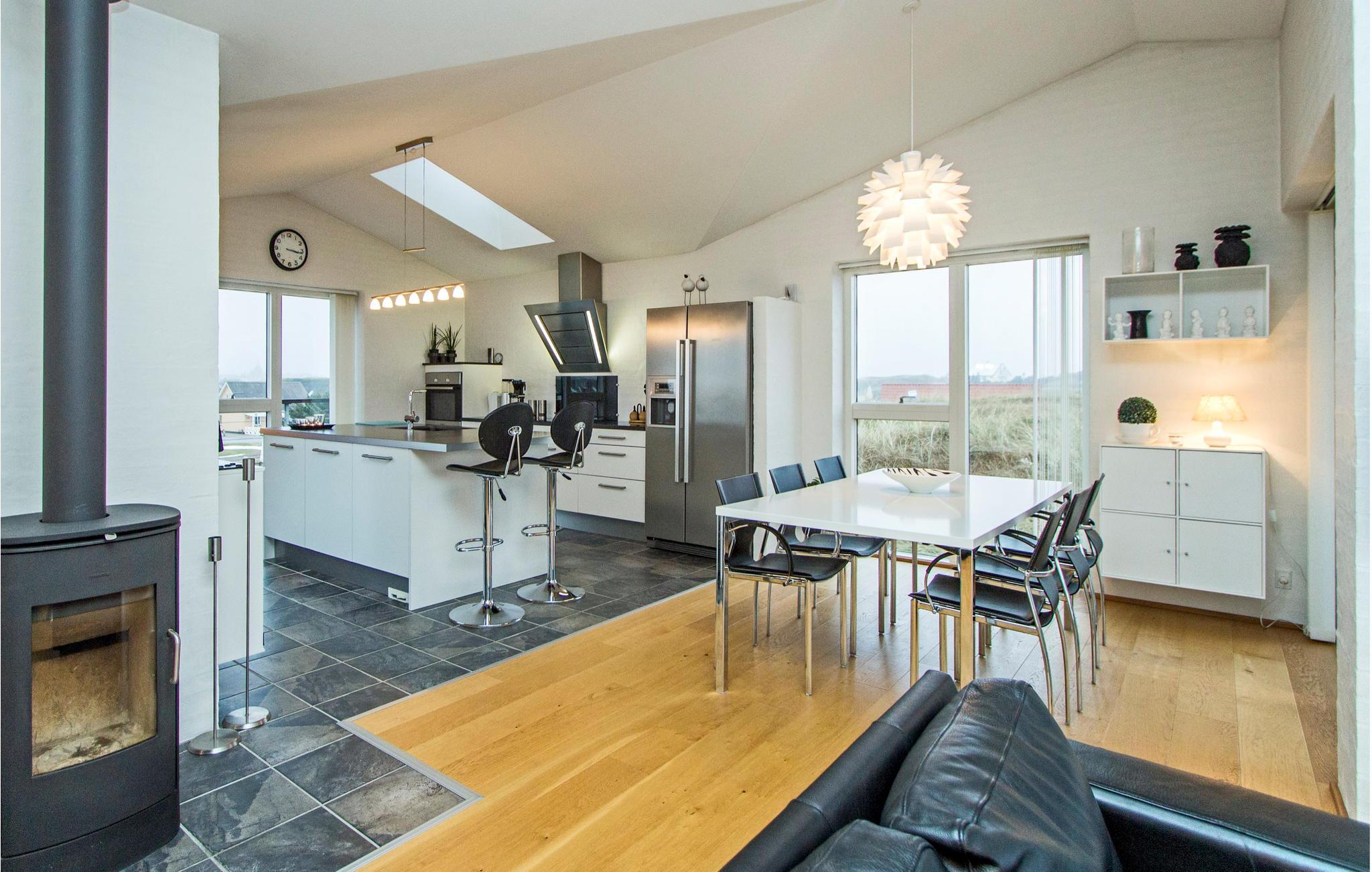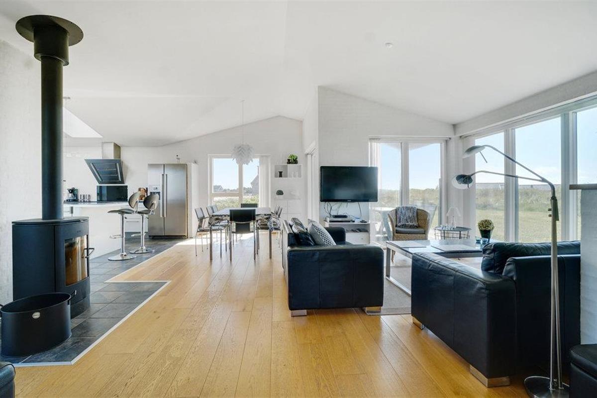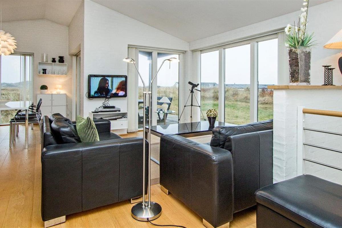 De moderne inrichting met designelementen zorgt voor een stijlvolle feel-good sfeer in de lichte kamers van dit huis, dat u verwelkomt in de buurt van het strand. Geniet samen van de maaltijden met een prachtig uitzicht op de duinen en ontspan met uw geliefden op de bank in de beste panoramische positie, terwijl het uitzicht over het uitgestrekte landschap dwaalt. Maak het uzelf 's avonds gemakkelijk, kijk een film of praat tot laat in de avond bij de gezellige knetterende open haard.