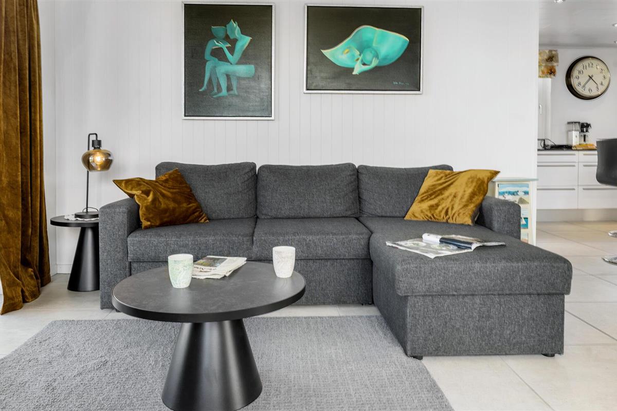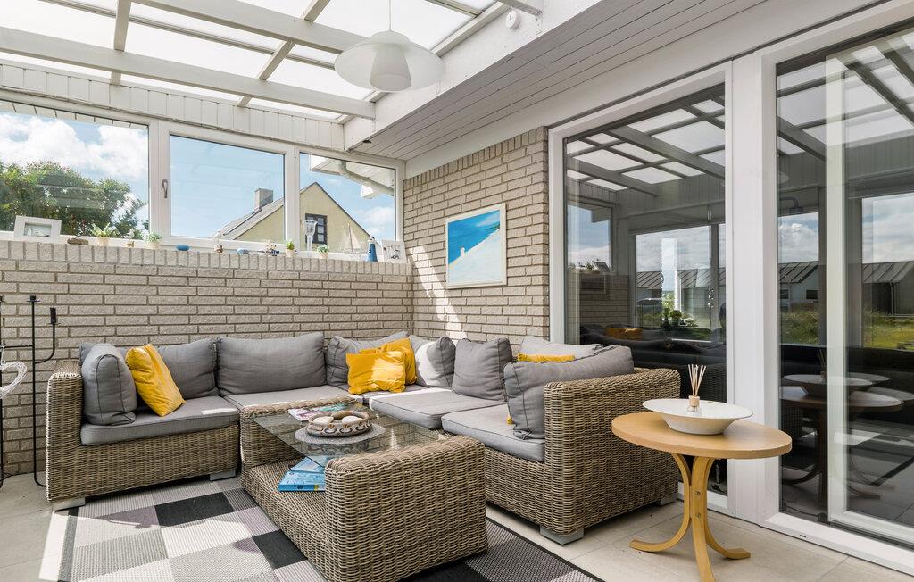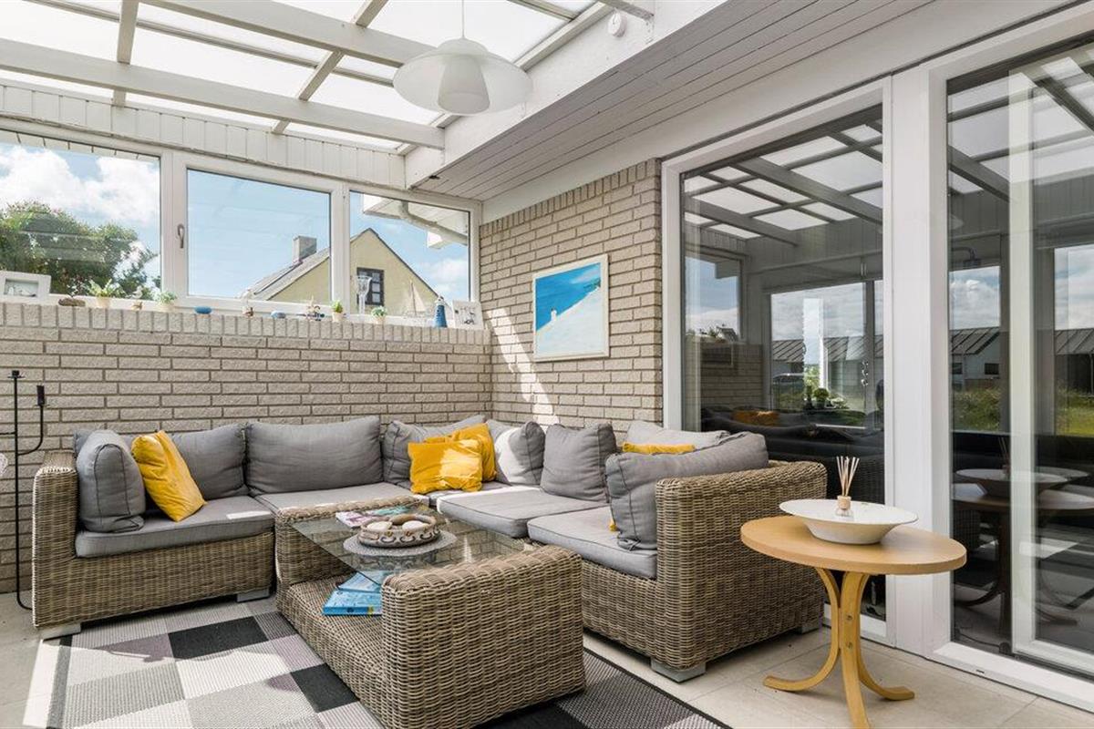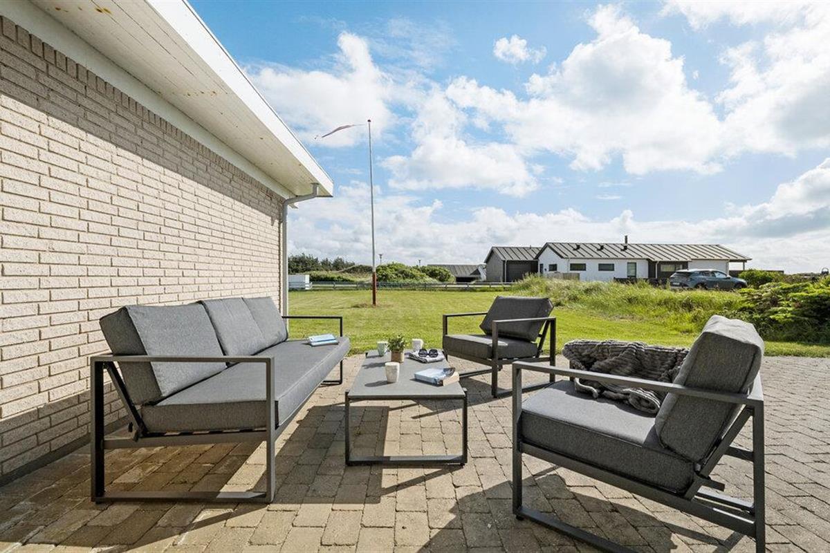Stap de ruime buitenruimte binnen en maak het jezelf gemakkelijk op het stijlvolle loungemeubilair. Geniet van de frisse zeelucht en laat je blik over het landschap dwalen. Je kunt de zee aan de horizon zien. Gebruik het terras voor ontspannen barbecue-avonden en gezellig samenzijn in de buitenlucht.