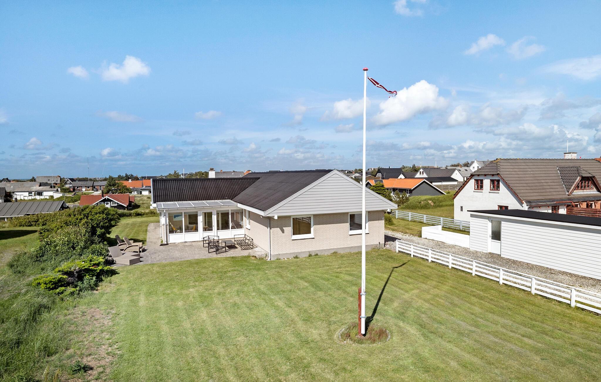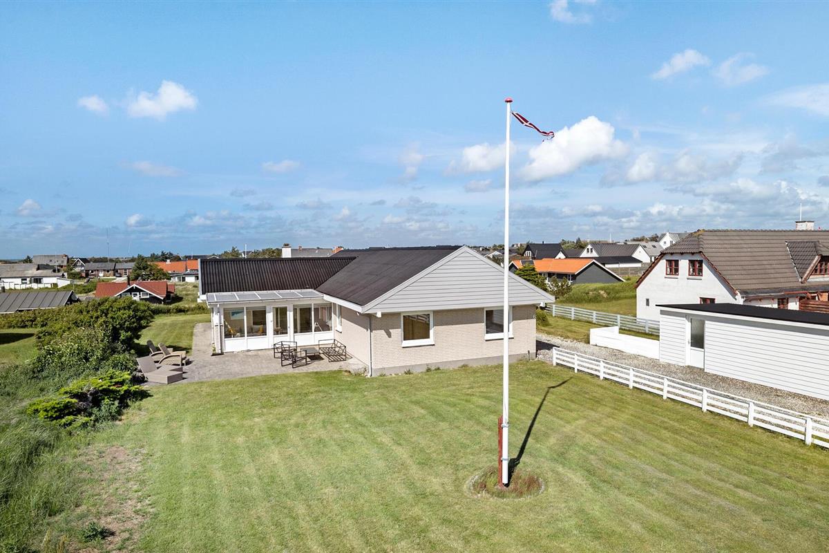 Ruim vakantiehuis aan de Deense westkust met zeezicht, moderne keuken en grote tuin.