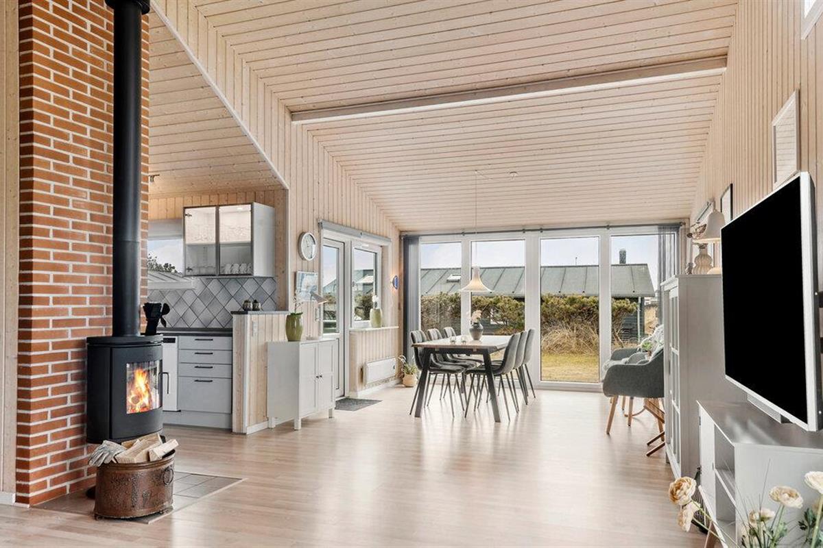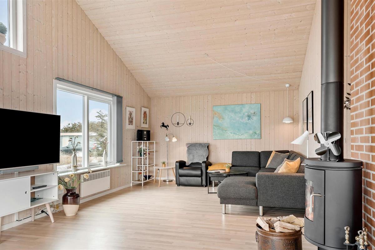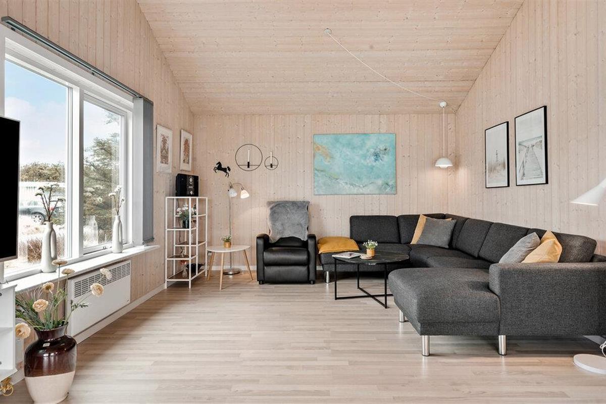 Ontspan in dit lichte, gezinsvriendelijke vakantiehuis vlak bij het zandstrand van Vorupør Strand.