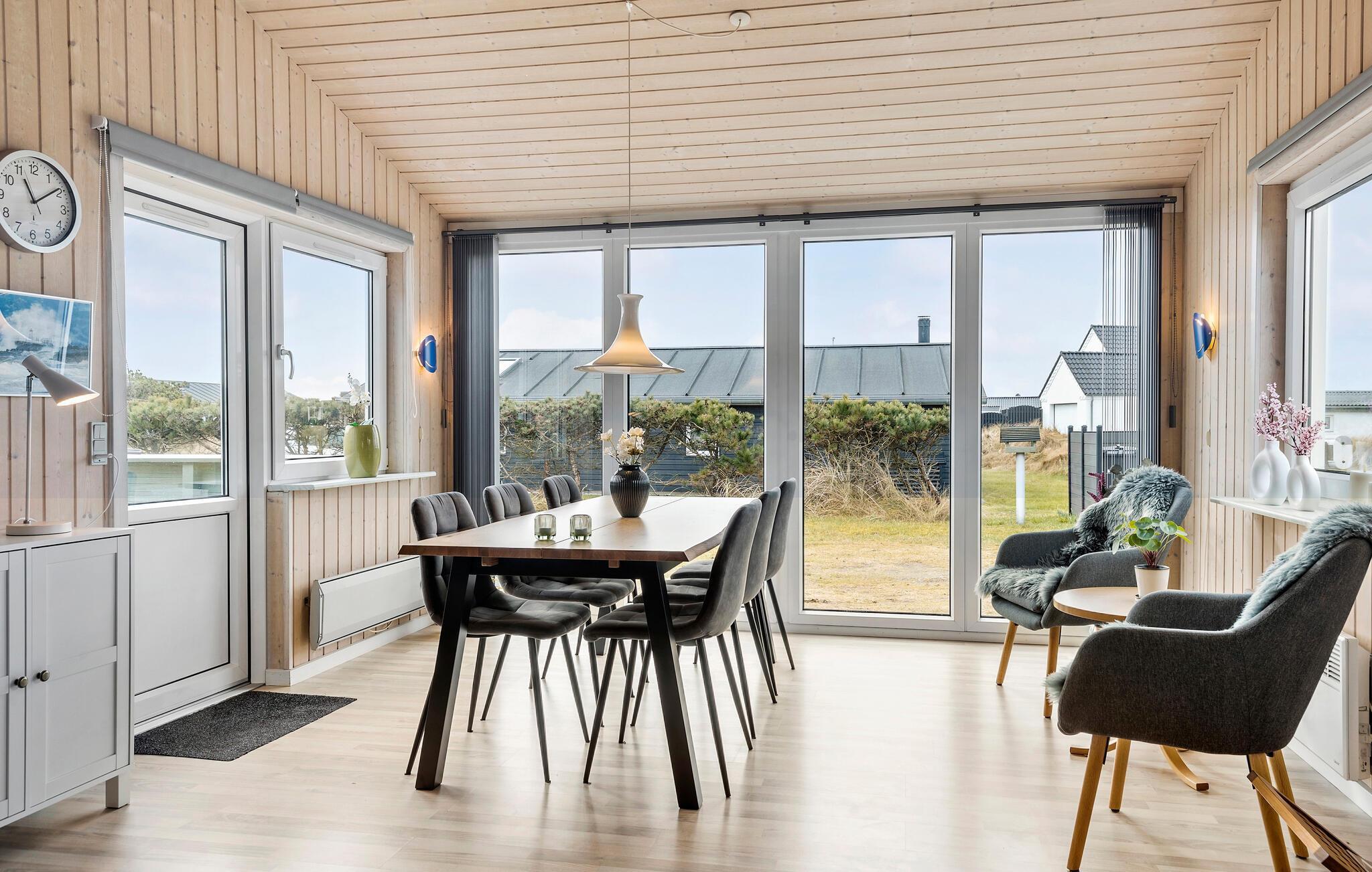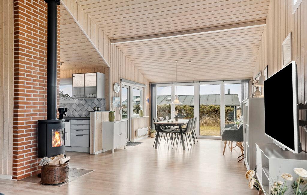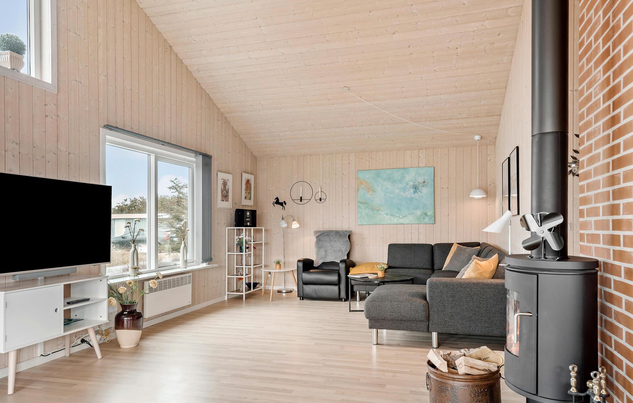 Reis naar Vorupör Strand en ontspan met je geliefden in dit uitnodigende en lichte vakantiehuis. Kom samen om te koken, eten en spelen in de open woonkamer en steek de houtkachel aan voor een gezellige warmte in het hart van het huis. Je zult hier niets missen en je helemaal thuis voelen.